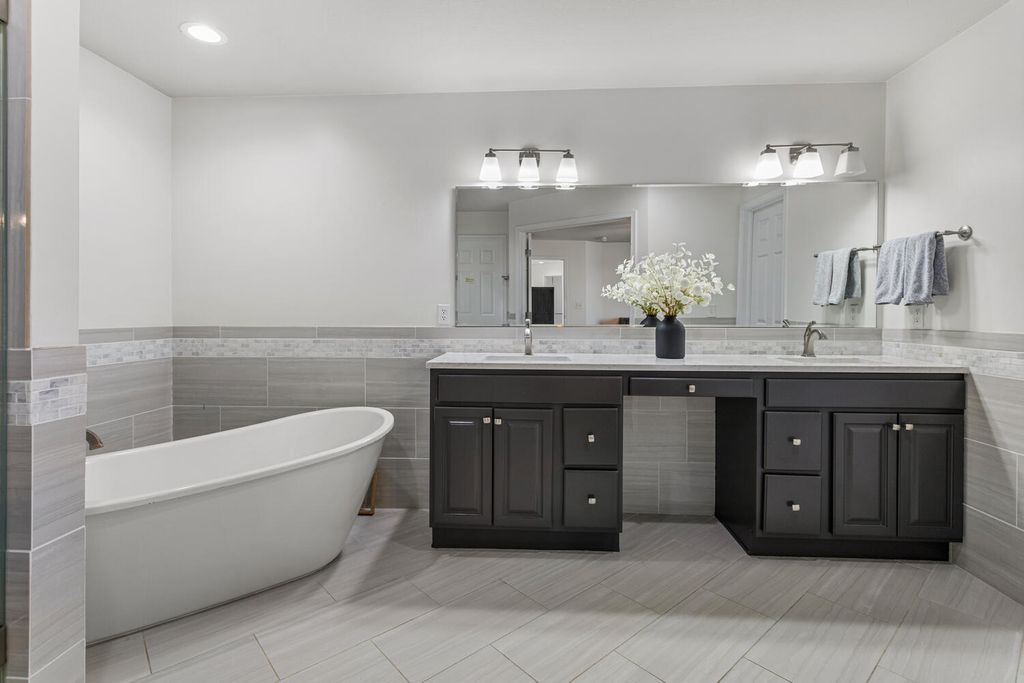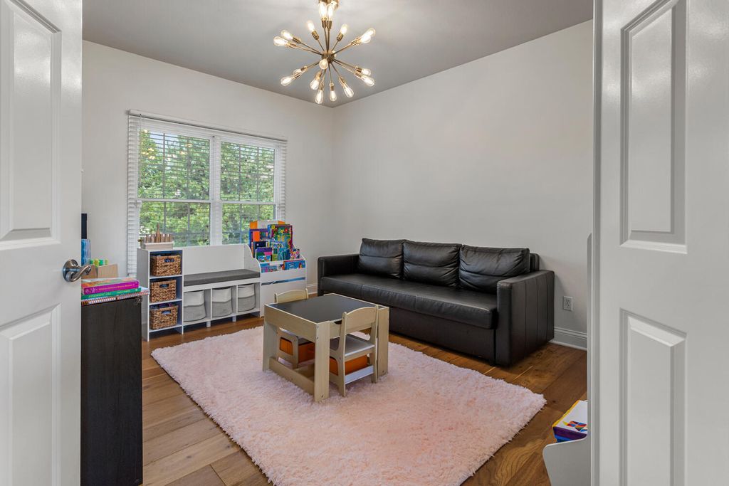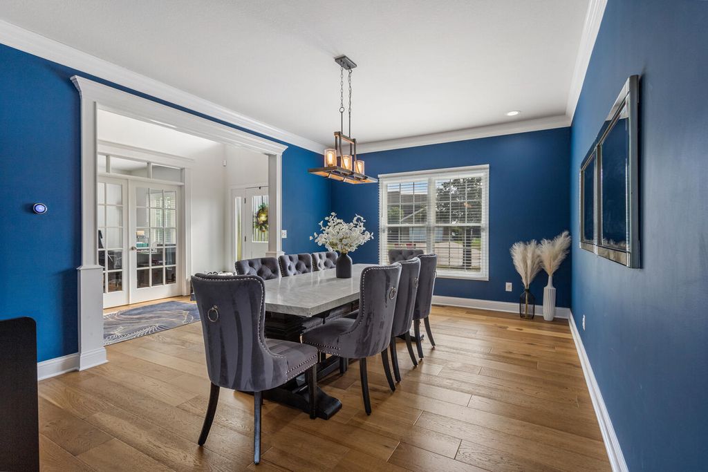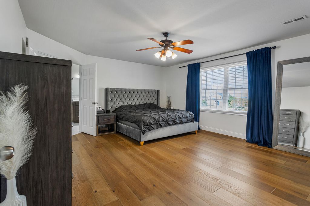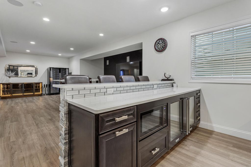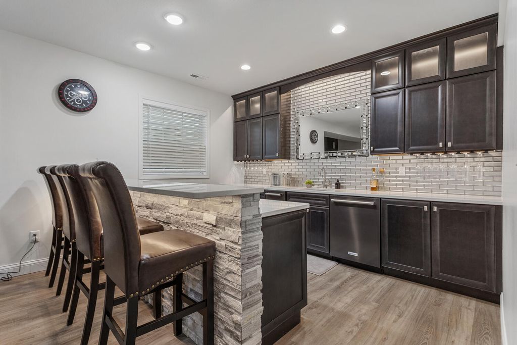 Welcome to The Trails at Chestnut Grove, where this stunning 5-bedroom, 4-bath home is truly move-in ready, blending timeless design with modern upgrades. Step inside the 2-story foyer with a formal dining room and french doors leading to a home office, and another private room with attached full bathroom that could be used as a playroom, a second home office, or a 6th bedroom. The spacious living room showcases vaulted ceilings, tons of natural light and a stone-front gas fireplace with custom built-ins that flows seamlessly into the remodeled kitchen. The kitchen is a chef's dream with updated KitchenAid appliances, a custom range hood, an abundance of counter space, and a large island with a breakfast bar perfect for family gatherings. Upstairs, an open staircase leads you to the luxurious primary suite featuring dual sinks, a soaking tub, a separate shower, and his-and-her closets. Three additional bedrooms and a full bath complete the second floor. The fully finished basement, completed in 2018, offers an incredible amount of additional living space, including a large family room with surround sound and custom built-ins, a fully equipped bar with beverage refrigerator, microwave, dishwasher, sink, and ice maker, plus a fifth bedroom, game or storage room, and a home gym. Set on a beautifully landscaped corner lot, the fully fenced backyard is ideal for entertaining with a stamped concrete patio and built-in firepit. Additional features include an oversized three-car attached garage, hardwood flooring throughout the main and second levels, on-demand hot water installed in 2020, 40-year roof and siding added in 2020, and an updated furnace and A/C in 2021. Truly a beautiful home!