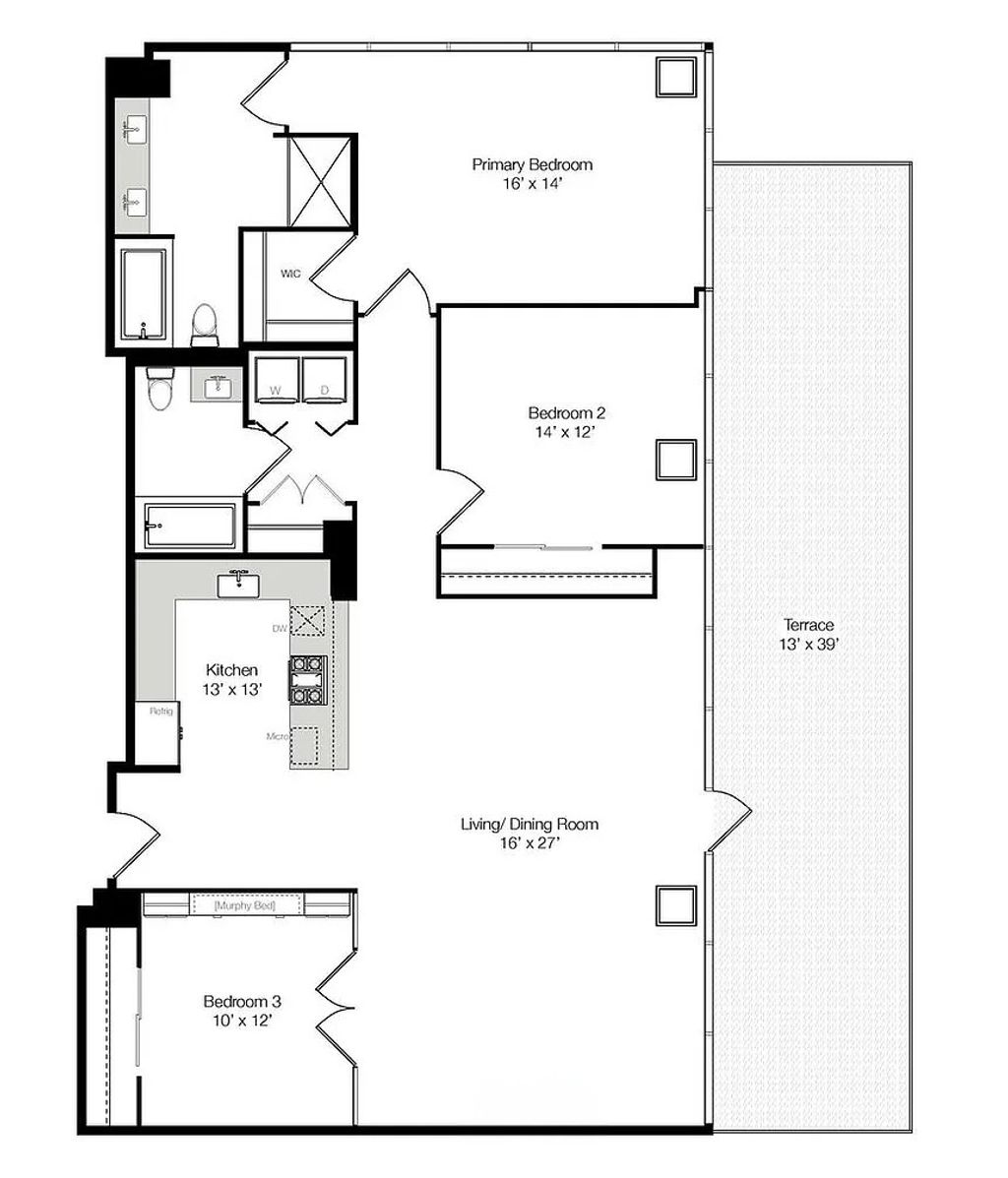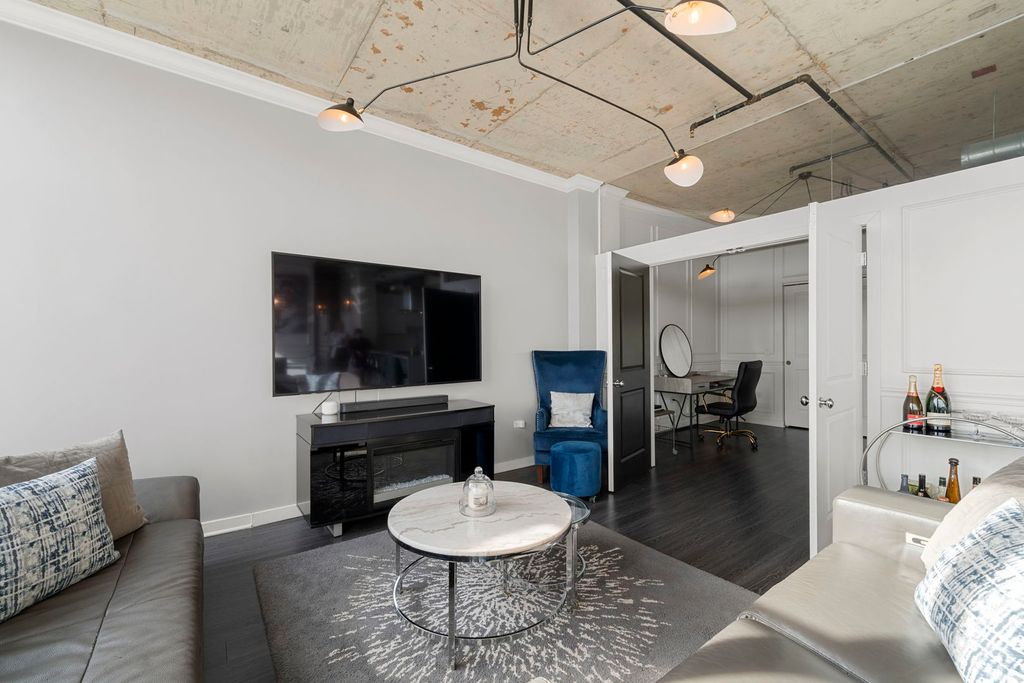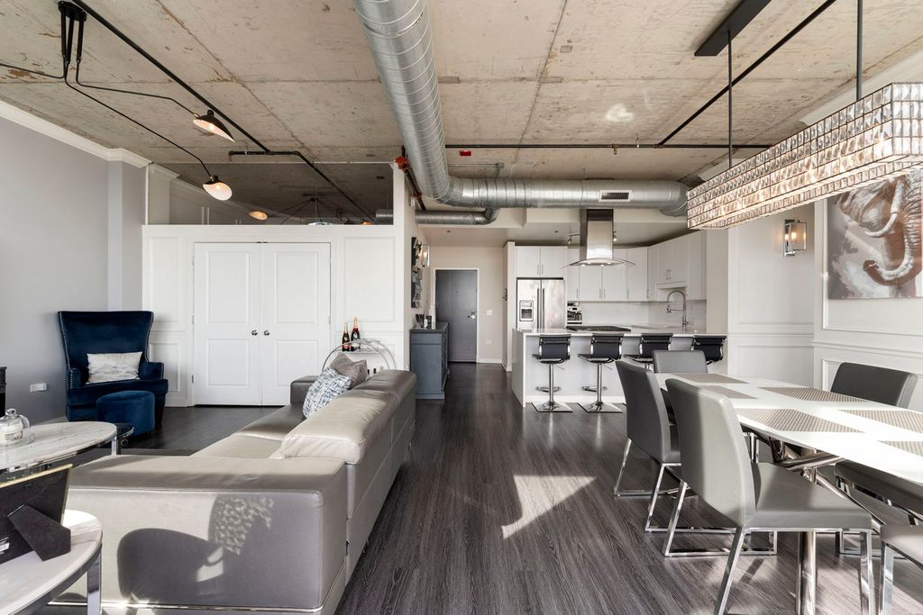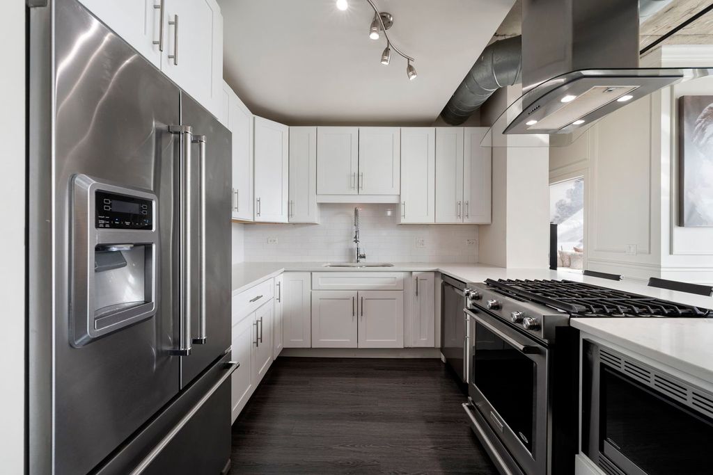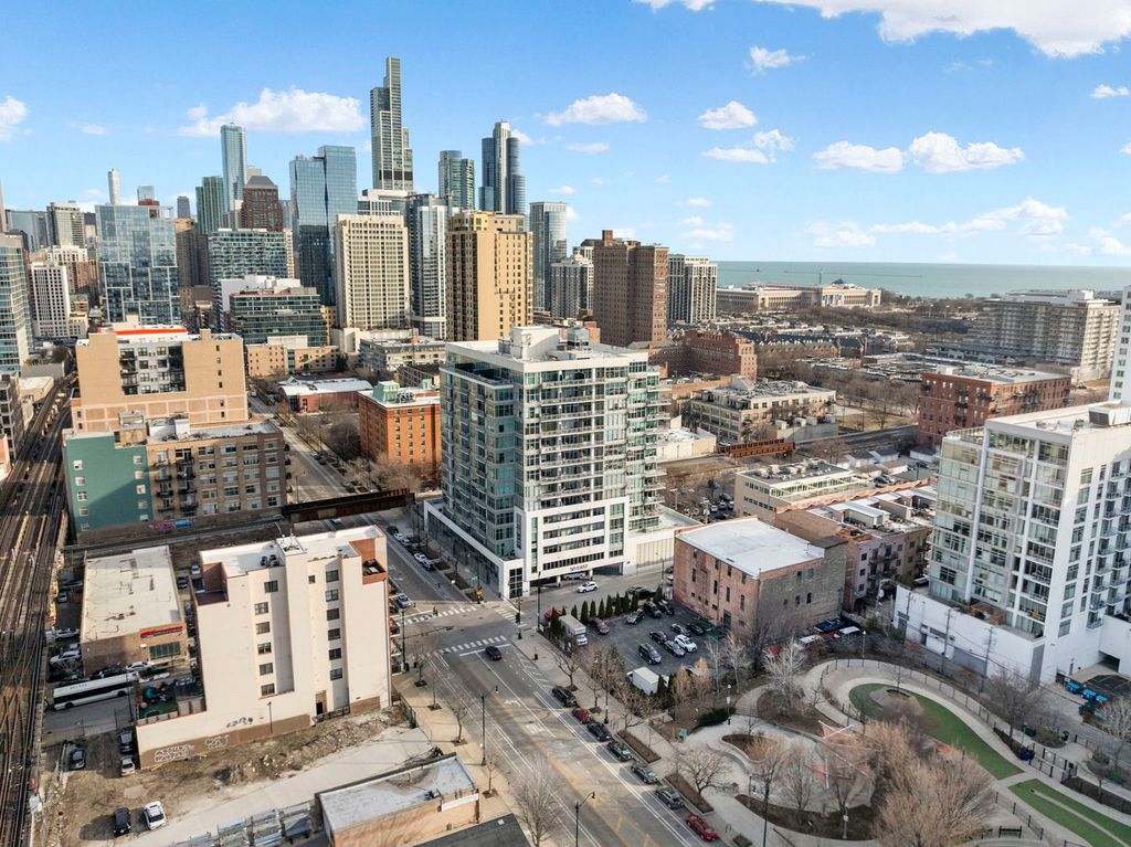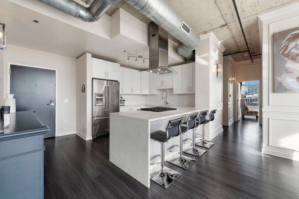 Experience luxury living at its finest in this exquisite 3 bedroom, 2 bath penthouse, offering sweeping panoramic views of the lake and skyline. Perfectly designed for both relaxation and entertaining, this home boasts a sprawling 15 x 45 foot private rooftop terrace -- an ideal outdoor space for gatherings, dining, or simply enjoying the breathtaking views of the city. The open floor plan seamlessly connects the expansive living room, separate dining area, and gourmet kitchen. The kitchen features sleek quartz countertops with waterfall edge, stainless steel appliances, and a range hood, plus a convenient eat-in counter with additional seating making it the heart of the home. Bedroom off the living area offers versatility with a murphy bed, perfect for guests, or an office space. The spacious primary bedroom features a generously sized en-suite bathroom with double vanity, separate tub and shower, and abundant storage. A third bedroom is located off the main hallway in addition to the secondary full bathroom. For added convenience, a full size stackable washer/dryer is included in the unit, along with a separate storage unit. This full-amenity building offers everything you need, including an exercise room, door staff, and elevator service. The location couldn't be more ideal-close to dog parks, shopping, restaurants, Grant Park, Museum Park, museums, the lake, and public transit. A 2-car tandem parking space is available for an additional $45K.