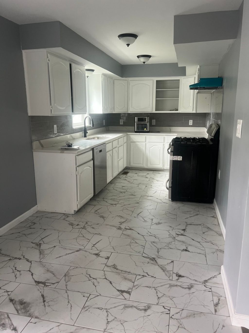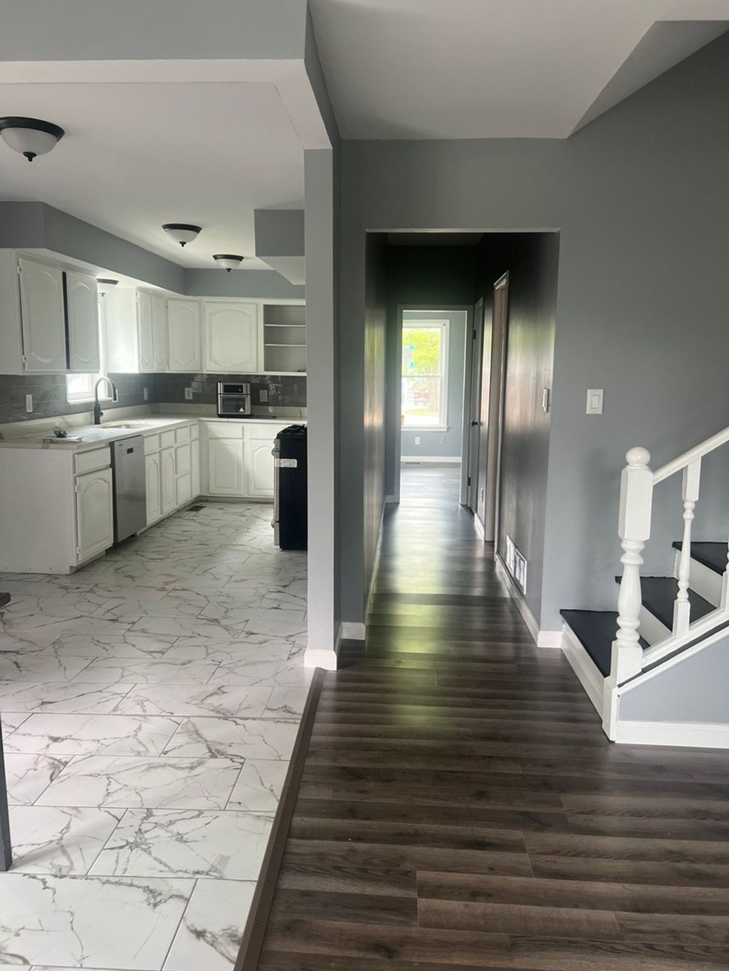 Freshly Painted, New Laminate floors on second floors and living room. Three Bedrooms, Living Room, Family Room with working Fire Place. Kitchen with New Marble counter tops, New ceramic floors on kitchen, dining and family rooms on 2025, New French door installed to deck on side yard for your summer reunions with the family. Large back yard. Laundry room on first floor. New Roof 2025, New siding 2025, New AC Installed on 2025 , New Water Heather 2025, New Furnace 2025. Drive way for four cars. FHA loan? No problem! Show and Sale!!