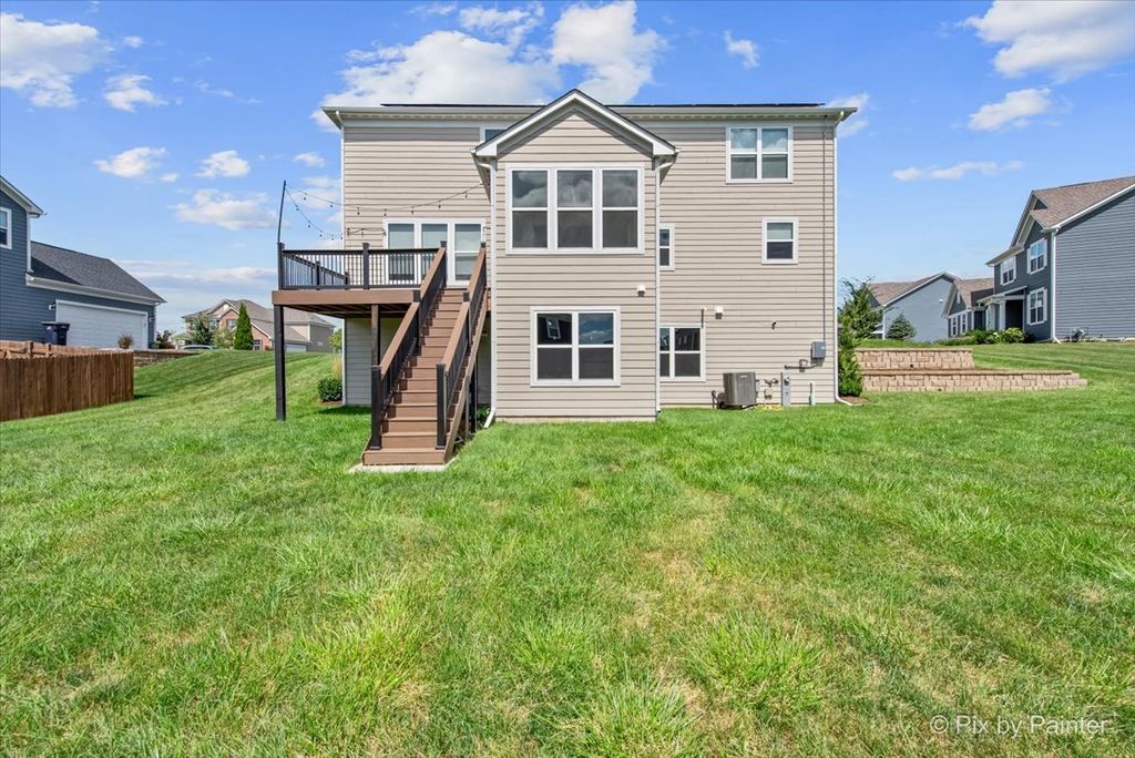 Beautifully upgraded 4BR, 2.5BA home in Highland Woods' Chasewood neighborhood with over 3,300 sq. ft. plus a an open, finished walk-out basement (bath rough-in). North-facing lot with a sunny south-facing backyard & TimberTech deck. The first floor offers a versatile flex room, perfect for a home office or den, along with a bright sunroom-an upgraded option the homeowners added to enhance natural light and living space. Features include engineered hardwood floors, quartz countertops & backsplash, and a 3-car tandem garage. Luxury upgrades: Hunter Douglas automated window treatments, Tesla wall charger, Nest smart home system, premium whole-house humidifier, upgraded 5" baseboards. Energy-efficient living with FULLY PAID solar panels. What makes Highland Woods so desirable? Living in this community isn't just about having a place to live-it's an exceptional experience. Residents enjoy a clubhouse, fitness center, pool, splash pad, parks, scenic trails, and even an elementary school right within the neighborhood, all served by highly regarded School District 301.
