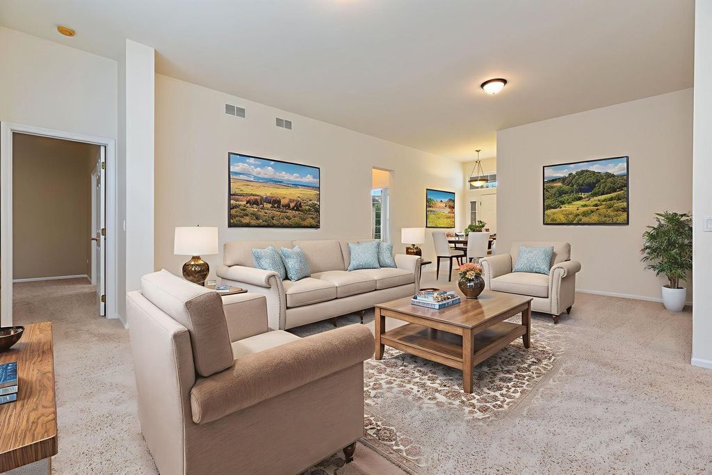 Rarely available in the sought after subdivision, The Sanctuary. This stunning ranch offers 3 spacious bedrooms and 3 full bathrooms, thoughtfully designed with comfort and style in mind. The main level boasts soaring 10-foot ceilings that create an open, airy feel throughout the living spaces. The modern kitchen flows seamlessly into the dining and family rooms, making it ideal for gatherings. The full finished basement expands your living area, providing endless possibilities for a home theater, game room, or additional lounge space. Step outside to a large back patio, perfect for entertaining, summer barbecues, or simply relaxing outdoors. Additional highlights include a convenient 2-car garage, ample storage, and a layout designed for both everyday living and special occasions. This home combines elegance, function, and plenty of room to enjoy.