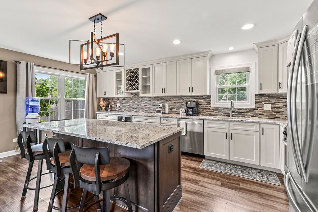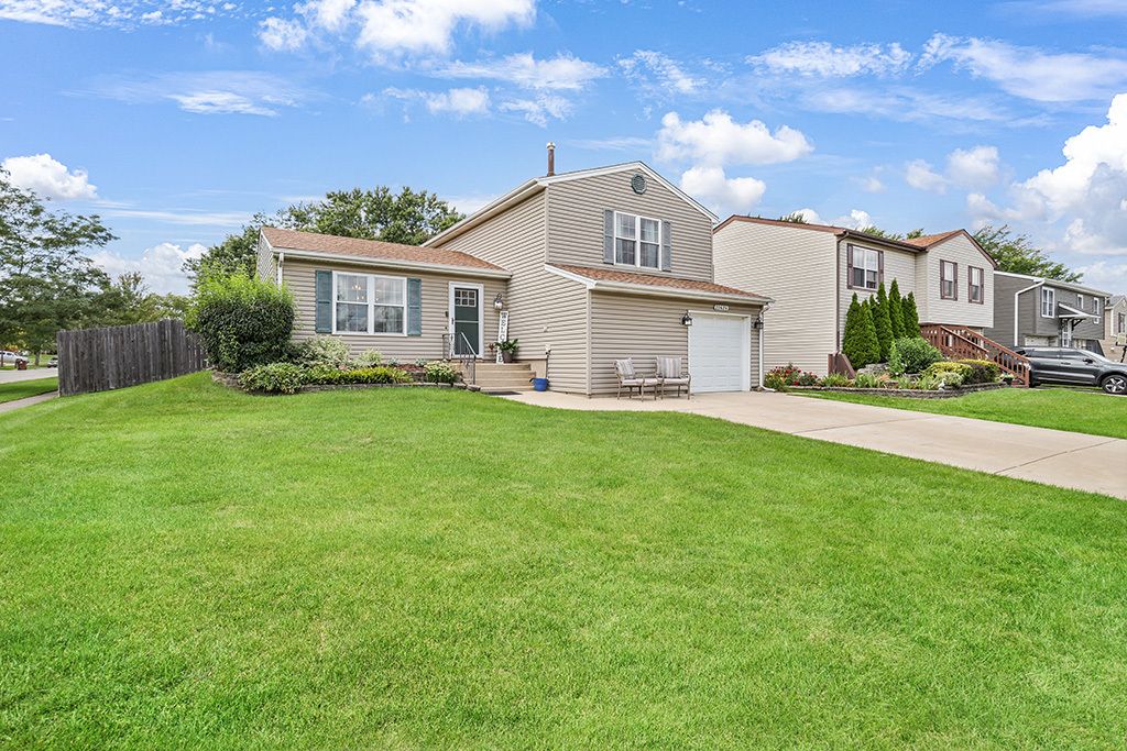 Check out this charming 3 bedroom, 1.5 bath, tri-level home in Frankfort Square nested on a large corner lot. This home has been beautifully updated over the years. Talk about the perfect blend of modern elegance and comfort! When you walk through the front door you will be greeted with a totally remodeled kitchen (2021). The kitchen features ample storage, large center island, soft close cabinets, newer stainless-steel appliances, beverage fridge, crown modeling and the list goes on! As you venture upstairs you will find 3 bedrooms. The primary bedroom features a walk-in closet. Upstairs also has a full bathroom that has been completely updated (2024) which features LVP flooring, stand up shower, and all new fixtures. On the lower level, there is a family room, laundry room and access to the garage. The laundry room is spacious and features newer washer and dryer, hot water heater (2022) and the furnace (2023). Off the laundry room there is access to the 1.5 car garage. Within the garage you will find Husky built in storage cabinets and plenty of extra storage space. There is a large family room with plenty of natural light and a newer (2 years old) patio slider door. This brings you to the amazing full fenced backyard that features an 24ft above ground pool, shed, and a pergola. It's your own backyard oasis! The roof, siding, soffits, and windows have all been replaced in the last year years as well. This home's location offers easy access to local amenities, schools, and parks. Don't miss your opportunity to make this move-in-ready hidden gem your forever home!