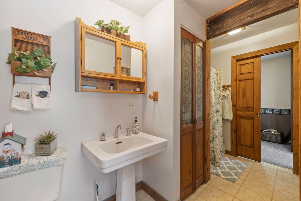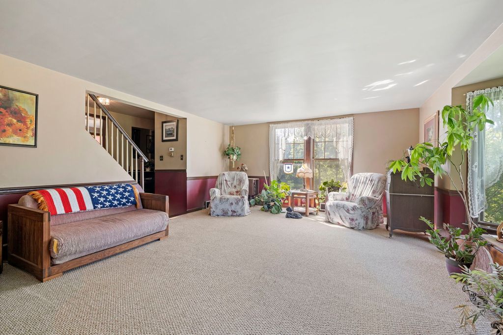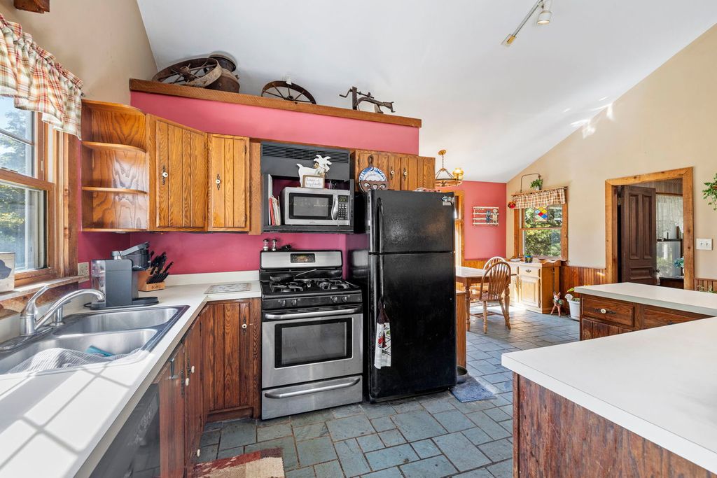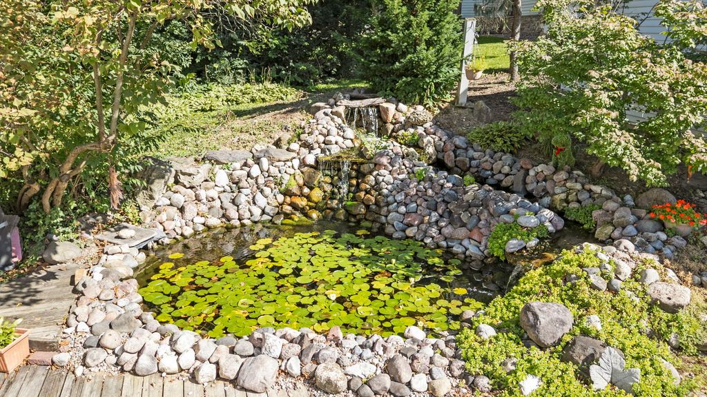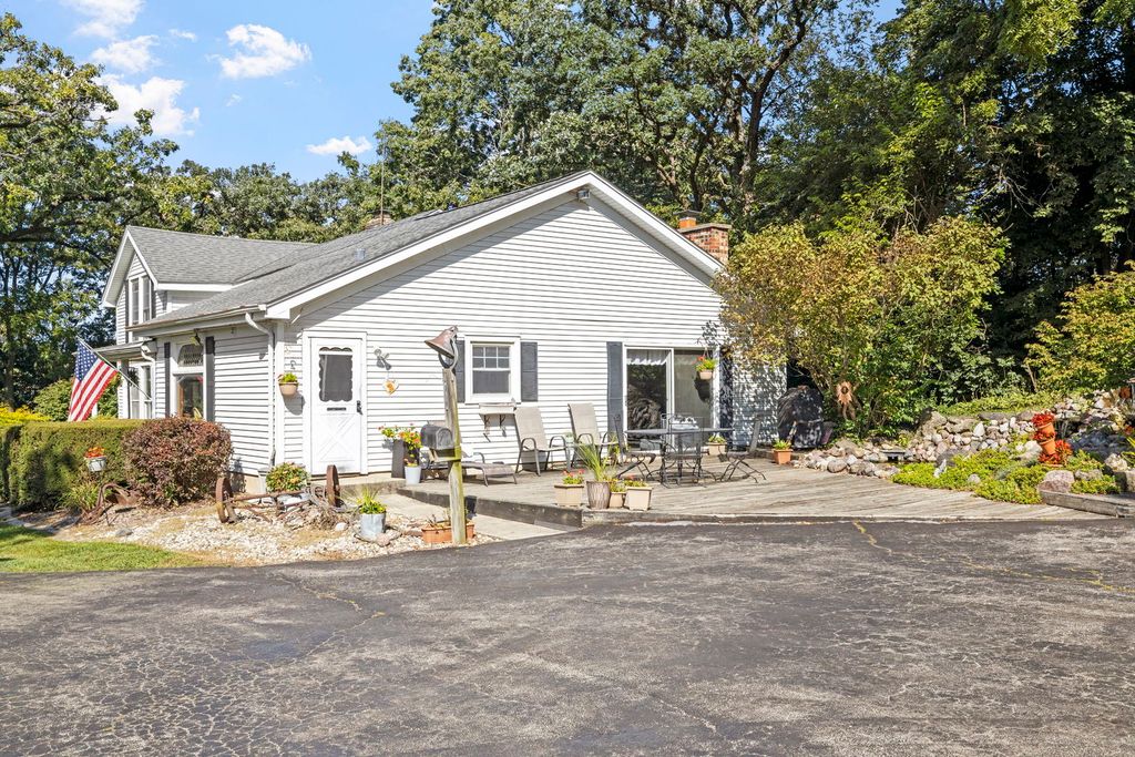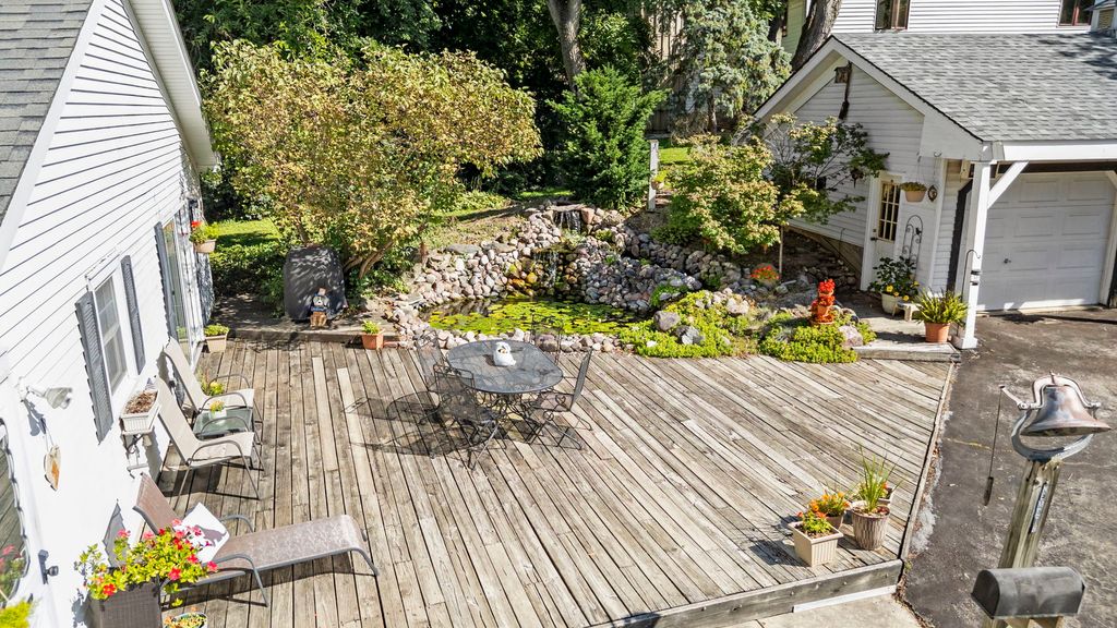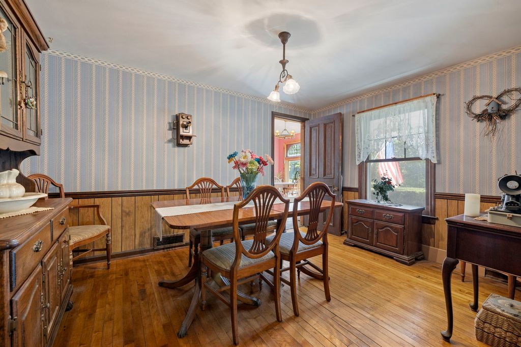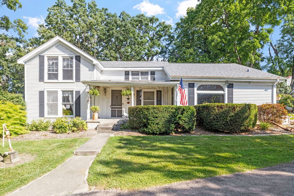 Almost 2 Acres with an outstanding Pond View. This unique Farmhouse, built in 1890, features a Great room addition added 37 years ago. The charming covered Porch at the front entrance offers an amazing view of the pond. The Vaulted Great room includes two Skylights, a Brick fireplace with a wood mantel and remote electric for modern convenience, track lighting, and patio doors leading to a huge Deck and Koi Pond. The Open country kitchen provides ample storage, a breakfast bar, and eat-in table space, along with a Formal Dining room featuring hardwood floors. The spacious living room includes a brick wood-burning fireplace with a mahogany mantel, which has not been used by the current owner. Also enjoy big bay window. The first floor also includes a full bath with a step-in shower and an office that could serve as a third bedroom. Exit to dog run. Upstairs, the Vaulted primary bedroom includes a sitting room with hardwood floors, a second bedroom, and a full hall bath. The three-car garage features a workshop area and full attic space for storage. This charming home is looking for the right buyer to enjoy this wonderful serene location!
