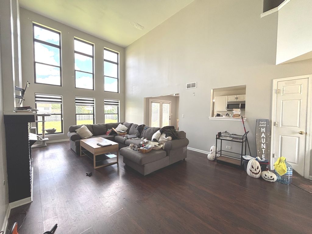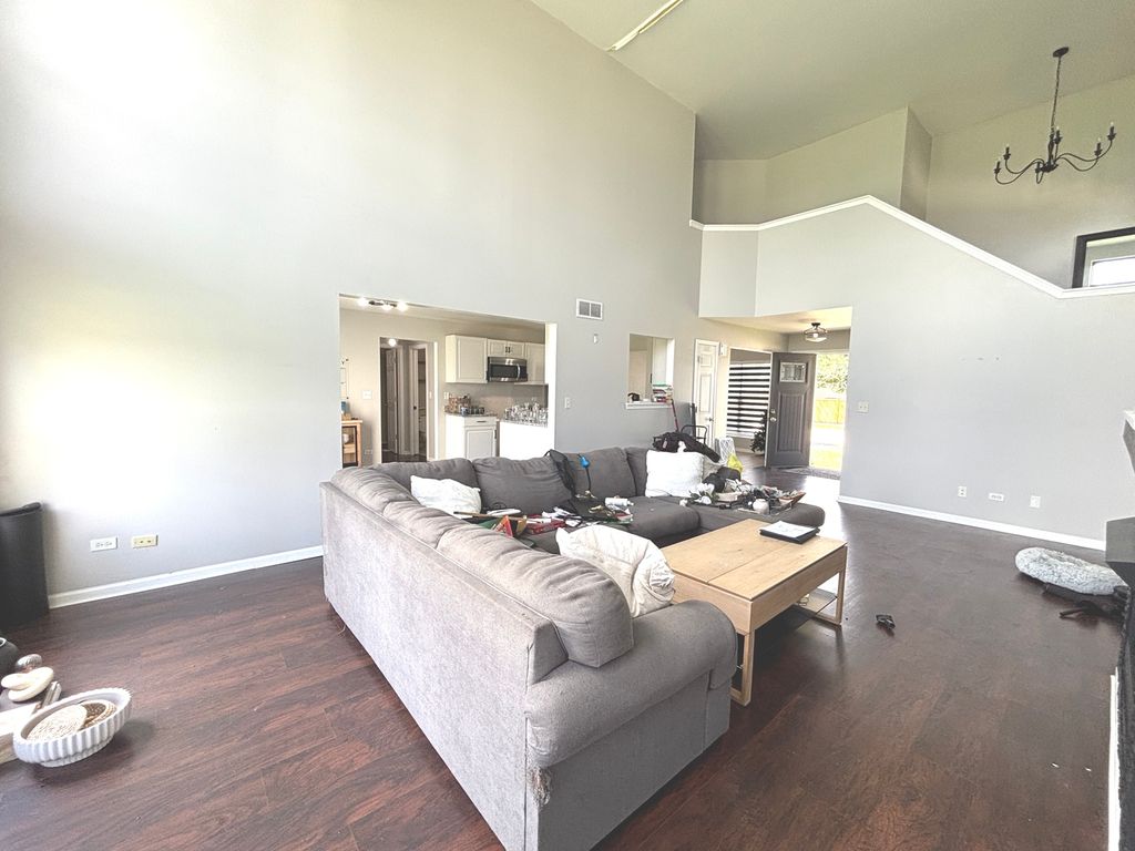 Step into this spacious Plainfield home featuring soaring 17-foot ceilings, granite countertops, high-end cabinetry, and an incredible master suite. Spacious home featuring a large living room with laminate hardwood flooring and a decorative fireplace. The modern kitchen offers custom cabinetry, granite countertops, and comes equipped with a stainless steel refrigerator and dishwasher. A second refrigerator in the garage, along with a washer and dryer, are also included. Enjoy both a formal dining room and a bright dinette/breakfast area. The unfinished basement provides excellent potential for additional living space. A convenient half bath is located on the main floor. Upstairs, the master suite boasts a huge bedroom and a luxury bathroom, complemented by a second full bath with all-new fixtures and two additional generously sized bedrooms. With plenty of potential to make it your own. It offers a fantastic opportunity for buyers willing to add their personal touch. With a tandem garage, luxury bathrooms, and generous outdoor space, this property is ready for a new owner. Don't miss your chance to create the home of your dreams in a sought-after location.