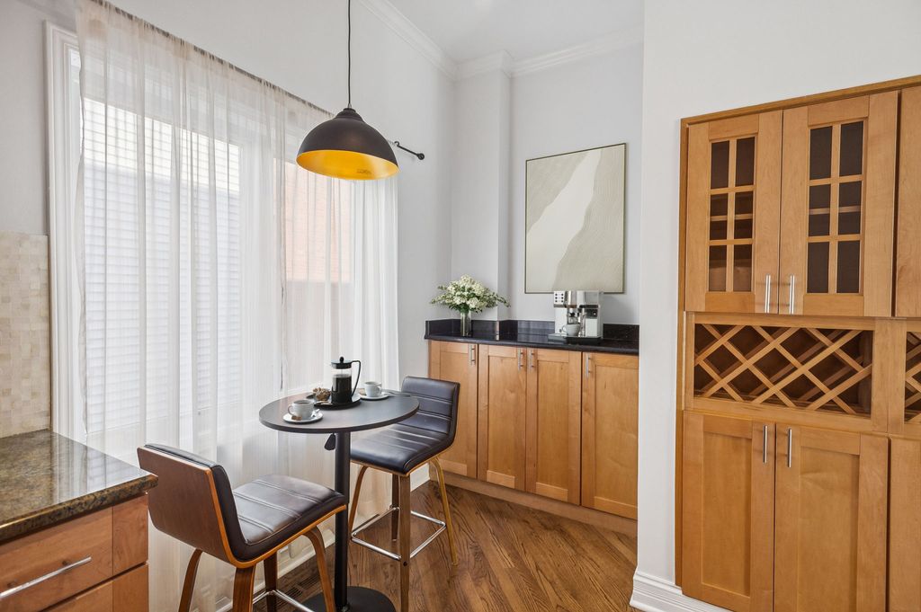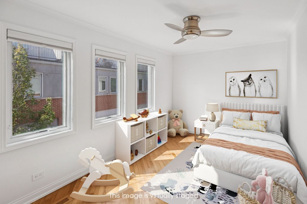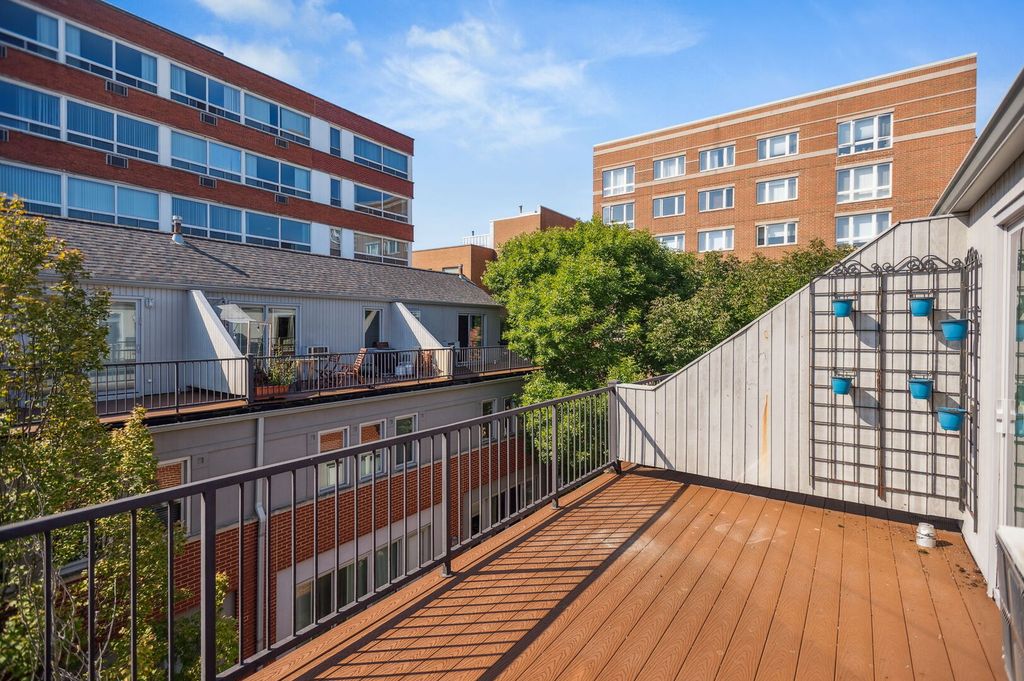 Welcome home to an updated townhome in a great SE Evanston location with the Metra, EL, NU Shuttle, shops, and restaurants within two blocks, and the lakefront and numerous parks all within a leisurely five-block walk. Convenience abounds with an attached one car garage providing direct entry to ground level living encompassing a versatile space for an office, family room, or exercise room, stylish powder room, a laundry closet with stackable washer/dryer and all mechanicals. Head up to the bright second level with south facing floor to ceiling sliders to a Juliet balcony. Here you can enjoy the spacious great room highlighted by hardwood floors, gas fireplace with lovely decorative wood mantle and recessed lighting. Imagine your dining table in front of the fireplace. The adjacent kitchen has abundant wood cabinetry and granite countertops, stainless steel appliances and a breakfast dining area surrounded by additional cabinetry serving as pantry space and storage. Head upstairs to the next level for the primary bedroom suite with its vaulted ceilings, ceiling fan, remodeled bathroom with combination soaking tub and shower, and a wall of closets. The second bedroom with an armoire and ceiling fan spans the front of the unit and has lovely south exposure plus plenty of room for a separate sitting area or play area depending on needs. Black out shades provide privacy. The adjacent, updated hall bathroom features a walk-in shower. The top level is another versatile space, either as an office or as the third bedroom. With a skylight, an opaque window and recessed lighting this bright space also provides access to the "Trex" deck space, great for grilling, outdoor relaxing and container gardening opportunities. Pets are welcome. A new rental amendment requires one year owner occupancy before renting. Make this Hinman Lane Townhome your next home.