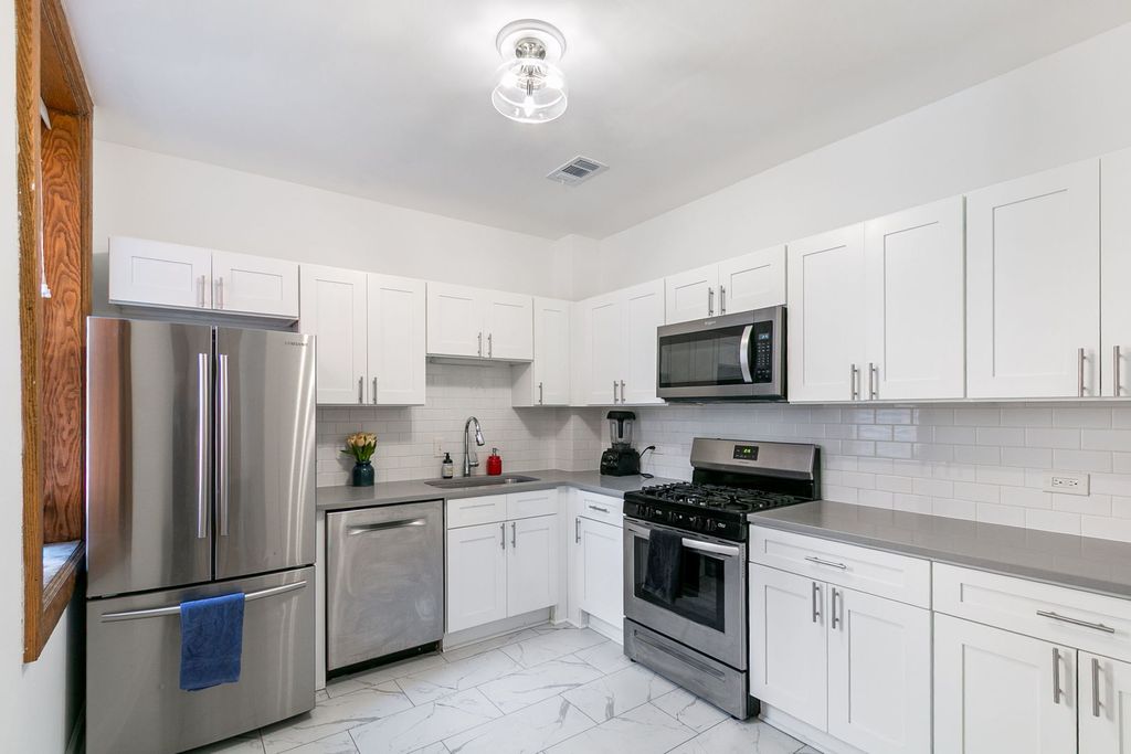 Beautiful 2Bd/1Ba condo blending vintage charm with modern updates at the historic Commodore in desirable East Lakeview. Kitchen was completely renovated in 2021 with new cabinets, quartz countertops, and stainless steel appliances, with new porcelain tile flooring installed in July 2025. Other recent remodel details include brand new triexta carpeting and mirrored sliding doors in both bedrooms, new louvered doors in entry and laundry closets, fresh paint throughout, updated storage areas, and new lighting and fixtures. Bathroom was extensively renovated in 2021 with porcelain tile flooring, mirrored vanity with backsplash, and sharp chrome fixtures. Primary bedroom showcases original vintage oak pocket doors, while living room and entry area feature oak hardwood flooring. Additional conveniences include in-unit washer/dryer, dedicated central heating and air conditioning, and a separate private storage unit. Professionally managed building is up to Chicago building safety standards and includes monitored in-unit sprinklers and smoke and fire detectors, as well as a bike room, secure mail and package room, on-site maintenance, and daily cleaning of common areas. Cable and internet are included in monthly assessments. Known for its classic charm and unbeatable location, the Commodore is a meticulously maintained vintage building located within a short walk from groceries, restaurants, nightlife, shopping, fitness, public transportation, and the lakefront. Parking is available at garage across the street on Broadway or with street permit.
