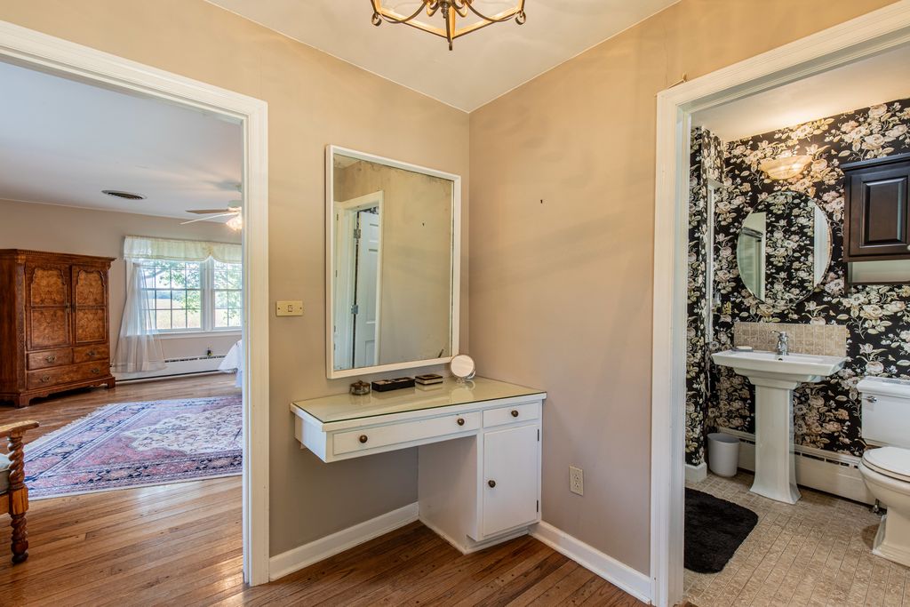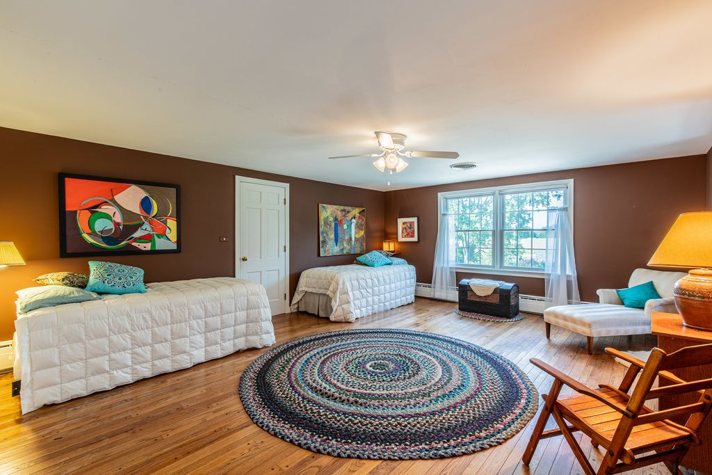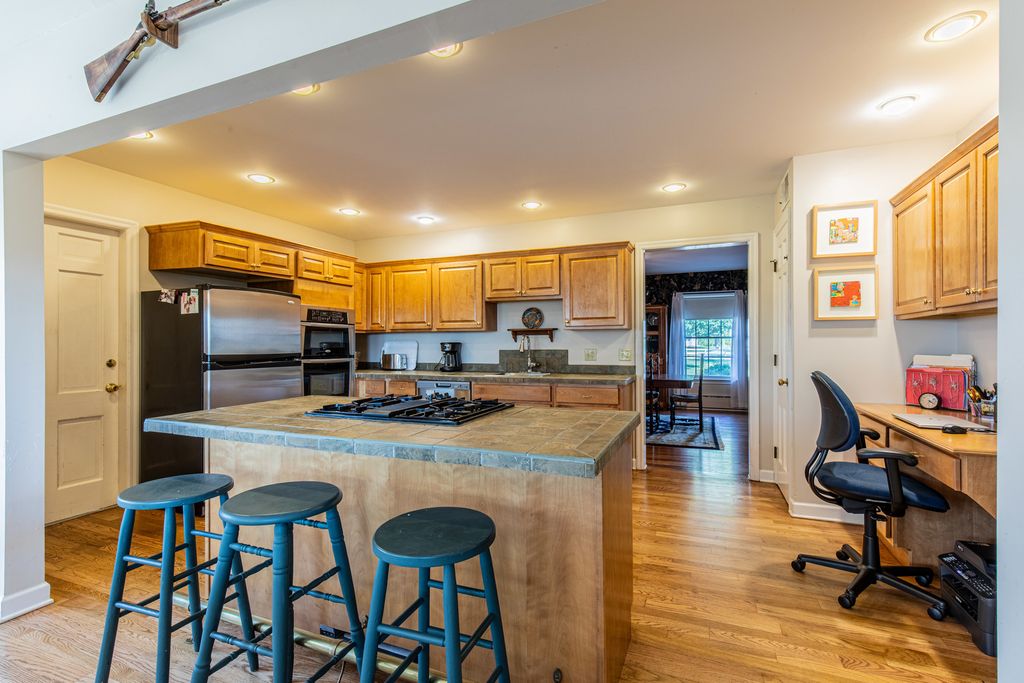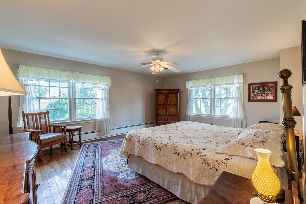 Owned by the same family since it was built in 1951, this charming 4 bedroom, 3 bath colonial feels like a peaceful country inn. Located on 2 acres just on the edge of town, it blends the best of country life with town life. So many beautiful features are evident in this property. From the foyer, enter through French doors into the living room. A beamed ceiling, mahogany paneled wall and wood burning fireplace give character to this 15x24 room. Next is the cozy library with another fireplace, built in book shelving and pegged hardwood flooring. The 15x18 formal dining room has ample space to host family and guests. The island kitchen was updated with maple soft close cabinetry, a double oven, tiled counter tops, pantry and SS appliances. Enjoy the view from the kitchen table overlooking the yard and fields to the west. The main bedroom has a full bath with a step in shower. There is an adjoining dressing room that could be converted to a walk in closet or 2nd floor laundry area. The other bedrooms are all spacious, especially the one over the garage. If a 4th bedroom is not needed, this would be a great space for a workout room, T.V. room, craft room, home school, etc. The basement has tons of storage and a useable rec room. Outside, a paver sidewalk, stamped concrete patio and storage shed complete the package. Just hook up the grill to the gas connection and cook all summer! Pear, apple, peach and cherry trees provide delicious summer fruit. Windows were replaced in 2020. New boiler in 2023. Basement was professionally waterproofed in September 2025 and has a transferrable warranty. This is an amazing property in a great location!