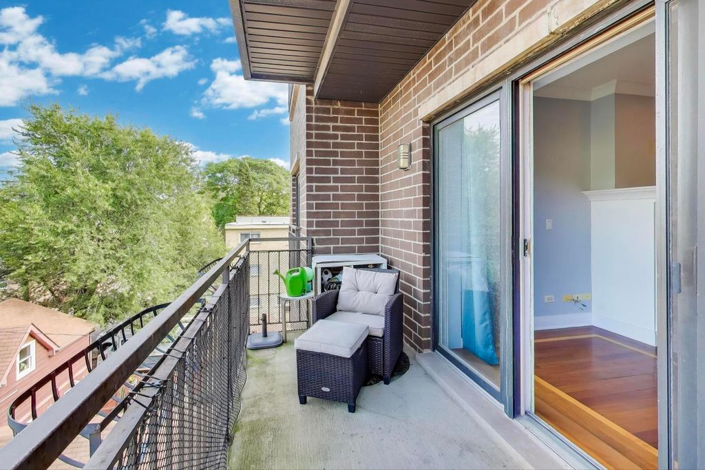 This beautifully maintained split 3-bedroom, 2-bath condo offers an open, airy layout in a convenient West Ridge/Rogers Park location. Cherry floors, recessed lighting, and incredible natural light flow throughout the home. The updated kitchen features wood cabinetry, granite countertops, stainless steel appliances, pantry, breakfast bar with seating for four, and pendant lighting - all open to the large living and dining area. A gas fireplace with mantel creates the perfect spot to gather or unwind. The spacious primary suite includes a Juliette balcony, a large walk-through closet, and a huge bathroom with multi-spray steam shower and rain head, soaking tub, double sinks, and a linen cabinet. Two additional bedrooms are located on the opposite side of the living room, offering great privacy. The second bedroom features a second Juliette balcony. The hallway bath has a tub, marble tile surround, additional linen storage, and a window for ventilation and fresh air. Enjoy a private north-facing deck off the living area, perfect for relaxing, entertaining, and grilling. Additional highlights include in-unit laundry, an outdoor secured parking space, first-floor storage, and recent updates including a new water heater (2025), oven (2025), dishwasher (2024), and garbage disposal (2024).