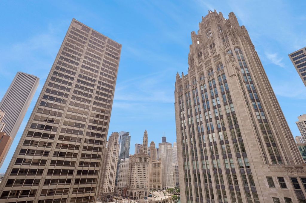 This incomparable property rests high above Chicago's Magnificent Mile at one of Chicago's most exclusive addresses: The Tribune Tower. Timeless elegance is seamlessly blended with the state-of-the-art. This is a treasure. This wonderful unit has a commanding south city view: the Chicago River, Michigan Avenue Bridge, and many world-famous architectural landmarks. The front door opens to an elegant foyer crowned with a shimmering chandelier that accents subtle hessian wallpaper. This smart technology condominium gives efficiency and convenience. The heated White Oak Character Grade floor offers a splendid foundation that passes from room to room, framed by a precise molding. An immediate right turn leased into the breathtaking Living Room framed with a crown molding. An Astria Atlas Vent Free Gas fireplace with silver beige polished marble hearth and surround with custom trim charms the room. The Lutrin blind system gives added exclusivity. A first-class kitchen appeals to the most discerning tastes: Sub Zero Designer Column Freezer with internal ice maker, Wolf gas range with four burners and infrared griddle, Best built-in range hood with integrated lighting and exhaust in custom stainless enclosure, Meile dishwasher. Frank garbage disposal. Kitchen counters and backsplash are Perla Venata quartzite with eased edged. Galley workstation has single bowl double tier under mount sink with single pulldown faucet. Premium grade hardwood drawers and wood shelves offer excellent storage. Drawer fronts and panels are premium white maple with Medex center panels. The extra spacious Living Room sports ten foot ceilings. The elegant Dining Room delights with its beautiful chandelier. This grand room leads to the balcony with its epic views. Complete with aluminum terrace door by Graham Architectural Products, Sterling Dulan Glass Rail, porcelain paver tiles - this balcony has it all. Three full baths and one powder room are will appointed with Kohler and Waterworks fixtures. The powder room has vintage Herringbone pattern white oak flooring. Master bath counter has silver beige polished marble countertop with Carrara Venizia marble tile, shower floor and inlay. Secondary bath has Atlas Concorde Marvel Gray Fleury tile floor and inlay. Secondary bath walls are Stone Source Resort Bianco Matter tile. The Family Room has the custom designed parallel walls, bar with mirrored, illuminated backing and onyx topped cabinets, wine fridge, floor-to-ceiling windows. Walk in closets have custom shelving and recessed lighting. Laundry room has matte finish thermally fused laminate flat slabs, flush mounted designer features, LG washer and dryer. 55,000 feet of amenities defines a new level of luxury. Conference room, tv viewing room, piano, bar, and more. Magnificent fitness center has 75-foot pool, sauna, steam room. Golf practice tee and simulator on second floor. Garage level has dog walk. Outdoor terrace and sun deck flanked by buttresses that transcend anything in the city. Twenty-four-hour door staff and concierge service. Easy access to great shopping and world class cultural centers. Two prime deeded parking spaces included in the price. A must see