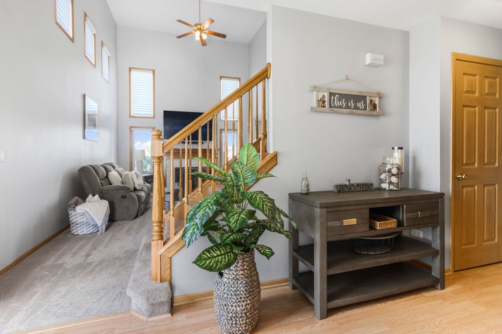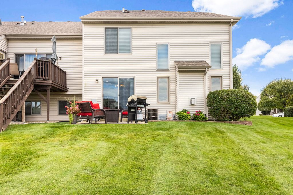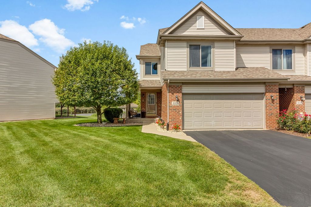 This stunning end-unit townhome is perfectly situated on a private cul-de-sac and offers breathtaking views of the pond, gazebo, and bike trail right out your back door. Step inside to a two-story family room with soaring 16-foot ceilings, motorized custom blinds, and a cozy fireplace - the perfect place to relax or entertain. The bright, modern kitchen features white cabinetry, custom countertops, a breakfast bar, and **all new stainless-steel appliances (2023) **. Upstairs, you'll find two spacious bedrooms plus a versatile loft - ideal for a home office, reading nook, or easily converted into a third bedroom. The grand master suite boasts a beautifully remodeled private bath and a large walk-in closet. The full basement offers endless possibilities for finishing and adding extra living space plus storage. A two-car garage completes this home, offering both convenience and storage. Don't miss this rare opportunity for a move-in ready townhome with premium views and upgrades! Roof new in 2019.