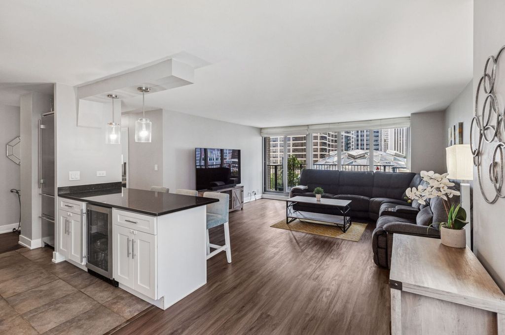 Step into this gorgeous corner unit located in Chicago's famous 400 E Randolph St. Unit 930. This 2 bed, 2 bath spacious condo offers sweeping views of the city's beautiful skyline. Entire condo has been freshly painted and newly installed Lifeproof Vinyl Plank (sustainable) flooring throughout. Kitchen has been remodeled with opening the space to the family room while adding a large, eat-in breakfast bar with built-in wine fridge. Other features include Corian countertops, brand new Bosch dishwasher, matching stove and microwave, custom fitted Subzero fridge/freezer and updated white cabinets that open up to the expansive dining. Currently the space is being used as an office area. The spacious primary suite is certain to wow with oversized closets. En suite bath boasts a new vanity/sink.The second bedroom is perfectly positioned within the condo and can accommodate a queen-size bed. Be sure to step out onto your oversized balcony so you can enjoy the serene, yet spectacular views of the city. Over-sized closets of plenty and storage are all finished with Custom Closets or Elfa designed. Building offers incredible luxury amenities that include the "400 East Fitness & Spa"-racquetball, basketball, ping-pong, year-round sunny indoor pool -sun deck, party room, business center, library, children's playroom, cardio equipment, machine weights, free weights, massage therapist (by appt.), steam room, sauna and whirlpool, bike rooms and package delivery service. Parking is $220 per month and 30 min free guest parking. Additionally, walk to Millennium, Grant and Daley Park, Michigan Ave. and State Street shopping and entertainment. Easy access to Chicago's Lakefront, Navy Pier, and bike/running paths. All you have to do is move-in and unpack. Welcome home!