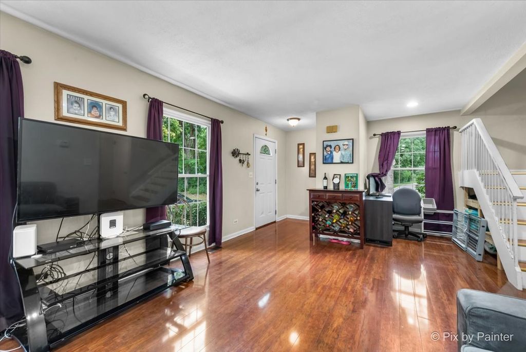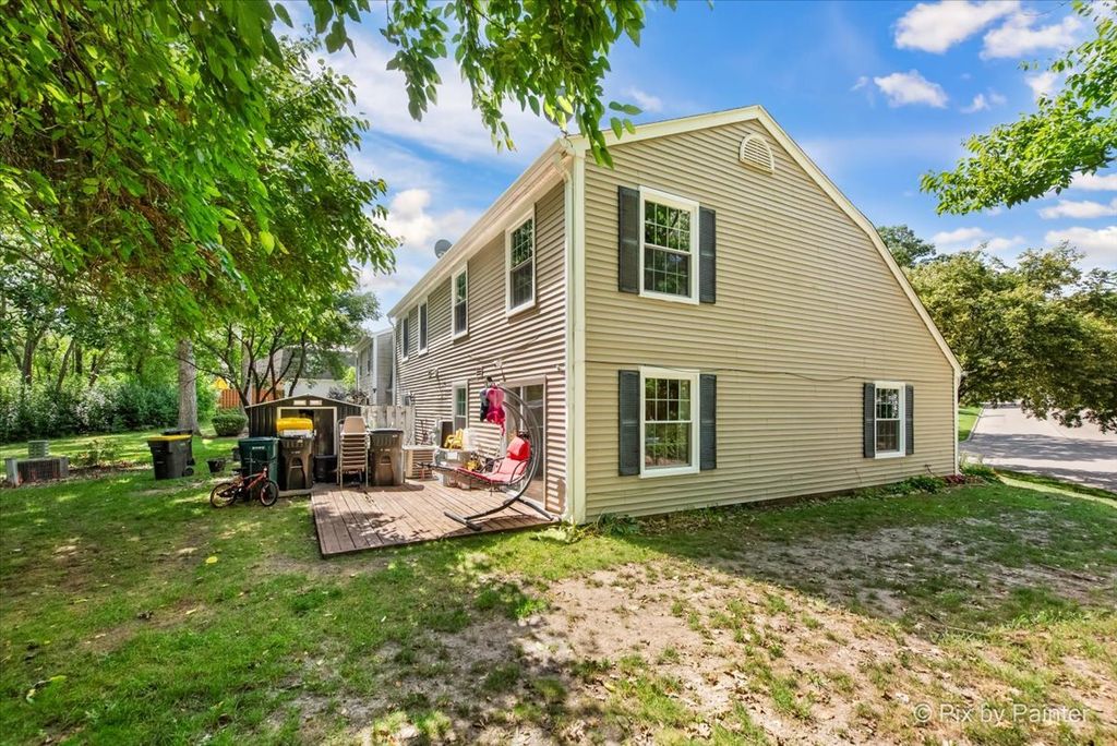 Welcome to this well-maintained 3-bedroom plus bonus room, 2-bathroom end-unit townhome that combines style, comfort, and privacy in an ideal location. Step inside to a spacious living room filled with natural light. The kitchen features quartz countertops, newer stainless steel appliances, and an island with generous seating, perfect for casual dining or entertaining. Sliding glass door leads from the dining area to your own private deck, extending the living space outdoors. Both full baths have been recently updated. All bedrooms are generously sized, including a versatile bonus room on the second floor, all with ample closet space. Some updates include all new windows and newer major mechanicals, including newer water heater and furnace making it truly move-in ready. The community HOA provides access to a swimming pool, clubhouse, and park area-resort-style amenities just steps from your front door. Located in a commuter-friendly area, this home is just minutes from the Metra, shopping centers, schools, and local parks. This home has so much to offer. Schedule your showing today.