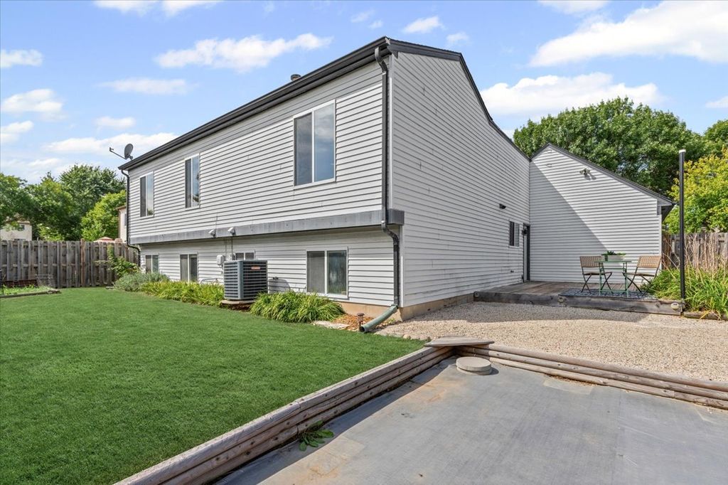 Don't miss this opportunity in Gurnee! Charming Four Bedroom, 2 Full Bath Tri-Level home with Mid Century Modern vibes! Beautiful fully fenced backyard with deck and shed opens up to more green space! Bathrooms have been refreshed and updated. All hardwood on the second level. Cozy fireplace with Wet Bar on the lower level. Newer stainless steel appliances in the kitchen. 2 + car attached garage with large driveway! Located right around the corner from Betty Russell Community Park~Pickle Ball, Playgrounds and Trails! This is the one!