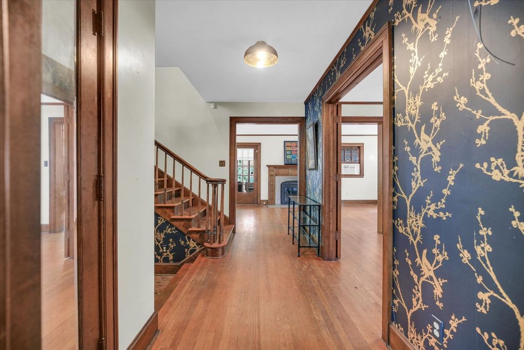 Charming brick home overlooking Carle Park with timeless character and updates throughout. Inside, you'll be greeted by a beautiful entryway that leads into a spacious living room with a wood burning fireplace, and connects to a cozy sunroom. Hardwood flooring extends into the separate dining room featuring french doors. The updated kitchen features white cabinets, stainless steel appliances, and plenty of prep space for cooking. The first floor includes an office with built-ins that could also serve as a fourth bedroom, providing you with flexibility. Upstairs, you'll find a large primary bedroom, two guest bedrooms, and a full bathroom. Additional storage and laundry is available in the unfinished basement. Outside, enjoy the tree-lined setting, detached 2-car garage, and unbeatable location just steps from the park. Well-cared for and pre-inspected for your convenience!