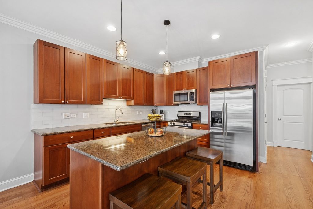 Enjoy living in this desirable Lincoln Park neighborhood in walking distance to restaurants, shopping, parks and both Red and Brown train lines! Flooded with natural light, this spacious condo has 3 bedrooms and 2 bathrooms with an open floor plan and private outdoor space. The living-dining room space is great for entertaining and the custom kitchen features a breakfast bar, newer backsplash, granite counters and all stainless appliances. The living room has a beautiful wood burning fireplace and French doors that open to Juliette balconies. The master bedroom has a custom built closet and an en suite bath with steam shower and dual vanity. The 2nd and 3rd bedrooms are spacious and both have custom closets. Additional features include full-size in-unit laundry, crown moldings, rooms wired for sound, concrete sound insulation between units, additional storage room. A 2 car covered tandem parking space is included.