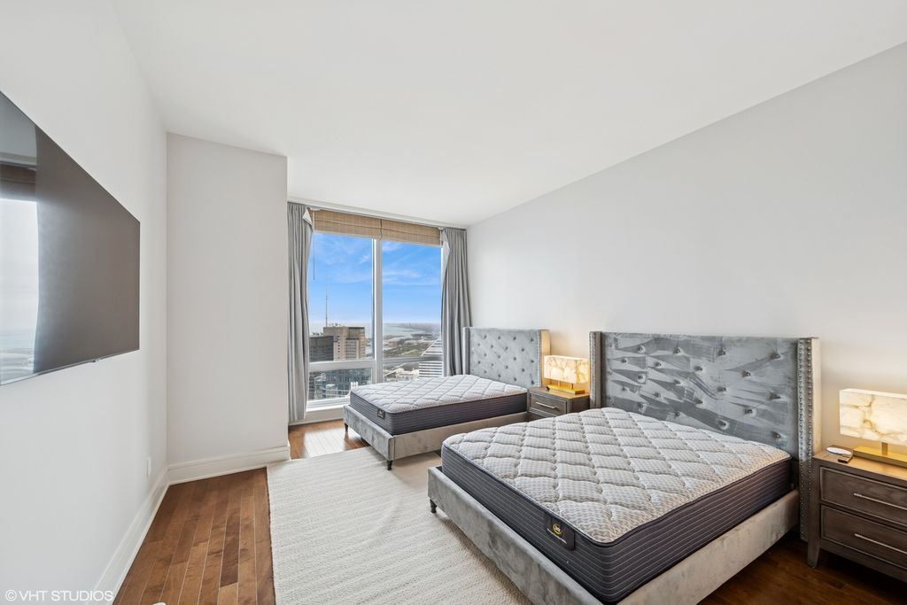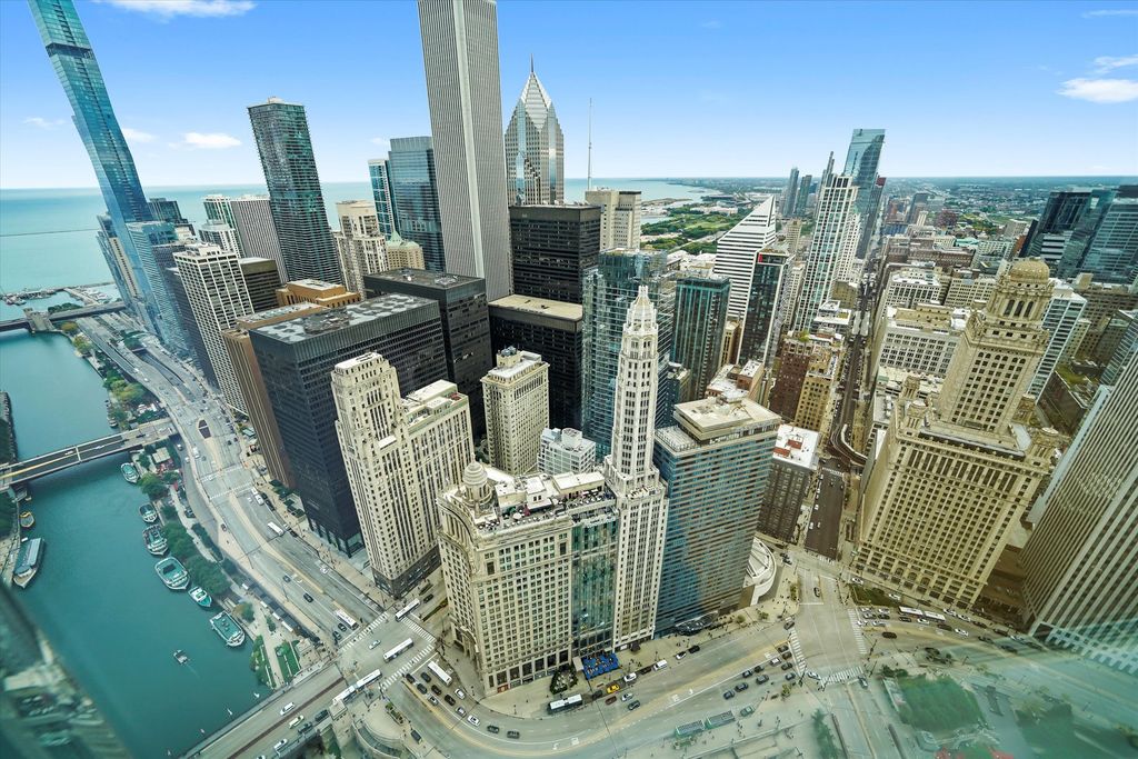 Rarely Available Pentier-Level Residence with Breathtaking Lake & River Views This exceptional, nearly 2,200 sqft residence occupies a coveted pentier level-an opportunity that rarely arises. Soaring 11-foot finished ceilings with recessed lighting enhance the expansive and perfectly conceived floor plan, which is bathed in light and offers stunning southeast views of the Lake and River. The home features two large bedrooms and 2.5 impeccably finished bathrooms. The chef's kitchen is outfitted with sleek Snaidero cabinetry and a full suite of premium appliances from Wolf, Miele, and Sub-Zero. The bathrooms are appointed with limestone, slate, marble, and Kohler fixtures, including separate showers. Beyond the private residence, enjoy the unparalleled five-star amenities of the Trump Hotel, including 24-hour room service, maid service, a world-class health club, and the luxurious Trump Spa. The offering includes two parking spaces. This is a truly special home that must be seen to be appreciated.
