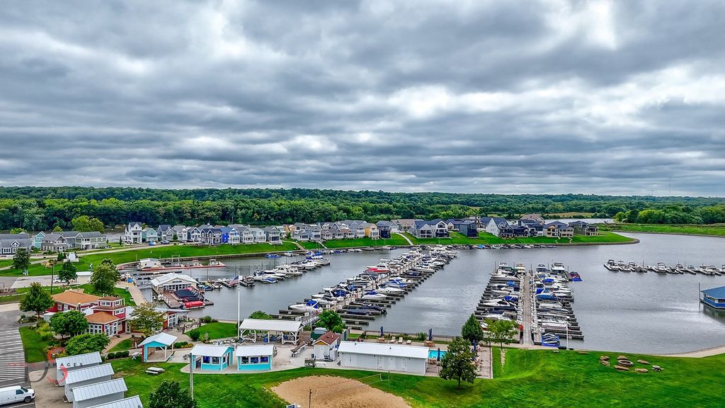 Enjoy life in the fullest in Navvy Town community located in the marina resort community of Heritage Harbor along the Illinois River. This three bedroom, 2.5 bathroom ranch home offers so much more than just a wonderful space to vacation or live. Every element of this duplex has been designed with ease and elegance in mind. On the first floor, you'll find open plan living, the master bedroom, and a deck with views of the marina. The kitchen is a real delight, with stainless steel appliances, Quartz countertops, tiled backsplash and semi-custom cabinetry. Beautiful stained oak treads line the stairs as you make your way to the finished walk-out basement, with two additional bedrooms, a bathroom, and large walk out recreation room. The lower level also contains a large storage closet that could be owner's lockable closet or just to store your stuff. The home comes furnished and decorated so it is ready to move in. This is a neighborhood you're sure to thrive in. Centered around outdoor park spaces and areas for families to gather and connect, steps away from a community pool, pickleball courts, an on-site restaurant, walking path and a bike trail. What's more, you're just steps from watersport rental, and only fifteen minutes from four State Parks! The home is also available to put in an optional on-site rental management program that is offered. The home also comes with two assigned parking spaces.