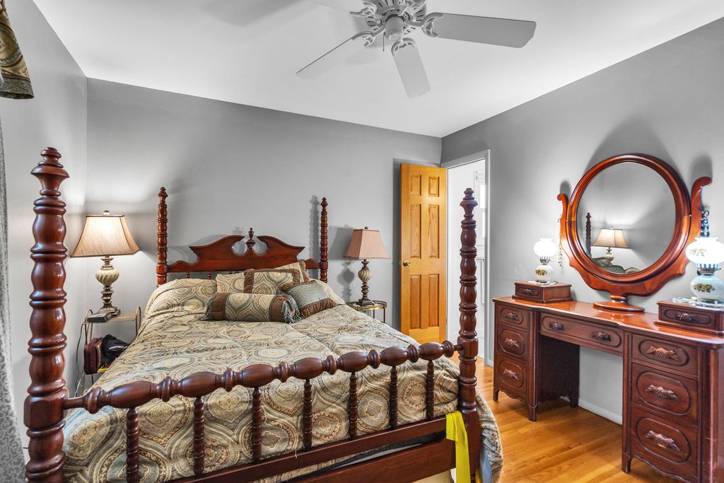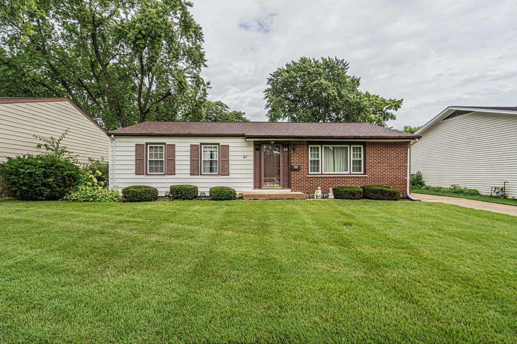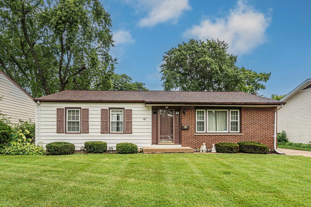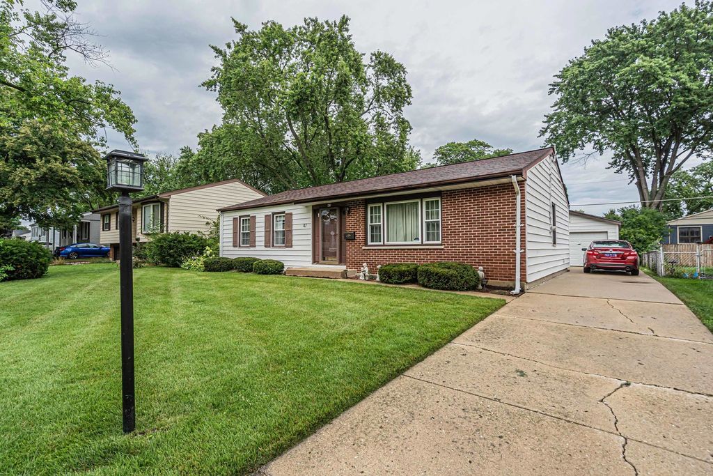 Welcome to this great 3 bedroom 1.5 bathroom ranch with a detached 1 car garage. The large living room has a great picture window letting in an abundance of natural light. Off the living room is the dining room and kitchen area. There is a large pantry off of the dining room great for storage. The kitchen features stainless steel appliances. Behind the kitchen is the laundry and utility room. The hot water heater was replaced in 2023. The 3 bedrooms all have beautiful hardwood floors. The primary bedroom is shared with the half bath off the laundry room. There is a full bathroom in the hallway for the other 2 bedrooms as well. The primary and 2nd bedroom have ceiling fans. Access to the detached 1.5 car garage and yard space from the kitchen. Extra long driveway for ample parking. Close proximity to schools, shopping, the library& Parks.5 minute walk to Metra! Dundee Rd (68) and Elmhurst Rd (83). Schedule your showing today!