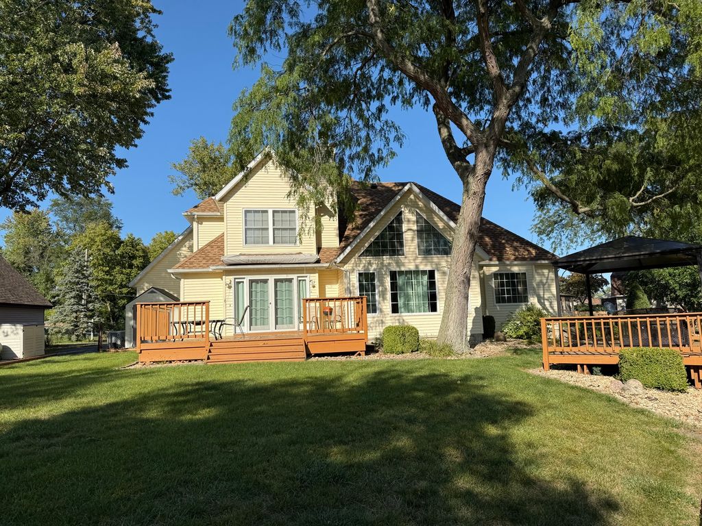 Get ready for spring next year with this Beautiful Waterfront Home for easy living and full-time recreation. 4 bedrooms possible 5. Purchase that boat and jet ski because that water will be ready when you are! Never have to leave home with this view and multiply lake access from your own dock. Working all day and coming home to a serene setting to relax and enjoy nature at its best. Home has beautiful open entry with immediate views with 2 story family room windows to let nature in the room immediately. Fireplace is nestled between both family room and kitchen. French doors in kitchen allow nature to nestle inside for early morning coffee on the double deck or kitchen island for breakfast. Spacious First floor master suite with jacuzzi tub on wall with huge windows for relaxing lazy soak. Double split sinks with separate vanities and mirrors for no sharing. Upstairs bedrooms and bath views maintain the retreat feeling in every area. Bonus room above garage allows for additional bedrooms, game room, or family recreation and guest with 2nd stairway down to garage for quite convenience. Fully fenced yard for child and pet safety from the lake. Don't pass up a look at this beauty!!! Tons of storage in attic and lower level has huge crawl space. Ceiling Fans throughout home, whole house generator, Pella windows, back up sump pump, air and furnace newer, Audry awning with screen sides for closed in seating, and 2 skylights in bonus room. Goose Lake Association allows for access to Goose, Beaver, Half Moon, and Lincoln Lakes. Full beach access is also available.