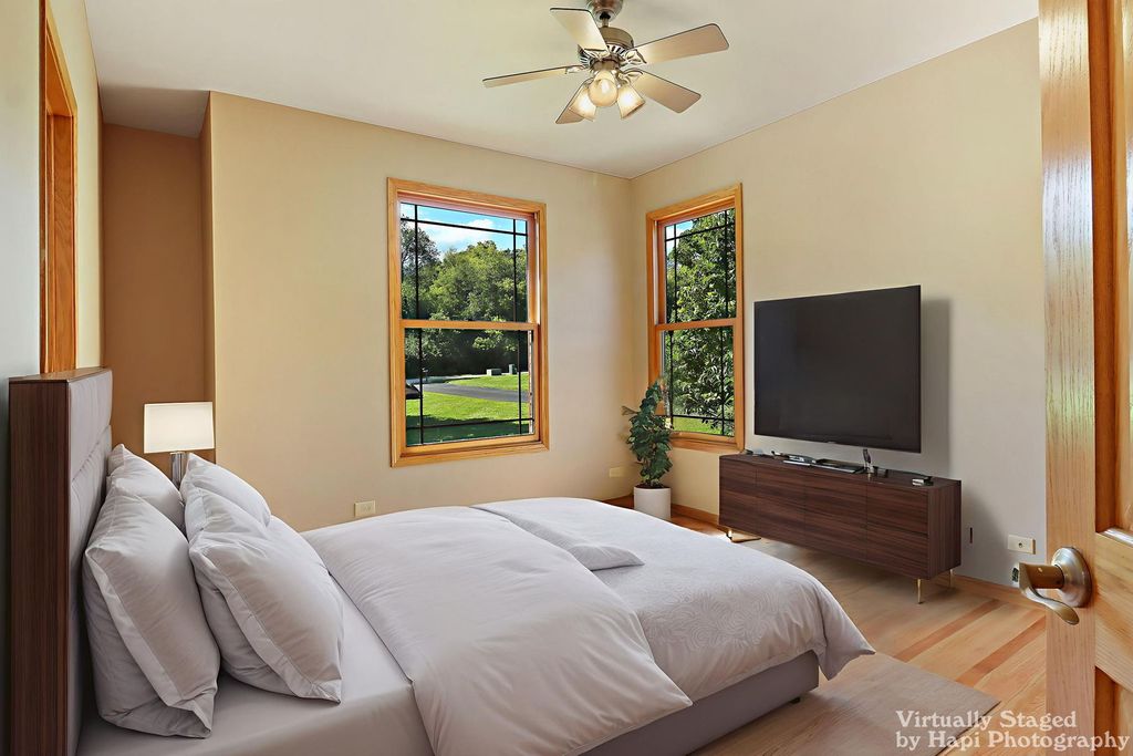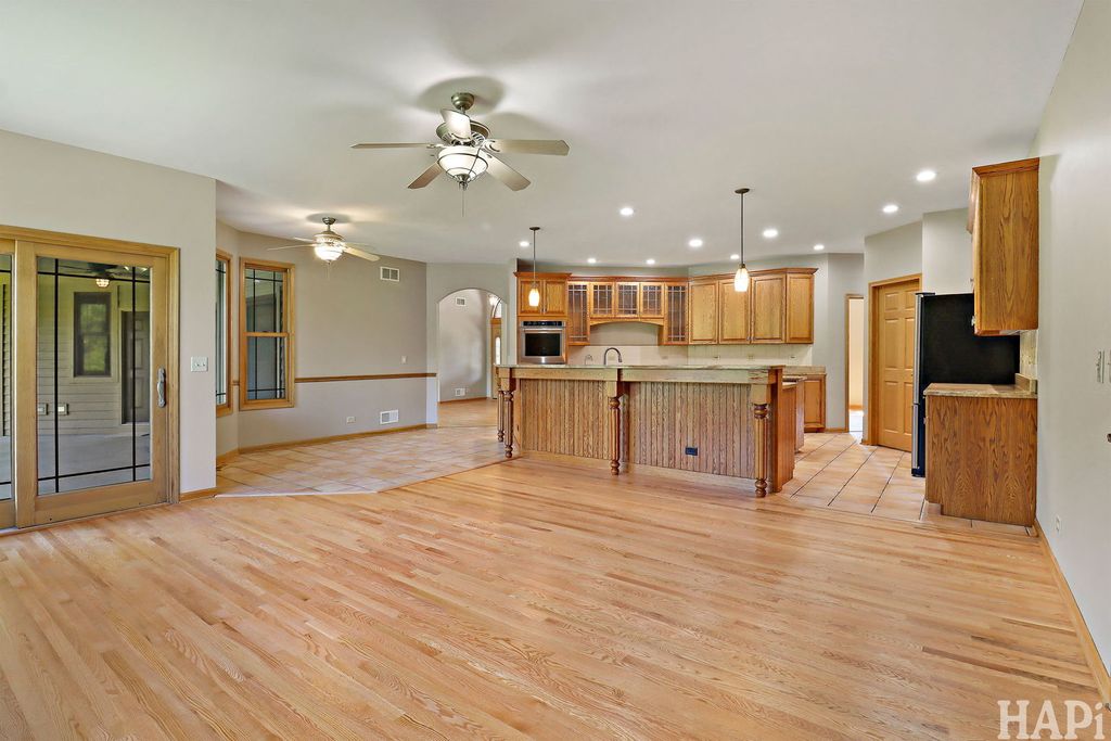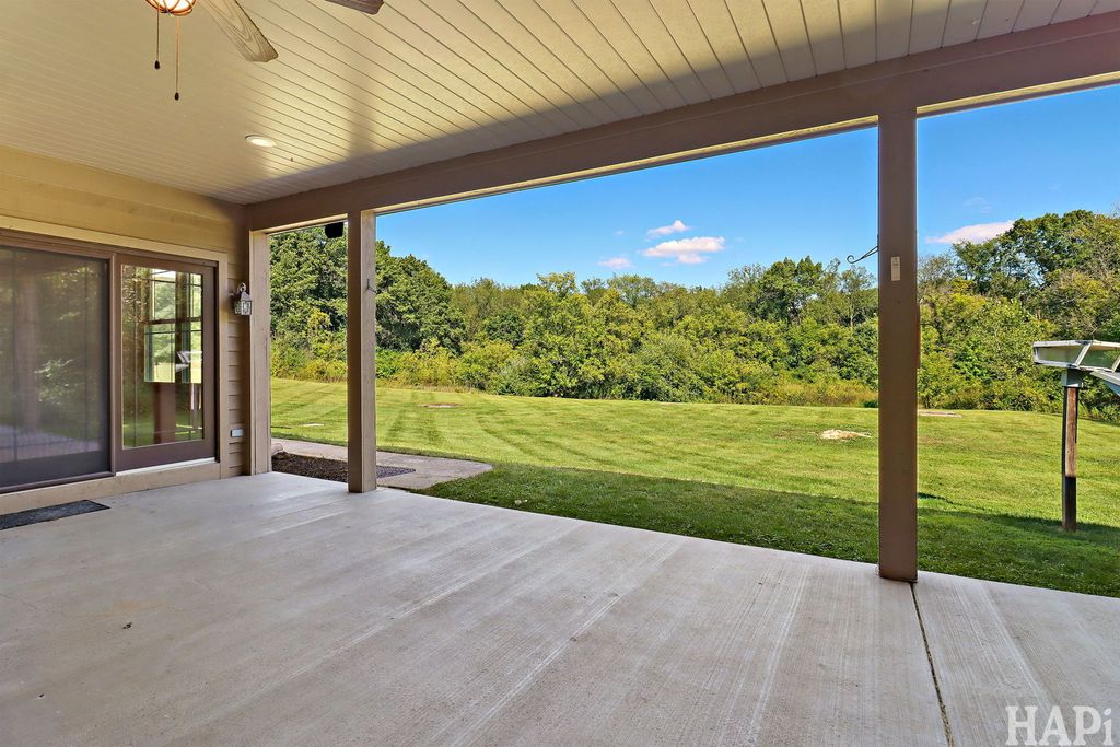 Welcome to this impressive 4-bedroom, 3- full bath ranch tucked away in a quiet cul-de-sac, two spacious lots, offering both privacy and room to grow. This property blends comfort with modern upgrades, making it a rare find. Step inside to discover a freshly painted interior, refinished hardwood floors and an expansive layout designed for everyday living and entertaining. One of the three full baths offers access to outside making it perfect for easy clean up or for your future pool. The oversized 3-car garage is heated,8 foot doors perfect for vehicles, storage, or a workshop. Additional features include a brand-new roof, heated floors in both the garage and basement, and a whole-house back-up generator for peace of mind. The full, large unfinished basement boasts soaring 9-foot ceilings, offering endless potential for a custom living space, recreation area, or home gym. Outside, the secluded setting provides tranquility, while the double lot offers space for outdoor activities, gardening, or a future pole barn