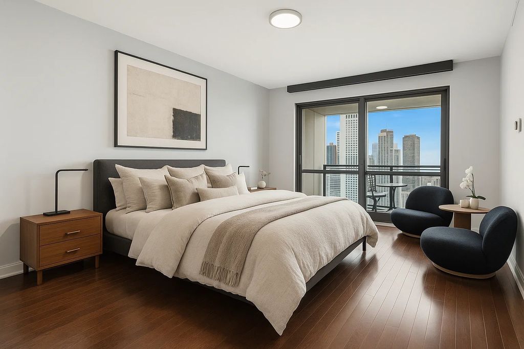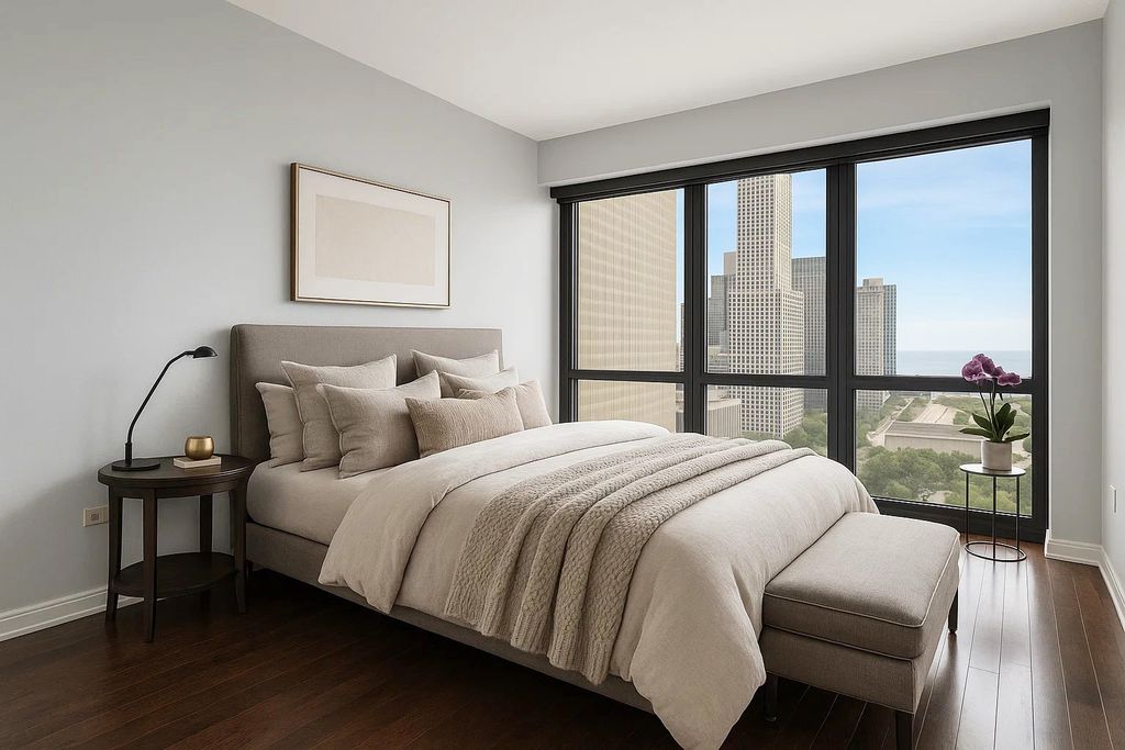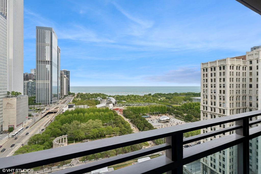 COMPLETELY REMODELED luxurious 2 bed/2 bath residence with UNOBSTRUCTED panoramic lake, The Bean, Millennium Park and city views from EVERY SINGLE ROOM in the prestigious The Heritage at Millennium Park building! Not only is this home in the heart of downtown but it also features oversized windows, a desired open kitchen/living room layout, split floor plan, rich wide plank hardwood floors throughout and a PRIVATE balcony overlooking the same BREATHTAKING views!!! Modern chef's kitchen boasts stainless steel appliances, white cabinetry, quartz countertops with full backsplash, breakfast bar and tons of storage. ENORMOUS primary suite with A MASSIVE professionally organized custom walk-in closet, completely remodeled luxurious spa-like primary bathroom complete with dual sinks, quartz counters, a large soaking tub, separate walk-in shower, heated floors and exquisite finishes. Oversized second bedroom with the same stunning views and fully renovated bathroom right next door. Full-amenity building with 24-hour door staff, on-site management, party room, conference room, sauna, indoor pool, fitness center, outdoor terraces, dog run, storage, Pedway access and more! Just steps to grocery stores, Michigan Ave, the lakefront, RiverWalk, museums, shopping, the best restaurants and nightlife Chicago has to offer, coffee shops, parks and so much more. Close proximity to Lakeshore Drive, highways and public transportation. 2 deeded garage parking spaces available for $35K each.