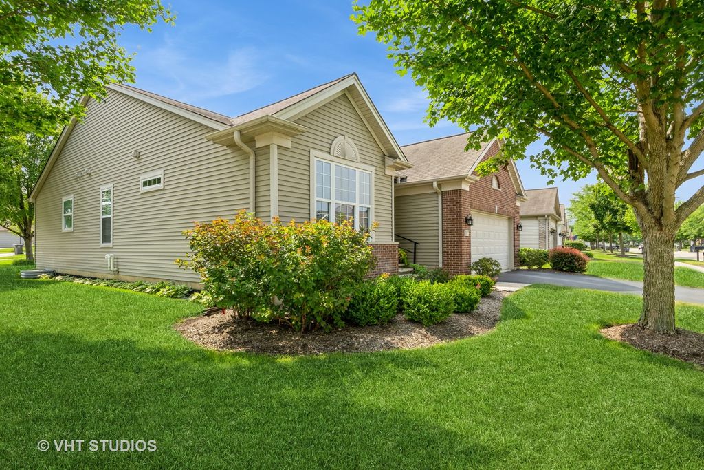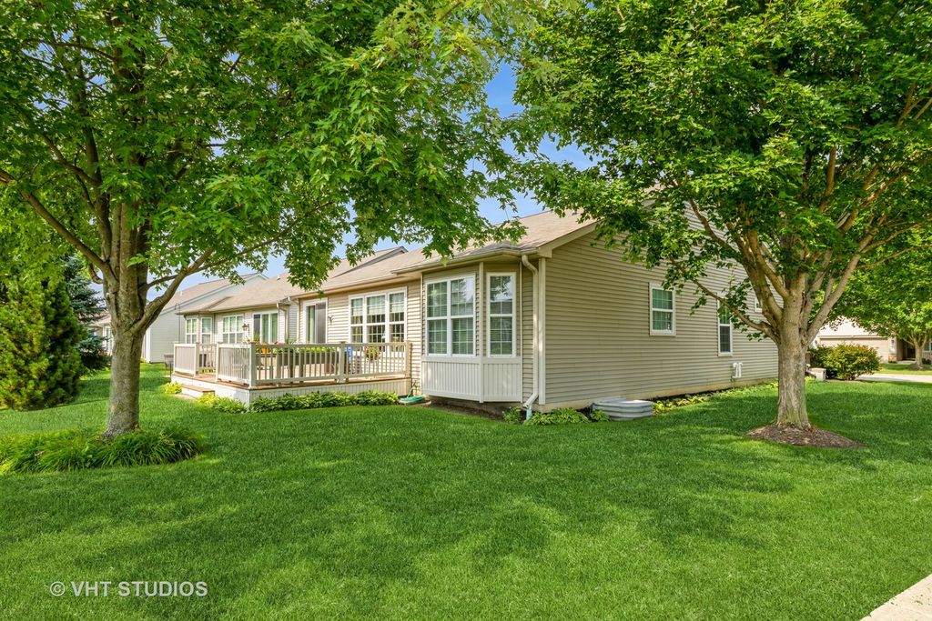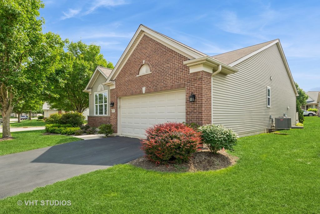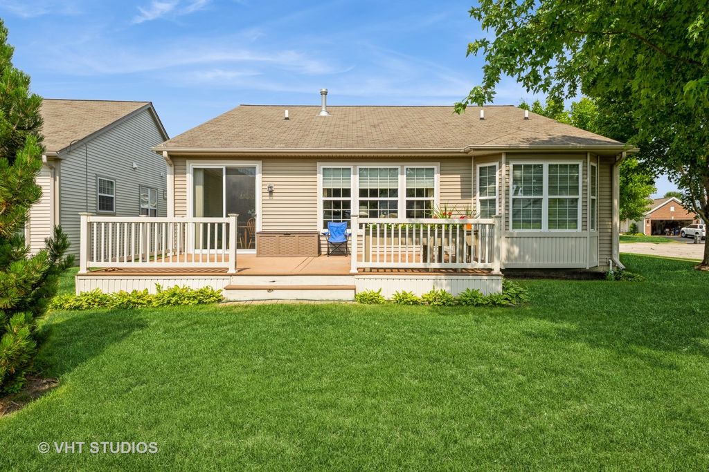 Beautiful Wilmette model with an EXTENDED GARAGE & UNFINISHED BASEMENT with separate workshop area. Large 20x12 composite deck with raised flower beds will stay. Kitchen has cherry cabinets, corian counters, tile backsplash, newer microwave & range (1/23),refrigerator (2018) & under cabinet lighting. HWH has been replaced (2014). NEW AC & FURNACE, but roof is original but in good shape. House has a FIREPLACE and TV will stay and has SURROUND SOUND & SUB-WOOFER. Master Bedroom has a BAY WINDOW. Sprinkler system "as is" but can be put in working condition. Edgewater is an Active Adult community and one person living in house has to be 55+. HOA cuts grass and shovels snow (2" or more), seal coat driveways every 2 years, has 24/7 guard, 2 pools and hot tub, tennis/pickle ball courts; many activities to participate in. Live in a Wonderful Community with many things to do!