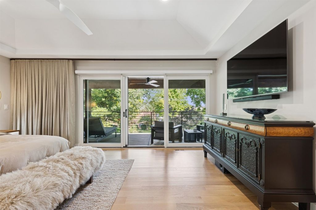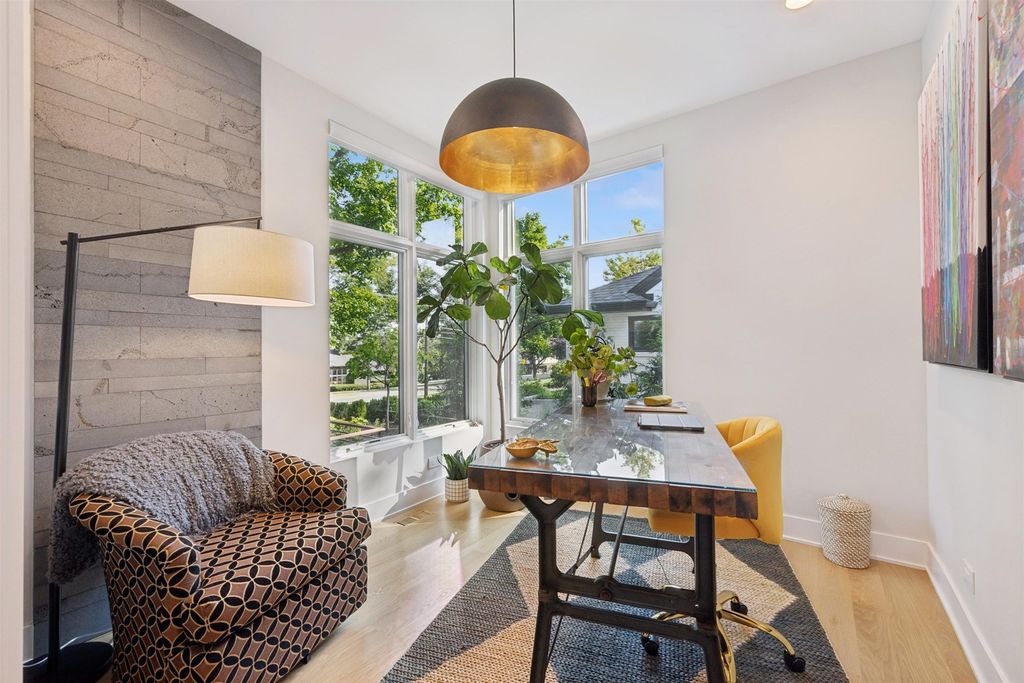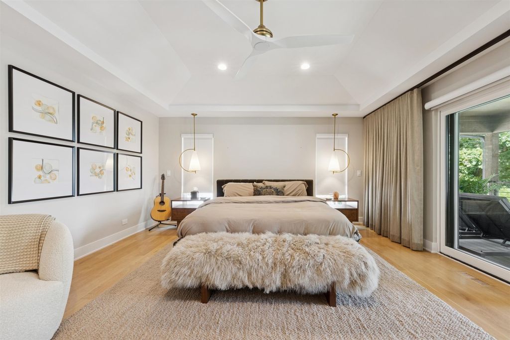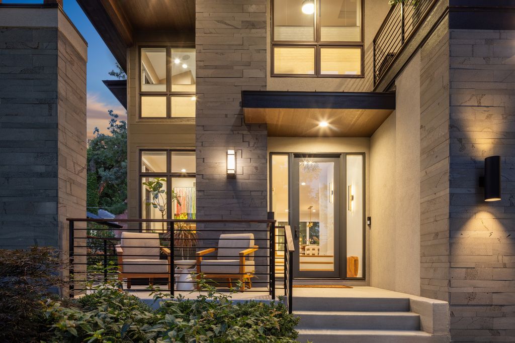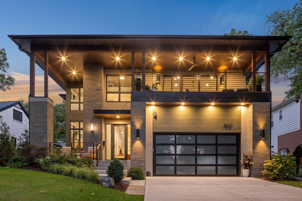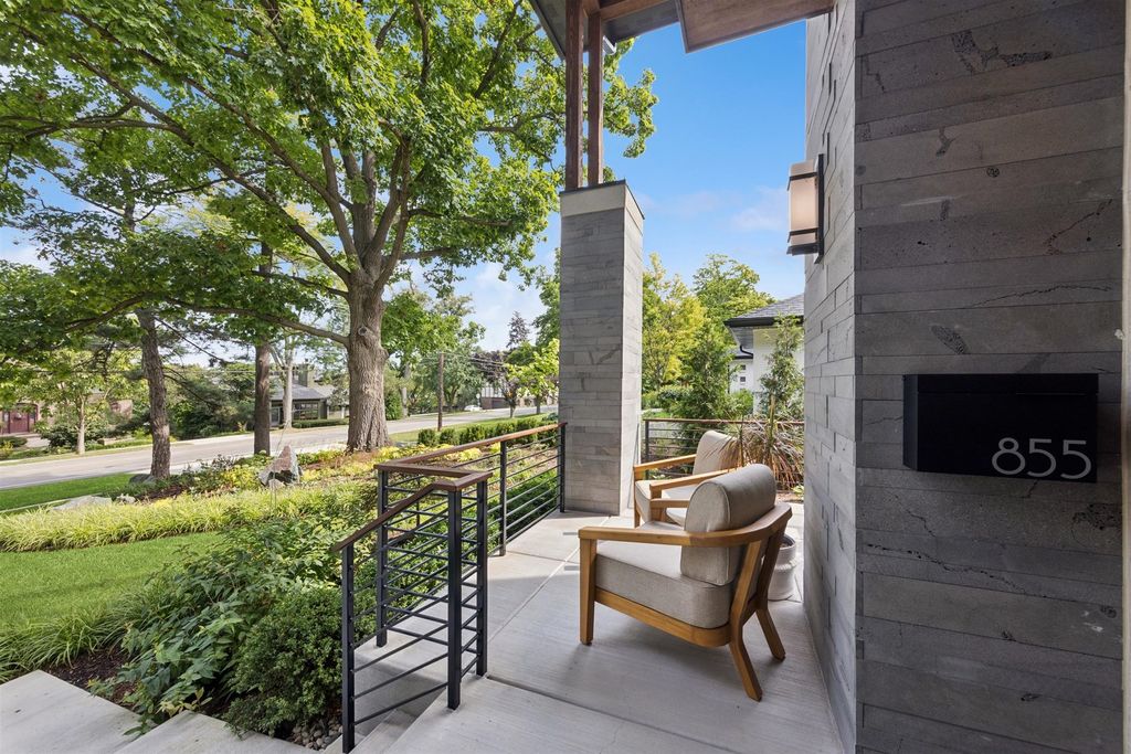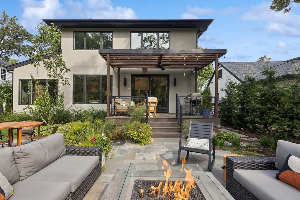 Nestled above treelined Crescent Boulevard, this one-of-a-kind modern home was designed to reflect the homeowners' unique desire to blend nature and modern finishes to achieve a bright, airy and sophisticated living environment that feels like a warm hug from a close friend. With construction completed in spring 2024, 4200 sq ft of living space, this 4 bedroom, 3.5 bath home features high quality modern finishes inside and out, including a unique maintenance free exterior of authentic stucco, LavaStone, James Hardy siding, Pella windows, custom iron railing and Trex decking. In this modern prairie design, the roof sits atop stone and timber columns with large windows throughout the home to bring the outside in. While a large balcony off the master suite provides beautiful views and a chance to bring the inside out. Framed by large oak trees, the home has been thoughtfully landscaped to accent the hilltop view from the street, while the fully fenced back yard features an elevated pergola and bluestone patio, complete with a modern gas firepit and a playful waterfall feature. Enter the home and enjoy the open views. Walk over the white oak floors into the main living areas and see how this open floorplan can accommodate a large family gathering, while providing quaint, cozy areas if hosting a few friends. The kitchen showcases high end Thermador appliances with one of a kind Amish-made solid hardwood cabinets. Modern flat front cabinets with inset doors conceal appliances and boast a world of organizational features. Use Scullery space for additional prep or serving space, or just somewhere to hide your dishes after serving a meal at the stunning quartz Kitchen Island or in the adjacent Dining Room. After dinner, let the kids take their friends to play in the deep pour fully finished basement, while the adults move to the cozy Bourbon Room/Den for cocktails, or get everyone together around the large linear gas fireplace in the Living Room. Whatever you choose to do, the home automation and security camera system makes it a snap to keep the lighting and powered shades perfectly positioned. Upstairs the spacious Primary Suite features a seating area at the entry with coffee bar/beverage fridge. The primary Bath has a Soaker tub, Kohler steam shower with dual shower heads and ceiling mounted Bluetooth speaker. The primary closet has custom cabinetry and is perfectly sized to store your clothes, shoes and other treasures. Custom drapery and shades in the are powered, and with the touch of a button, your Primary Suite closes into a private sanctuary. Open the shades and step out onto the spacious deck to enjoy the bird's eye view. The second floor has two other spacious bedrooms with large closets for storage. The guest bathroom has a large shower with two heads and a built-in seat. The laundry room is hidden in the hallway behind "soft close" sliding doors which when open reveal a large capacity washer and dryer, custom cabinetry, and a utility sink. Behind the laundry room, there is a large finished storage area. Garage is fully finished and heated. Epoxy floor, slat wall storage system, refrigerator, cabinets and an ultra quiet jackshaft door opener. Fire protection system throughout the home Fully integrated home network and smart home features, professionally installed Rainbird irrigation system Oversized gutters and downspouts with buried discharge 200 amp electrical service Landscape design and installation by Rolling Landscapes. Come on over, we can show how all the lighting, music and window treatments are on turned on/ off and moved with an app and your phone or Alexa