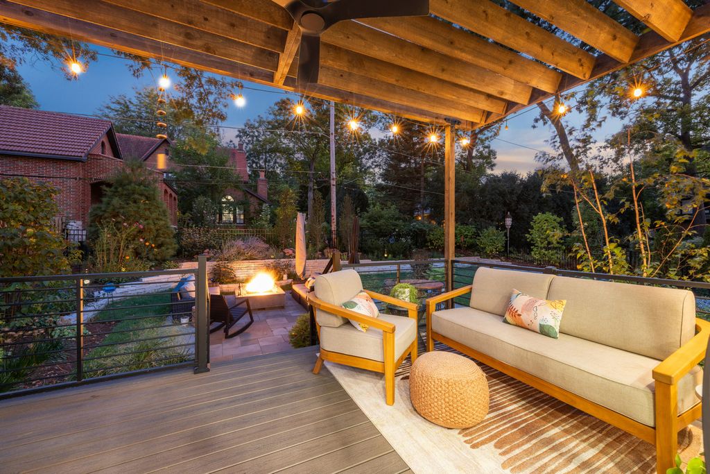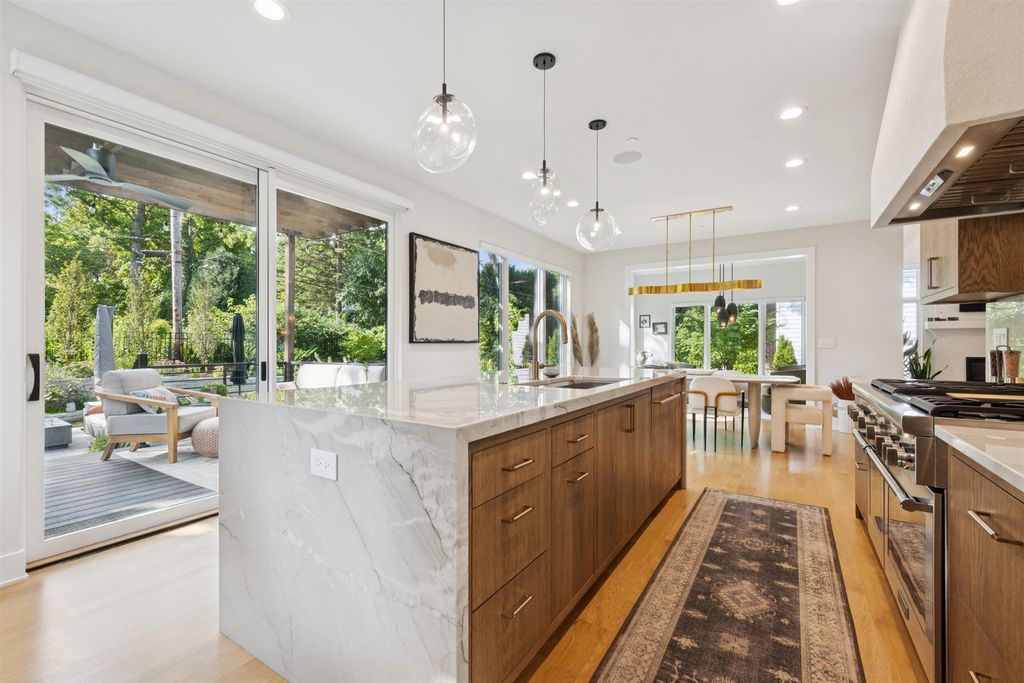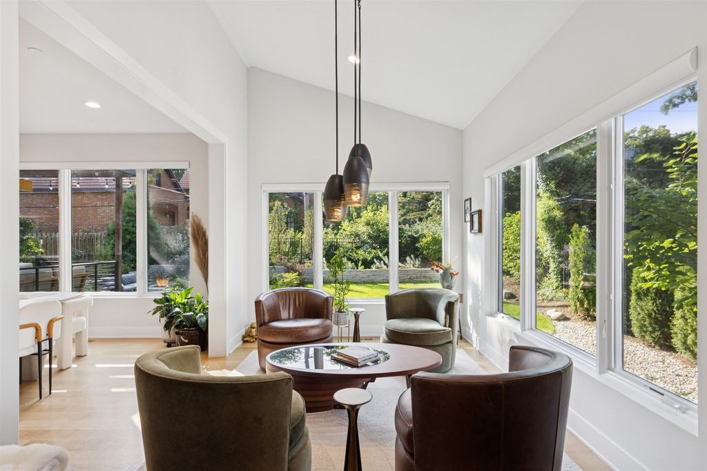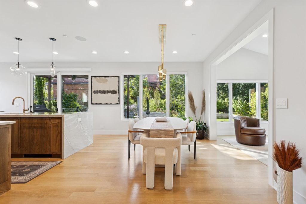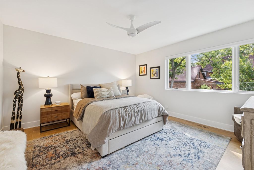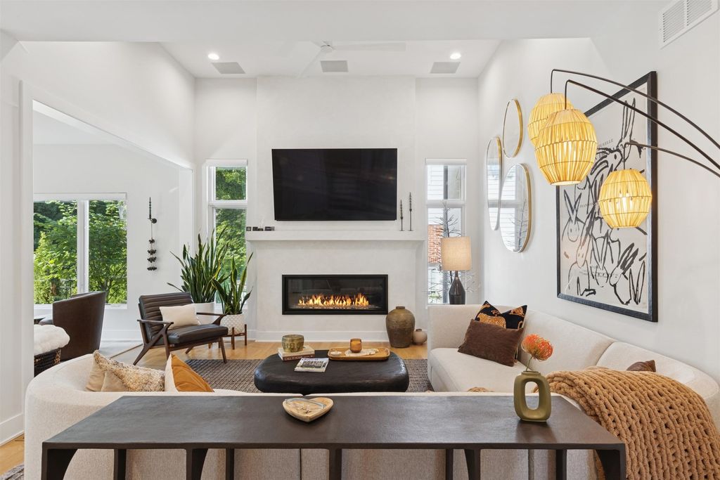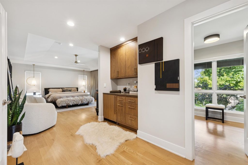 Nestled above treelined Crescent Boulevard, this one-of-a-kind modern home was designed to reflect the homeowners' unique desire to blend nature and modern finishes to achieve a bright, airy and sophisticated living environment that feels like a warm hug from a close friend. With construction completed in spring 2024, 4200 sq ft of living space, this 4 bedroom, 3.5 bath home features high quality modern finishes inside and out, including a unique maintenance free exterior of authentic stucco, LavaStone, James Hardy siding, Pella windows, custom iron railing and Trex decking. In this modern prairie design, the roof sits atop stone and timber columns with large windows throughout the home to bring the outside in. While a large balcony off the master suite provides beautiful views and a chance to bring the inside out. Framed by large oak trees, the home has been thoughtfully landscaped to accent the hilltop view from the street, while the fully fenced back yard features an elevated pergola and bluestone patio, complete with a modern gas firepit and a playful waterfall feature. Enter the home and enjoy the open views. Walk over the white oak floors into the main living areas and see how this open floorplan can accommodate a large family gathering, while providing quaint, cozy areas if hosting a few friends. The kitchen showcases high end Thermador appliances with one of a kind Amish-made solid hardwood cabinets. Modern flat front cabinets with inset doors conceal appliances and boast a world of organizational features. Use Scullery space for additional prep or serving space, or just somewhere to hide your dishes after serving a meal at the stunning quartz Kitchen Island or in the adjacent Dining Room. After dinner, let the kids take their friends to play in the deep pour fully finished basement, while the adults move to the cozy Bourbon Room/Den for cocktails, or get everyone together around the large linear gas fireplace in the Living Room. Whatever you choose to do, the home automation and security camera system makes it a snap to keep the lighting and powered shades perfectly positioned. Upstairs the spacious Primary Suite features a seating area at the entry with coffee bar/beverage fridge. The primary Bath has a Soaker tub, Kohler steam shower with dual shower heads and ceiling mounted Bluetooth speaker. The primary closet has custom cabinetry and is perfectly sized to store your clothes, shoes and other treasures. Custom drapery and shades in the are powered, and with the touch of a button, your Primary Suite closes into a private sanctuary. Open the shades and step out onto the spacious deck to enjoy the bird's eye view. The second floor has two other spacious bedrooms with large closets for storage. The guest bathroom has a large shower with two heads and a built-in seat. The laundry room is hidden in the hallway behind "soft close" sliding doors which when open reveal a large capacity washer and dryer, custom cabinetry, and a utility sink. Behind the laundry room, there is a large finished storage area. Garage is fully finished and heated. Epoxy floor, slat wall storage system, refrigerator, cabinets and an ultra quiet jackshaft door opener. Fire protection system throughout the home Fully integrated home network and smart home features, professionally installed Rainbird irrigation system Oversized gutters and downspouts with buried discharge 200 amp electrical service Landscape design and installation by Rolling Landscapes. Come on over, we can show how all the lighting, music and window treatments are on turned on/ off and moved with an app and your phone or Alexa