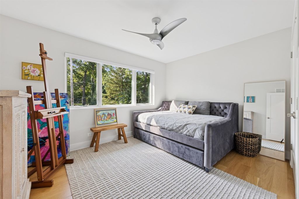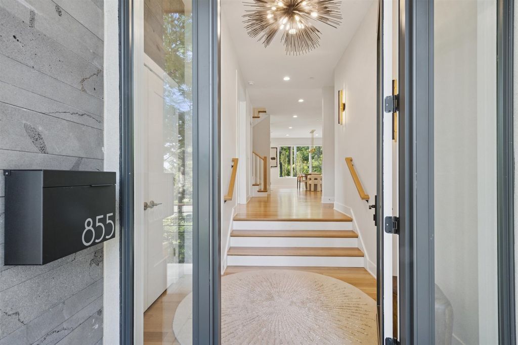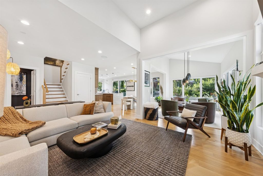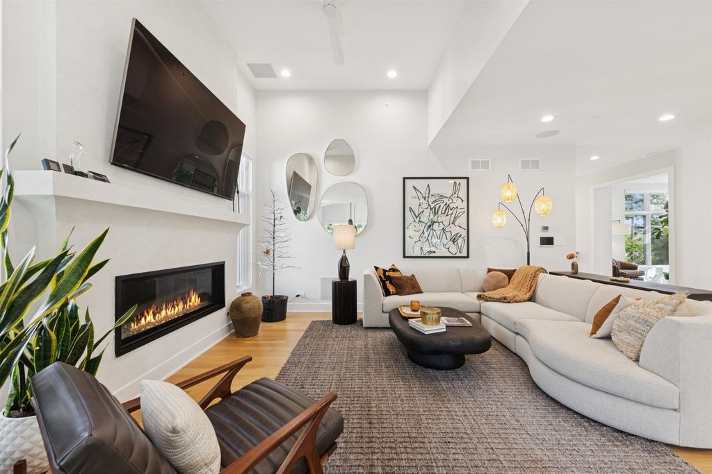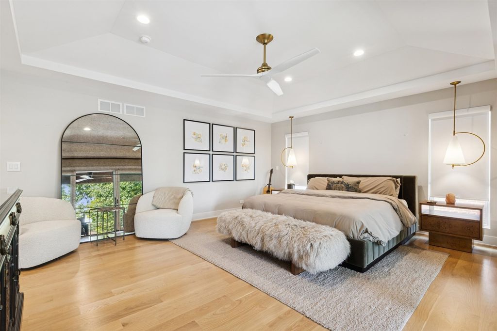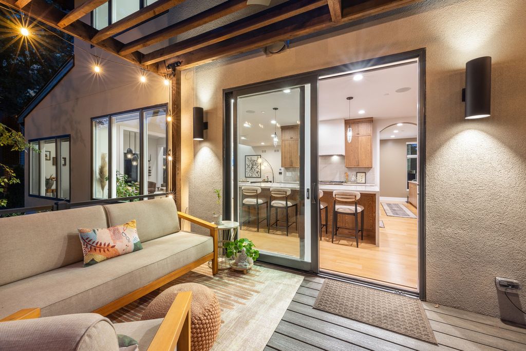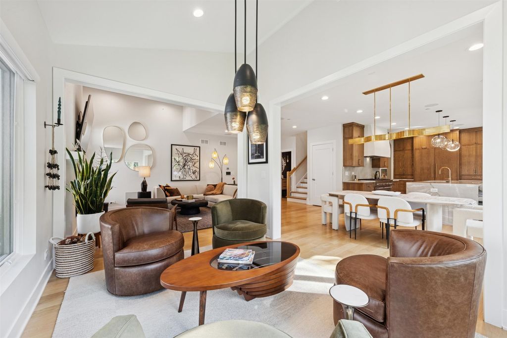 Nestled above treelined Crescent Boulevard, this one-of-a-kind modern home was designed to reflect the homeowners' unique desire to blend nature and modern finishes to achieve a bright, airy and sophisticated living environment that feels like a warm hug from a close friend. With construction completed in spring 2024, 4200 sq ft of living space, this 4 bedroom, 3.5 bath home features high quality modern finishes inside and out, including a unique maintenance free exterior of authentic stucco, LavaStone, James Hardy siding, Pella windows, custom iron railing and Trex decking. In this modern prairie design, the roof sits atop stone and timber columns with large windows throughout the home to bring the outside in. While a large balcony off the master suite provides beautiful views and a chance to bring the inside out. Framed by large oak trees, the home has been thoughtfully landscaped to accent the hilltop view from the street, while the fully fenced back yard features an elevated pergola and bluestone patio, complete with a modern gas firepit and a playful waterfall feature. Enter the home and enjoy the open views. Walk over the white oak floors into the main living areas and see how this open floorplan can accommodate a large family gathering, while providing quaint, cozy areas if hosting a few friends. The kitchen showcases high end Thermador appliances with one of a kind Amish-made solid hardwood cabinets. Modern flat front cabinets with inset doors conceal appliances and boast a world of organizational features. Use Scullery space for additional prep or serving space, or just somewhere to hide your dishes after serving a meal at the stunning quartz Kitchen Island or in the adjacent Dining Room. After dinner, let the kids take their friends to play in the deep pour fully finished basement, while the adults move to the cozy Bourbon Room/Den for cocktails, or get everyone together around the large linear gas fireplace in the Living Room. Whatever you choose to do, the home automation and security camera system makes it a snap to keep the lighting and powered shades perfectly positioned. Upstairs the spacious Primary Suite features a seating area at the entry with coffee bar/beverage fridge. The primary Bath has a Soaker tub, Kohler steam shower with dual shower heads and ceiling mounted Bluetooth speaker. The primary closet has custom cabinetry and is perfectly sized to store your clothes, shoes and other treasures. Custom drapery and shades in the are powered, and with the touch of a button, your Primary Suite closes into a private sanctuary. Open the shades and step out onto the spacious deck to enjoy the bird's eye view. The second floor has two other spacious bedrooms with large closets for storage. The guest bathroom has a large shower with two heads and a built-in seat. The laundry room is hidden in the hallway behind "soft close" sliding doors which when open reveal a large capacity washer and dryer, custom cabinetry, and a utility sink. Behind the laundry room, there is a large finished storage area. Garage is fully finished and heated. Epoxy floor, slat wall storage system, refrigerator, cabinets and an ultra quiet jackshaft door opener. Fire protection system throughout the home Fully integrated home network and smart home features, professionally installed Rainbird irrigation system Oversized gutters and downspouts with buried discharge 200 amp electrical service Landscape design and installation by Rolling Landscapes. Come on over, we can show how all the lighting, music and window treatments are on turned on/ off and moved with an app and your phone or Alexa
