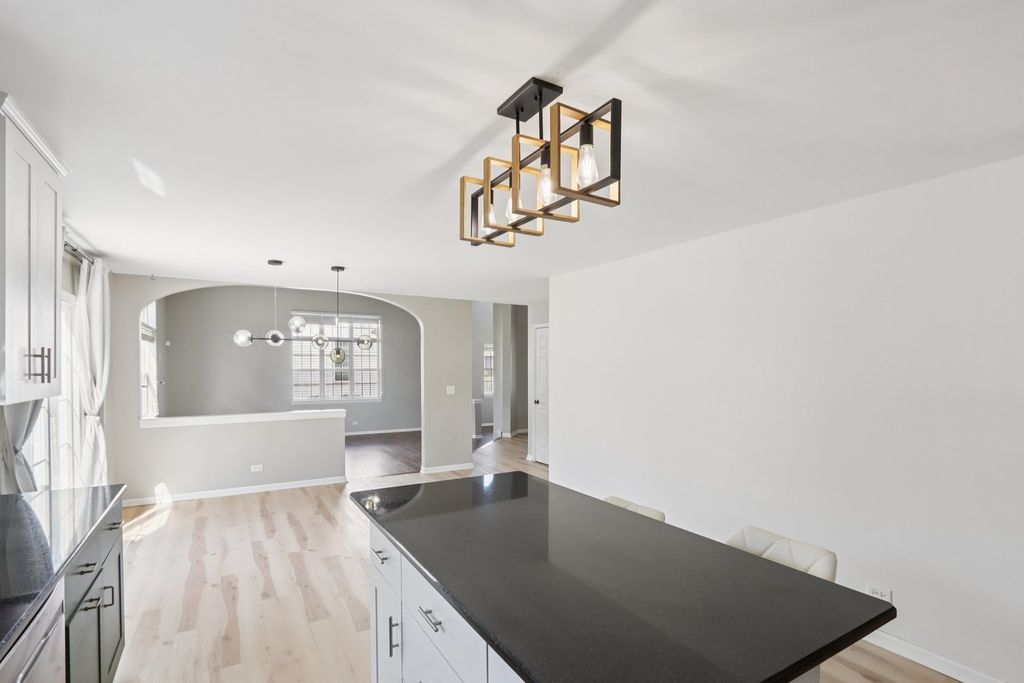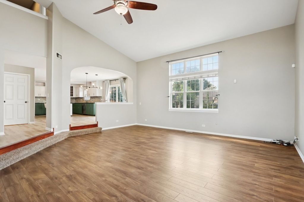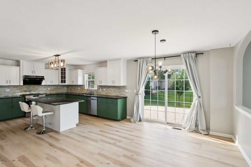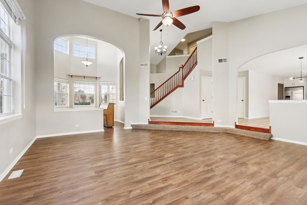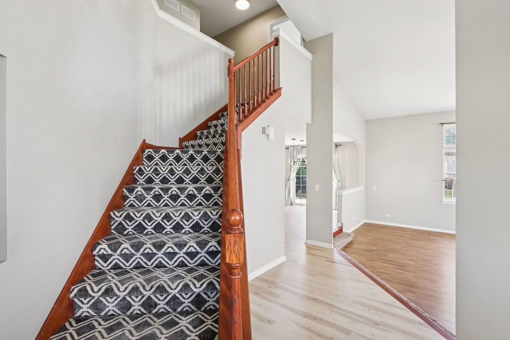 Charming 2-story home in sought-after North Plainfield District 202. This custom 4-bedroom residence welcomes you with a wrap-around front porch and a 3-car garage. Inside, an airy open-concept design showcases soaring 2-story ceilings in the living room and office, newer flooring, and freshly painted interiors. The spacious kitchen features stylish dual-tone maple cabinets, stainless-steel appliances, granite countertops, a tasteful backsplash, a center island, and a large eating area. Upstairs you'll find four bedrooms, each with a ceiling fan and walk-in closet. The primary suite offers a tray ceiling, custom closet organizers, and a luxurious bath with soaking tub, separate shower, and dual vanities. Entertain with ease in the finished basement-complete with a private play area or flexible office/storage space-or enjoy the outdoors on the stamped concrete patio. Conveniently located just minutes from downtown and shopping. Included features and appliances include the dishwasher (2022), vent hood (2020), whole house RO water filtration system (2021), washer (2022), new light fixtures throughout (2021), carpet in the second floor, stairs, and basement (2020), a new window in the third bedroom (2024) and an EV charger in the garage (2025).