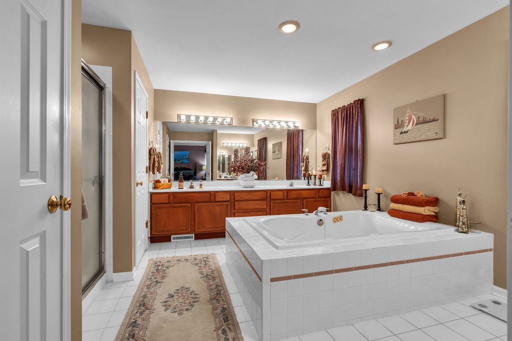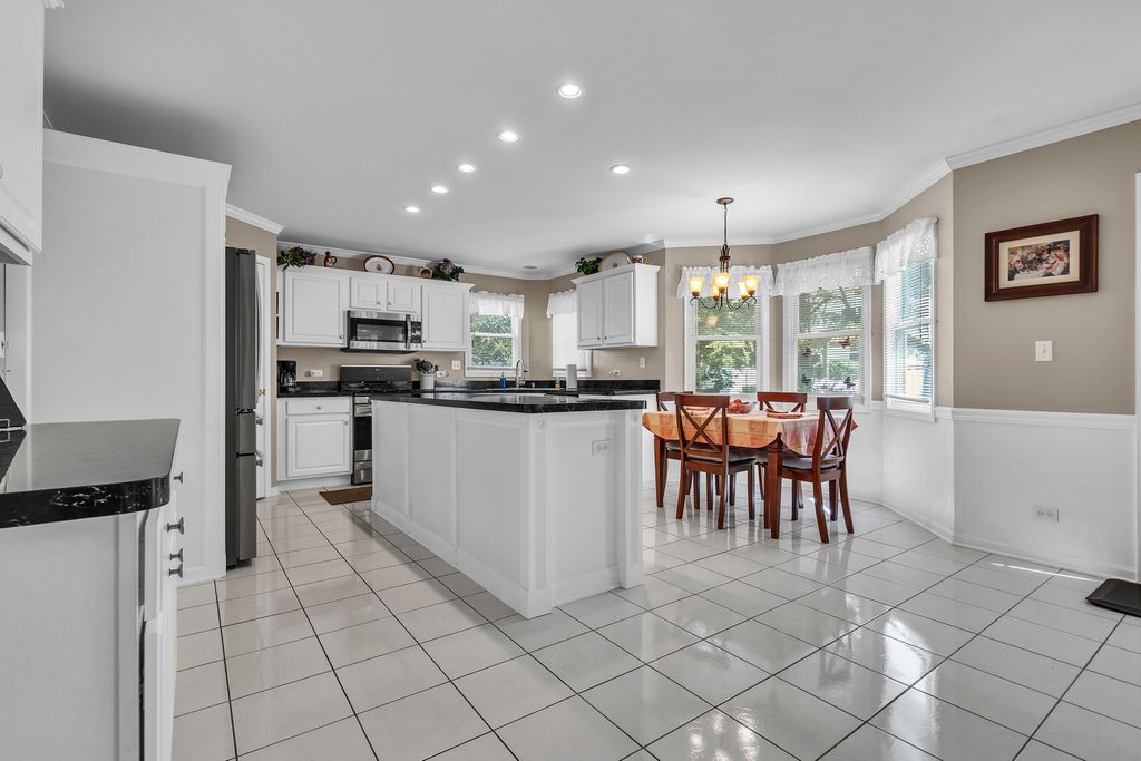 Stunning and spacious home loaded with upgrades! Step inside to a beautiful open foyer with custom wood work, an open staircase and fresh neutral paint throughout. Entertain with ease in the formal dining room featuring French doors and custom columns, or relax in the vaulted living room with hardwood floors. The gourmet kitchen boasts white cabinetry, quartz countertops, stainless steel appliances, walk-in pantry, an impressive 8-foot island, and a separate eating area with bay window. The 2-story family room offers a cozy woodburning fireplace, while the first-floor office/study includes custom built-in bookshelves, hardwood flooring, and French doors for privacy. A convenient first-floor laundry room with cabinets adds to the functionality. The luxurious primary suite features hardwood flooring and a spa-like bath with a center jacuzzi tub, separate shower, double vanities, and a makeup vanity. Crown molding adds elegance throughout the home. Enjoy even more living space in the finished basement, complete with a gas fireplace and a full bath with jacuzzi tub. Step outside to a spacious backyard with a full deck-perfect for entertaining or relaxing. Recent updates include: New hot water heater (2024), new ejector pump (2024), Watch Dog sump pump with battery backup, Rheem A/C & furnace (2018), and AprilAire (2018). Award winning schools and minutes away from downtown Lombard. Come see and appreciate all that this beautiful home has to offer!