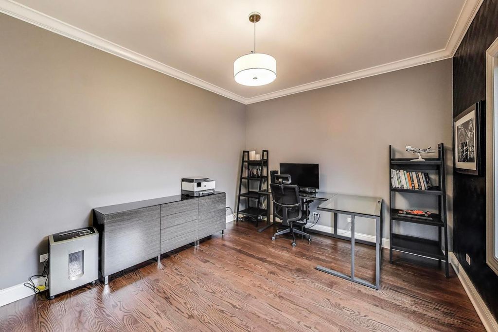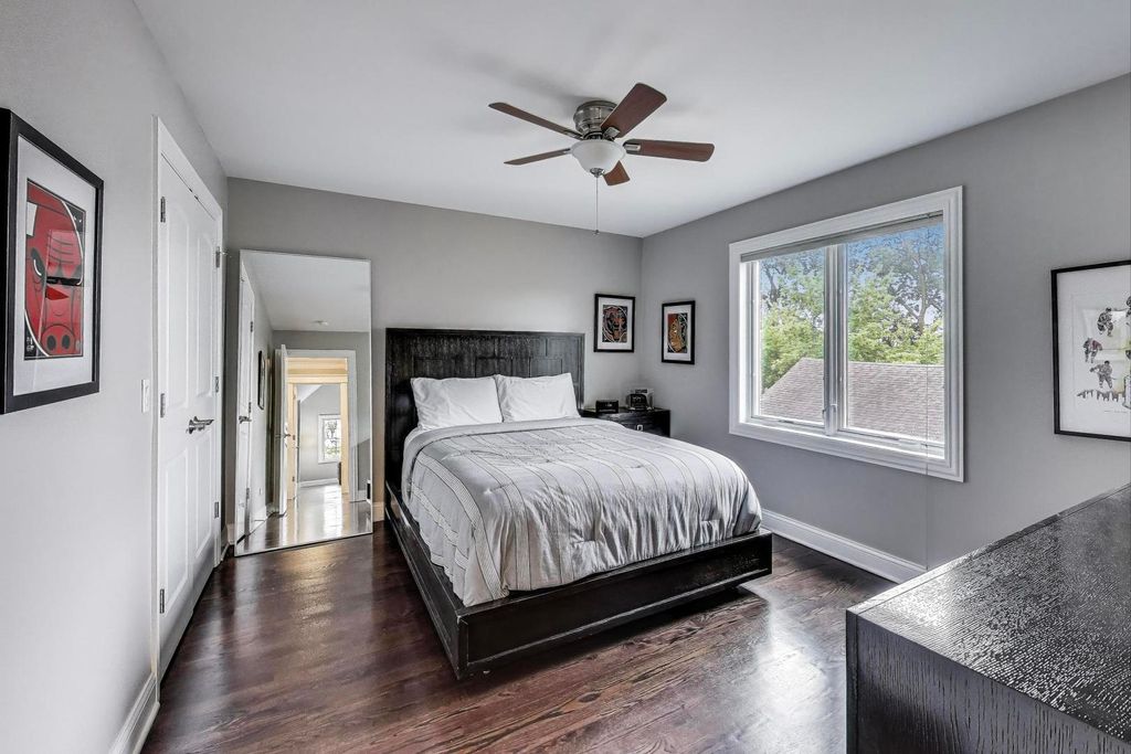 Welcome to 554 W Crockett Avenue! Thoughtfully designed for both everyday living and entertaining, this 5-bedroom, 5-bath brick home offers space, comfort, and style on an extra-deep 180-foot lot. The main floor features a dedicated office, perfect for work or study, as well as an updated kitchen and expansive living areas with hardwood floors throughout. The primary suite is a true retreat, boasting a luxury renovated bath and two generous his and hers walk-in closets. All bathrooms on the first and second levels have been tastefully renovated, blending modern finishes with timeless design. The finished basement has a private movie theater (all equipment included) and additional living/flex space. Convenience abounds with two laundry setups-one on the main floor and another in the basement. Step outside to enjoy the paver patio and the large vinyl fenced in yard, offering endless potential for outdoor living and play. All this, just a short walk to Berens Park with its trails, playgrounds, and athletic fields. This home seamlessly blends elegance, comfort, and convenience-ready for its next chapter. Updates Include: Refrigerator 2025, Water Heater 2024, Ejector Pump 2023, Sump Pump 2023, Fence 2023, Primary Bath, Upstairs Baths and First Floor Bath 2022, Laundry Room + Washer/Dryer 2022, Two Lennox AC Units 2020, Two Ecobee Thermostats 2020.
