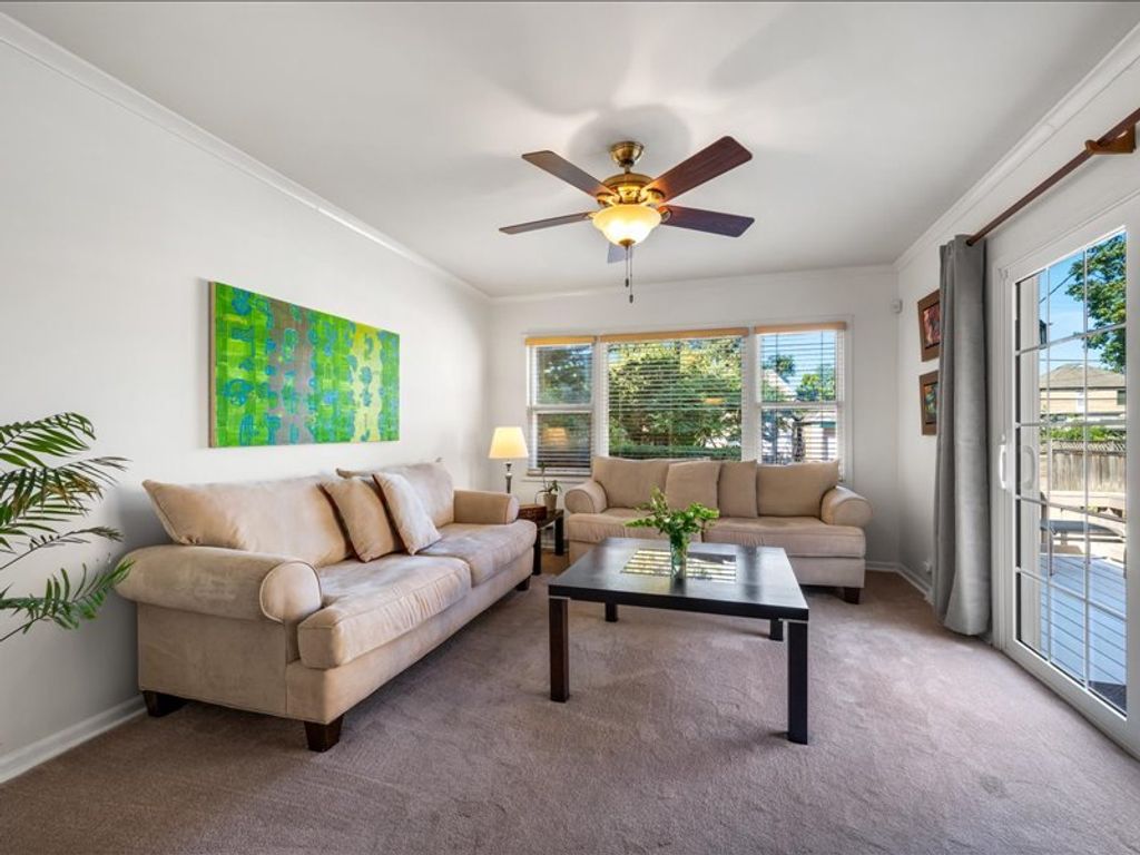 Welcome to this stunning home, just steps from everything River Forest has to offer! From the moment you walk up the bluestone pathway, you'll be impressed by the home's timeless blend of brick, stone, and glass, complemented by mature landscaping for exceptional curb appeal. Inside, the inviting foyer opens to warm hardwood floors and a bright, flowing floor plan that blends traditional charm with modern updates. Entertain with ease in the spacious formal living room, featuring a large picture window and wood-burning fireplace, or host gatherings in the formal dining room. The updated kitchen boasts 42" custom cabinetry, stone countertops, and a cozy eat-in area with additional built in storage. Perfect family room flows seamlessly with sliding glass doors that open to an oversized deck-perfect for outdoor dining and summer nights. The second level is highlighted by original handrails and offers three oversized bedrooms, each filled with natural light and hardwood floors. An updated full bath features both a walk-in shower and soaking tub, stone surround and linen. The finished lower level provides the ideal recreational space with abundant storage. Outside, the fully fenced backyard offers a serene retreat, while the 2-car garage adds convenience. All of this in a perfect walk-to-town location, just steps from top-rated schools, parks, restaurants, shops, and more. Fireplace is As Is.