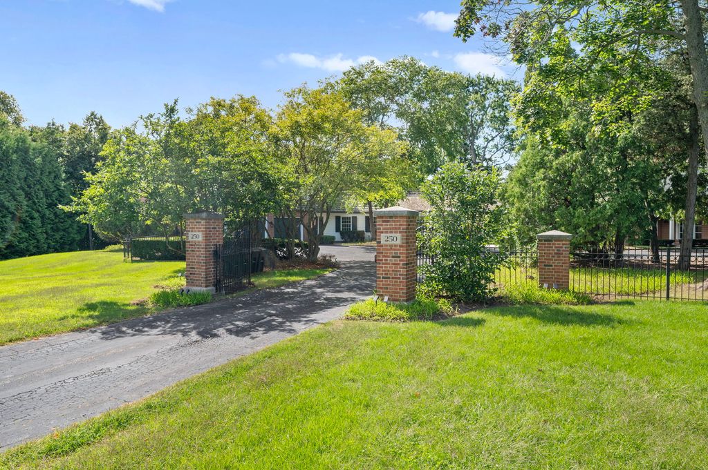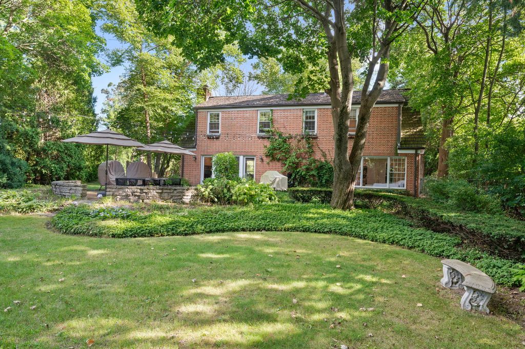 Welcome to your dream home in the sought-after enclave of Far East Lake Forest, set back in a private setting off of the prestigious Sheridan Road. Originally built as a Coach House in 1927, this exquisite residence has been meticulously expanded and renovated over the years, now offering an expansive 4,900 square feet of living space on a very private 1.27-acre lot. This majestic home features 5 bedrooms and 4.5 baths, perfectly blending historic charm with modern amenities. The first-floor primary suite provides a serene retreat, overlooking the beautifully landscaped yard. The family room, adjacent to the kitchen, features a charming fireplace and French doors that open to the patio and incredible yard, perfect for indoor-outdoor living and entertaining. The expansive kitchen, a blank canvas awaiting your personal touch, offers a spacious dine in area and room for a walk in pantry, great potential for a custom dream design. The living room is a showstopper, with a large picture window that floods the space with natural light and a cozy fireplace for those chilly evenings. A versatile den/library with its own entrance offers additional private space for work or relaxation. The first floor also hosts a convenient laundry room. Upstairs, two separate wings with separate staircases, provide flexibility and privacy. One wing includes two bedrooms with a shared Jack and Jill bathroom, while the other features a bedroom with an ensuite bathroom, an additional full bathroom, and a large flex space ideal for an office or extra bedroom. The home boasts a three-car attached garage with incredible storage options and a gated driveway for added security. Close to downtown, 2 different beaches, 2 different Metra stops, shopping, incredible restaurants, Fort Sheridan, and the award winning Lake Forest schools, this impressive home offers endless possibilities and is waiting for your personal touch. Schedule a viewing today to experience the charm and potential of this unique property. PLEASE NOTE:: The kitchen is currently in an unfinished state, ready for you to make it your own. A design rendering is available, along with pricing and layout options from a local top kitchen designer and general contractor, detailed in the additional documentation. The picture shown in the photos is only a rendering to provide design inspiration. This home also does not have a basement.