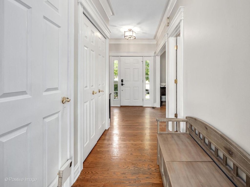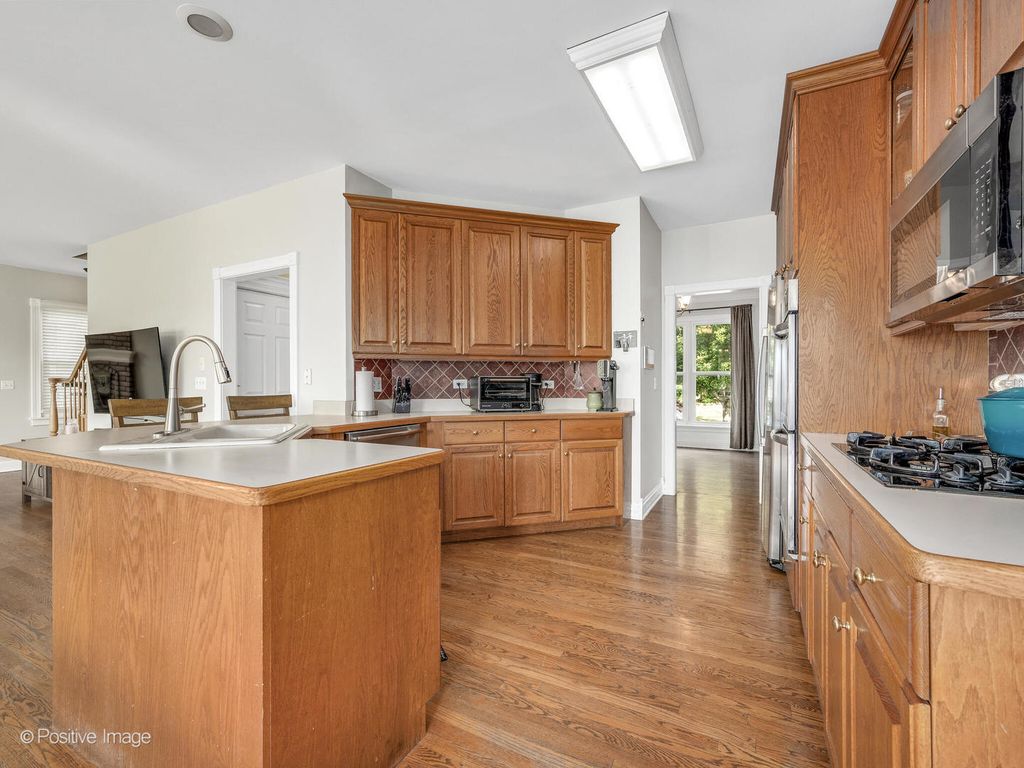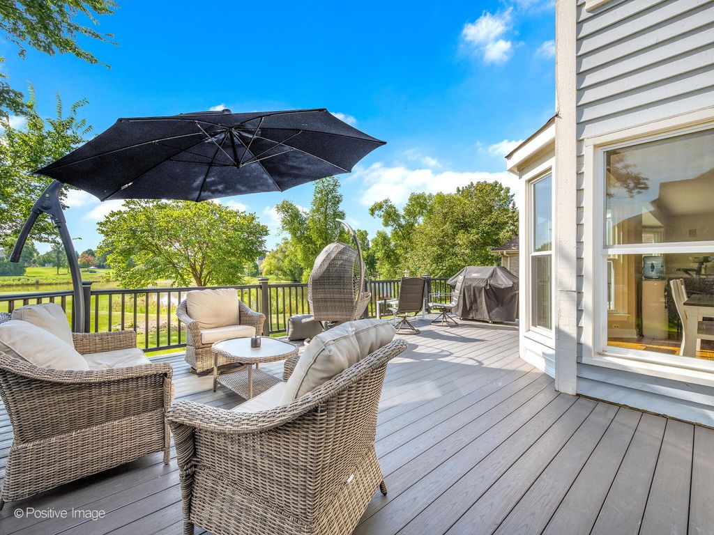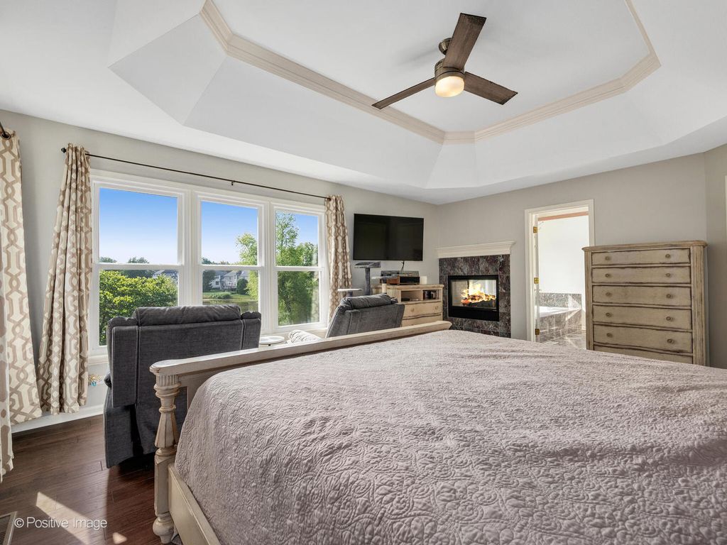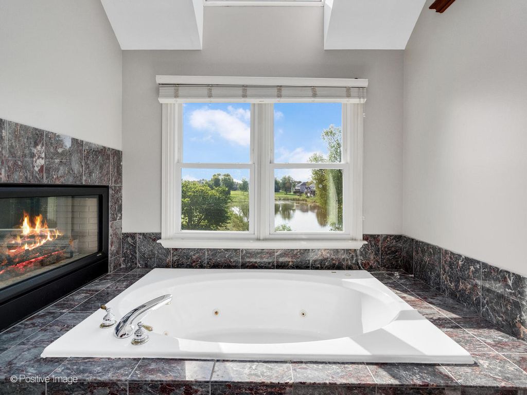 STUNNING CUSTOM HOME IN KLEIN CREEK! Enjoy panoramic golf course and pond views from this beautifully maintained 4BR, 3.5BA home. Rich hardwood floors and custom trim flow throughout the main and second levels. The open-concept kitchen/family room overlooks the 14th hole and features a cozy wood-burning fireplace. Kitchen updates (2025) include a stainless gas range, double oven, microwave, plus a new refrigerator (2024). The elegant foyer is flanked by a formal dining room with crown molding & wainscoting, and a formal living room. Convenient 1st floor powder room and laundry with garage & backyard access. Upstairs, the primary suite boasts golf views, tray ceiling, huge WIC, and a double-sided fireplace shared with the spa-like bath. One bedroom has an ensuite; all offer large closets. Hall bath with double sinks. Partially finished, full English basement awaits your design choices. Newer roof (2017), HVAC (2016), composite deck (2020), and a 3-car garage with storage bump out. Minutes to Metra, I-355/I-88, shopping & dining. Come see this rare gem in a sought-after golf community today!