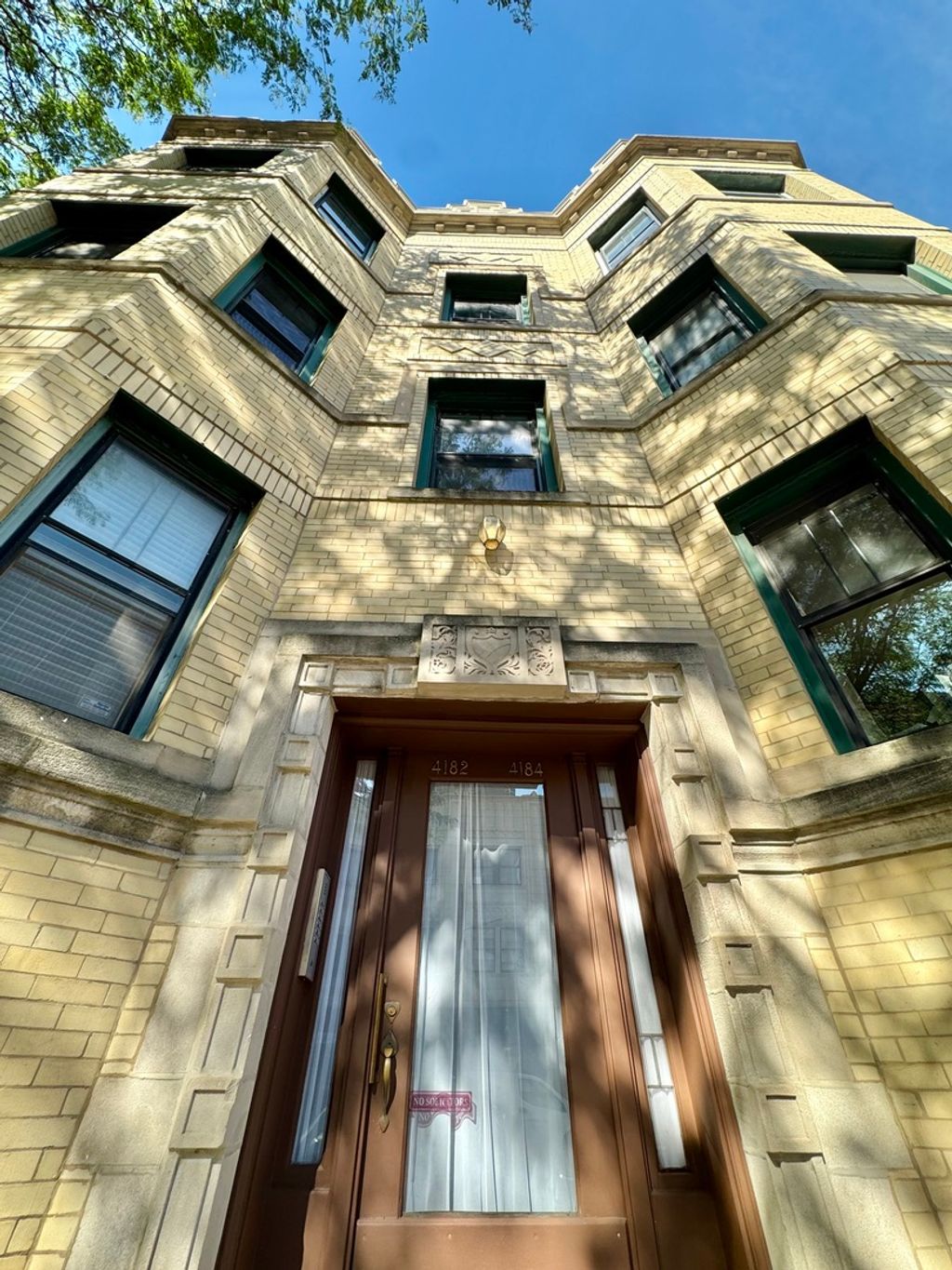 Rarely available and tastefully renovated 3 Bed / 2 Bath Duplex-Down with central air and in-unit washer & dryer in the heart of Buena Park. Located in a fully gutted and renovated building, this charming and spacious home is ideal for entertaining or multi-generational living, featuring two private entrances (main and lower level), high ceilings, double-pane windows, and original millwork throughout. The main level offers beautifully maintained real hardwood floors, three bedrooms which are newly carpeted (covering original hardwood flooring) , a renovated full bath, and a large living room with bay windows and custom cabinetry framing the fireplace. The renovated kitchen and dining area features granite countertops, stylish backsplash, and stainless steel appliances, with direct access to your private patio for outdoor dining and grilling. Convenient in-unit laundry completes this level. The lower level showcases a renovated bathroom and a sprawling family room that can easily serve as a luxurious in-law suite or primary bedroom retreat with seating area, offering privacy and comfort with its own separate entrance. Additional highlights include dedicated parking and a huge private storage room in the basement. All this in a solid, updated building just moments from the lakefront, parks, shopping, dining, and public transit.