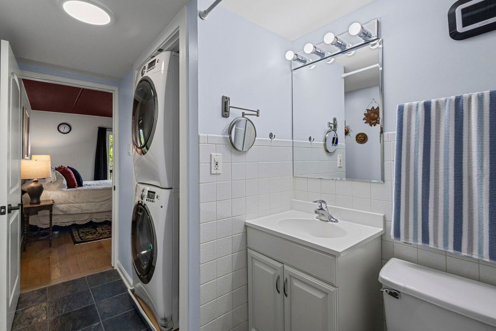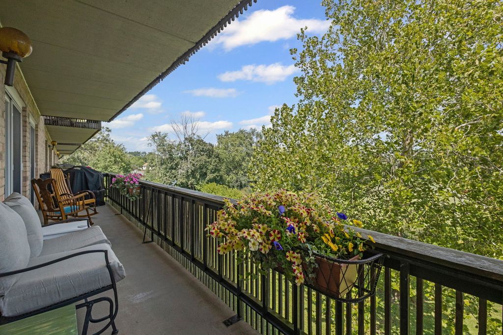 Welcome to this beautifully upgraded 2-bedroom, 1.5-bath condominium that perfectly blends comfort, style, and modern convenience. From the moment you step inside, you'll notice the open, light-filled layout and thoughtful custom details throughout. The completely renovated kitchen features quartz countertops, a designer backsplash, upgraded cabinets with sleek hardware, recessed LED lighting, a new gas range with built-in air fryer oven, range hood, modern faucet, and a three-cartridge water filtration system for pure drinking water and ice. The adjoining dining room is highlighted by a handmade stained-glass light fixture with dimmer control, while the living room radiates charm with a half-wall shiplap accent, wood ceiling beams with recessed lighting, and an articulating TV mount with concealed wiring. Cherry hardwood floors extend throughout the hallway, kitchen, dining, and living areas, enhanced by updated molding and chair rail accents. Both bedrooms open to the expansive 30-foot balcony through Anderson sliding doors with power shades. The primary suite offers tongue-and-groove oak flooring, solid wood doors, handicap-accessible entryways, and a refreshed en-suite half bath, while the second bedroom features recessed lighting, a decorative ceiling, oak hardwood floors, and a walk-in closet with upgraded shelving. The two fully renovated bathrooms include slate flooring, new vanities, modern fixtures, and upgraded plumbing, and the home also provides the convenience of a full-size Electrolux washer and dryer. Overlooking a peaceful pond and natural sanctuary, this signature unit is truly one of a kind, offering the perfect combination of modern upgrades, timeless character, and serene surroundings. Don't miss this rare opportunity to own the building's premier residence-schedule your showing today and experience the lifestyle you deserve.