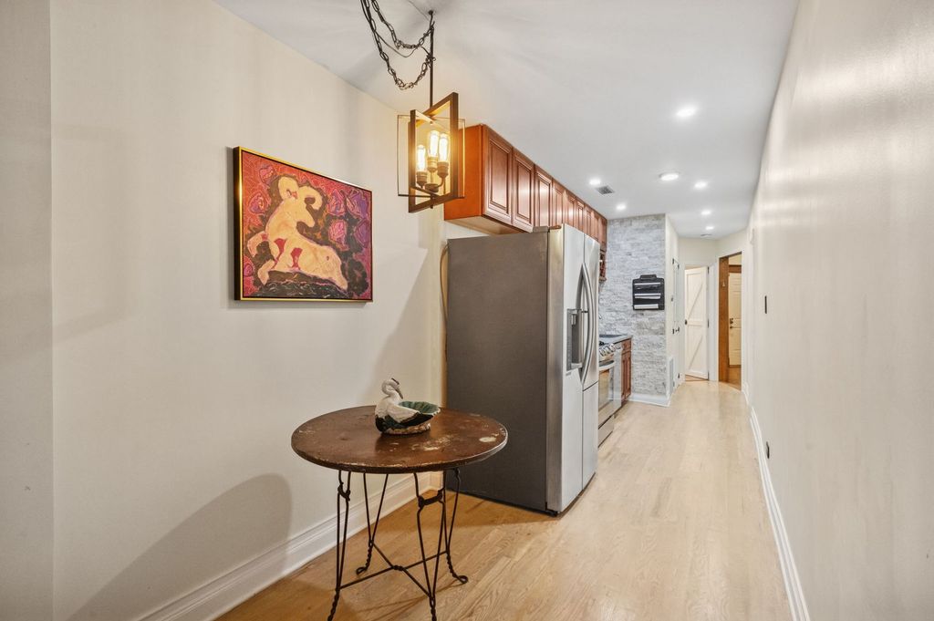 Charming vintage condo in prime Lakeview location. This beautifully updated 2-bedroom, 1-bath condo combines timeless vintage character with modern updates-plus an assigned gated parking space. Set back from Halsted, the building offers a peaceful retreat in the heart of Lakeview. A striking original vintage 8-foot oak pocket door connects the living room to the first bedroom, which also works perfectly as an office, den, or dining room. The living room features custom built-ins, adding both style and functionality. The updated galley-style eat-in kitchen fits a table and chairs and opens directly to your private deck-ideal for morning coffee or entertaining. A renovated bath, modern mechanicals, and in-unit laundry provide everyday comfort and convenience. The condo includes a large private storage locker and bike storage in the basement. Updates include: Furnace (2024), water heater (2024), AC/condenser (2023), renovated kitchen and bath (2017), LG SS appliances (2017), stacked w/d (2017). Enjoy unbeatable convenience just steps from top restaurants, shopping, Target, and Whole Foods. Close to CTA Red, Brown, and Purple lines at Belmont, bus routes, and the lakefront. This condo offers exceptional value in one of Chicago's most vibrant neighborhoods. Don't miss the opportunity to call it home!