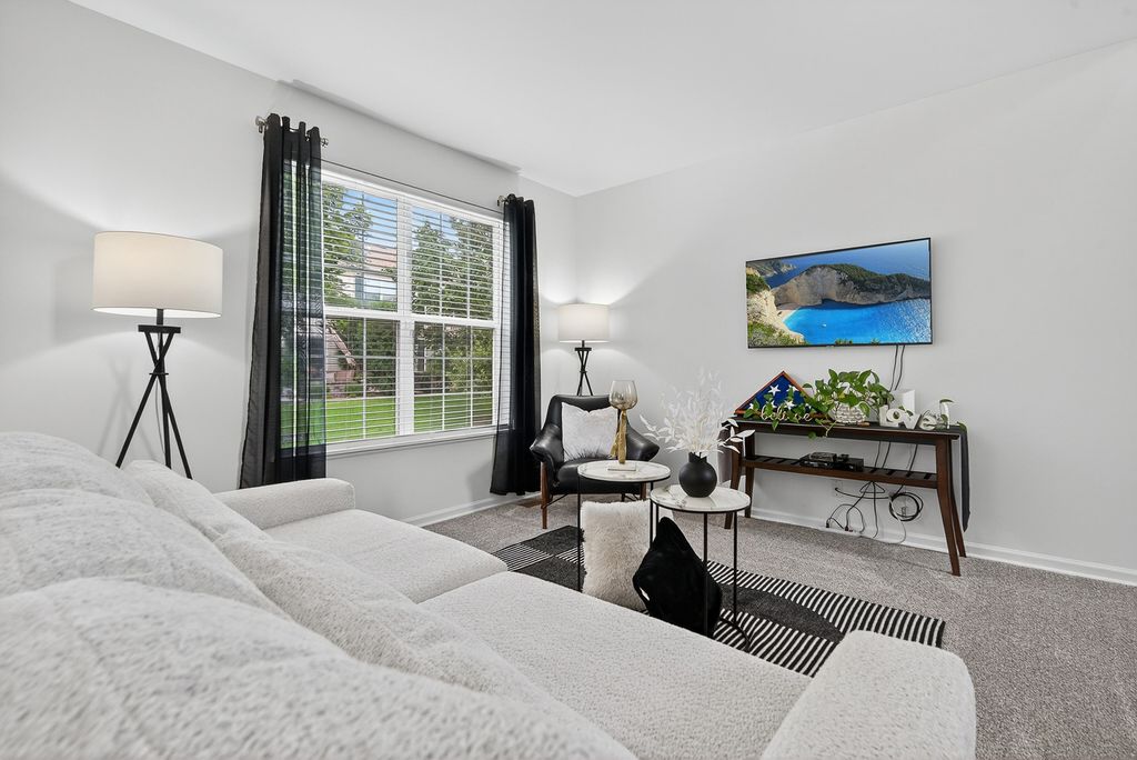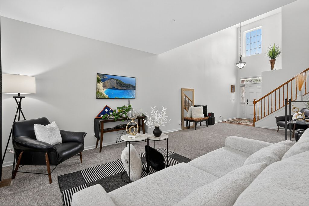 Welcome to this beautiful 3-bedroom, 2.5-bath townhome in the desirable Huntley area! Step into a grand entrance with soaring ceilings that lead into a spacious, open-concept living room, dining area, and kitchen-perfect for entertaining or relaxing. The kitchen is a chef's delight with granite countertops, stainless steel appliances, ample cabinet and counter space, and a convenient pantry closet. A stylish powder room completes the main level. Upstairs, the primary suite impresses with large windows, vaulted ceilings, a walk-in closet, and a luxurious ensuite bath featuring a soaking tub and separate shower. Two additional generously sized bedrooms share a full bath, and the second-floor laundry adds extra convenience. Enjoy the outdoors on your private patio with tranquil courtyard views. This home also includes a 2-car attached garage with epoxy flooring. Carpet, furnace, AC and appliances NEW as of August 2024. The HOA offers resort-style amenities, including a pool, fitness center, basketball and pickleball courts. Don't miss this opportunity to own a move-in ready home in a fantastic community!