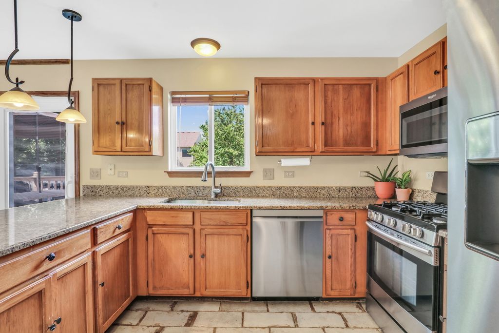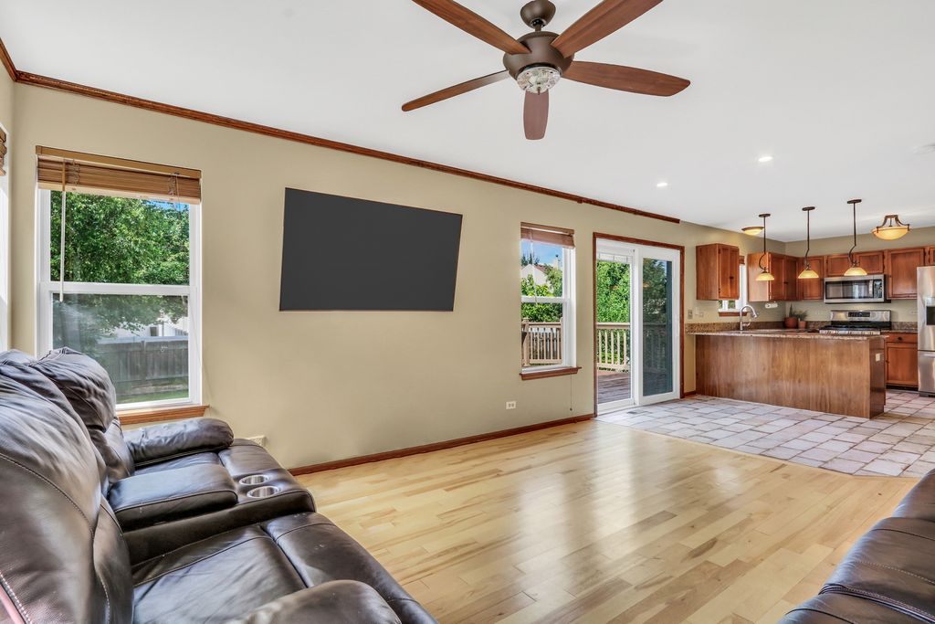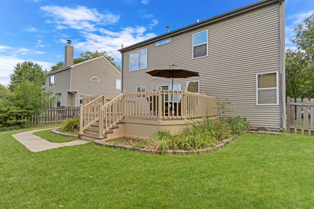 Welcome to 7736 Geneva Dr! This beautiful 4-bedroom, 3.5-bath home offers incredible curb appeal and a backyard designed for entertaining. Step inside and enjoy gleaming hardwood floors throughout the first level and a bright, open layout that flows effortlessly from room to room. The spacious kitchen features granite countertops, stainless steel appliances, abundant cabinet space, pantry storage, and a sunny eating area with sliding doors leading out to the large deck and fully fenced yard-perfect for summer gatherings and plenty of green space for play. Upstairs, the vaulted primary suite impresses with hardwood flooring, a walk-in closet, and a private ensuite bathroom. Two additional bedrooms feature brand-new vinyl flooring and share a full bath. The finished basement provides even more living space with a 4th bedroom, a full bathroom with a gorgeous walk-in shower, and plenty of room for recreation or guests. Practical updates add peace of mind, including a furnace and AC replaced in approximately 2016, water heater in 2020, plus new outlets in the garage. The exterior shines with a spacious asphalt driveway offering ample guest parking, a 2-car garage, and a fully fenced yard with great entertaining space. Close to schools, shopping, dining, park, and the expressway. Schedule a showing today!
