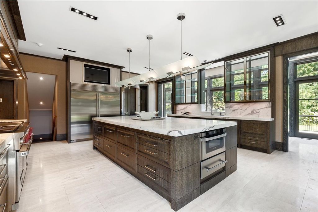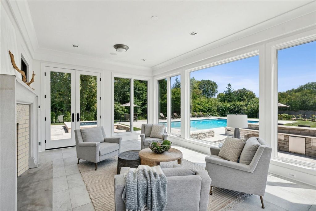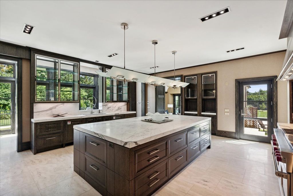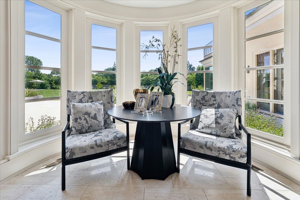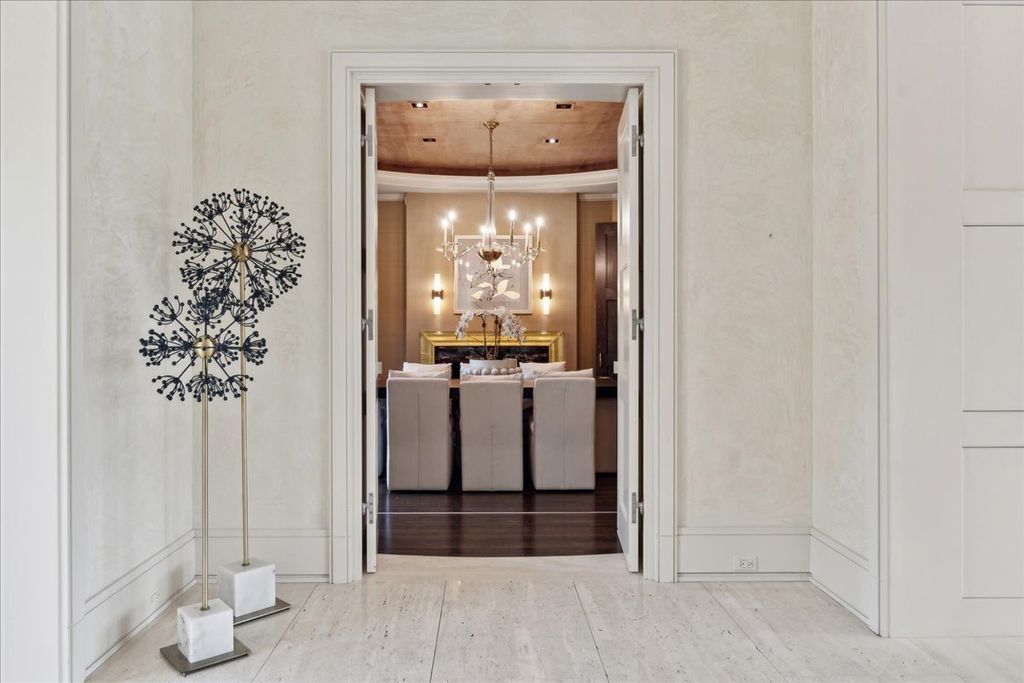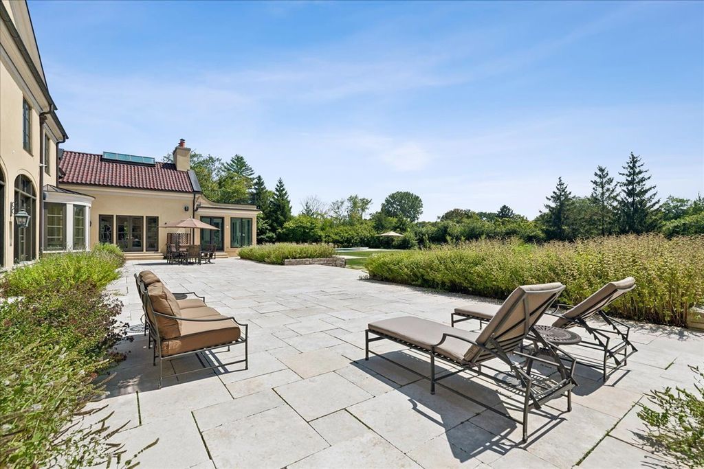 Nestled in the heart of East Lake Forest, this exquisite estate seamlessly blends elegant architecture with natural splendor, set on nearly three gated acres. Crafted in collaboration with the esteemed architect Darcy Bonner in 2010, it epitomizes a harmonious fusion of style, functionality, and serene Santa Barbara-inspired living. The property is enveloped by pollinating gardens, native flora, and a fruit orchard, offering abundant privacy. The home's design features clean lines, soaring ceilings, and expansive windows that bathe each room in natural light while providing breathtaking views. The grand foyer opens into a spacious living room, centered around a bronze-clad fireplace and a chic bar, with multiple French doors leading to a stone terrace. The dining room is equally captivating, boasting a glass fireplace, a platinum leaf ceiling, and hardwood floors with a distinctive nickel inlay. The first-floor primary suite serves as a true retreat, complete with a cozy fireplace, a sunroom, and a luxurious bath featuring ebony vanities, a large steam shower, and a waterfall jetted tub. French doors reveal a private, fully enclosed patio. The custom-designed dressing room includes English hickory built-ins and unique accents, while a discrete staircase ascends to a secluded meditation or yoga room on the third floor, and a second expansive dressing room below. A charming sitting room with vaulted ceilings, a fireplace, and elegant built-ins includes a hidden door to a leather-clad library adorned with a striking fireplace and art niches. For culinary enthusiasts, the kitchen is a dream, showcasing stunning cerused white oak cabinets with polished nickel details and a substantial center island topped with Carrera marble. An adjacent sunlit breakfast room and a butler's pantry with a dumbwaiter elevator enhance convenience. The spacious family room features high barreled ceilings, a limestone-surround fireplace, and connects to the sunroom, which opens to the pool, spa, and outdoor kitchen. The upper level houses six generous family bedrooms, each with private baths featuring skylights, walk-in closets, and wide plank quarter-sawn hardwood floors. The lower level is entertainment-ready, with a large recreational room, a movie room, a service kitchen, a climate-controlled wine and tasting room, a private bedroom suite, a fully equipped gym, and locker rooms with full baths for easy pool access. Externally, the estate boasts a stucco facade, a beautiful Ludowici tile roof, copper gutters, and Jerusalem limestone terraces. Outdoor amenities include a large pool, infinity-edge spa w/ waterfall, a spacious stone kitchen, and a 4-car garage with radiant heat. Additional features are a motor court, a granite cobblestone driveway with snowmelt in the porte-cochere, a whole-house generator, and more. With eight fireplaces, an elevator, and an abundance of luxurious details including exotic woods, Venetian marbled walls, and unique light fixtures from Paris, this estate offers unparalleled comfort, privacy, and style in Lake Forest.
