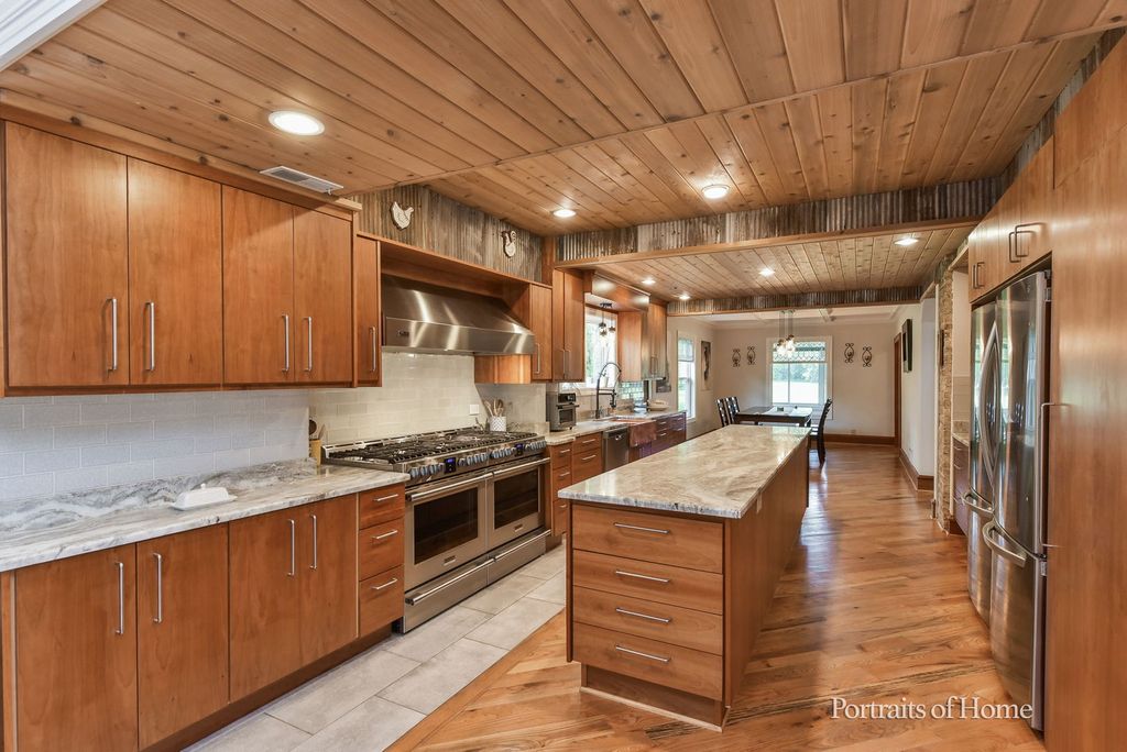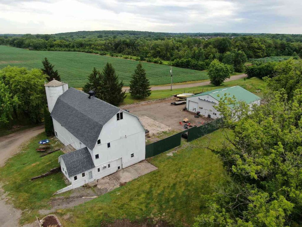 Updated Farmhouse in a prime location. 2 outbuildings, 1 lrg 2-story barn 67x40 and 44x44 pole barn, both sold as is. Horses allowed. Access to horse & snowmobile trails. Pole barn is a perfect opportunity for a home-based business, offers an office and is a dream man cave! Ladies! You will not be disappointed when you walk into this house! Gleaming hardwood floors through-out, kitchen designed for a home chef, 5 walk-in closets. 8" baseboards, crown molding, ceiling fans, coffered ceilings, home office. Master suite offers a sauna. + more!!