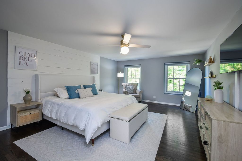 Ideally situated walking distance to Naperville's vibrant Riverwalk, this classic two-story home offers 4 bedrooms, 2.5 updated baths, a new kitchen, finished basement, and an enormous fenced yard! The designer-inspired new kitchen(2025) is equipped with stainless steel appliances, quartz countertops, an island, and a convenient beverage center, all connecting to the outdoor patios and pergola. The sunny family room is open to the kitchen and enjoys views of the yard. This residence also showcases newer hardwood flooring throughout, updated lighting, a stunning new front door, and hardscape walkways and entry. Extensive recent improvements include a FINISHED BASEMENT with a bonus room, a new maintenance-free fence, updated electrical panel, new central air, and a newer roof and furnace. Outdoor living is elevated in the HUGE FENCED BACKYARD, including a large stone patio, inviting pergola, and fire pit. With a large driveway, generous 2-car garage, full basement (no crawl space), and proximity to highly rated D203 schools(Naper Elementary, Washington Jr. HS and Naperville North HS.), this move-in ready home truly stands out as a rare opportunity in the heart of Naperville.