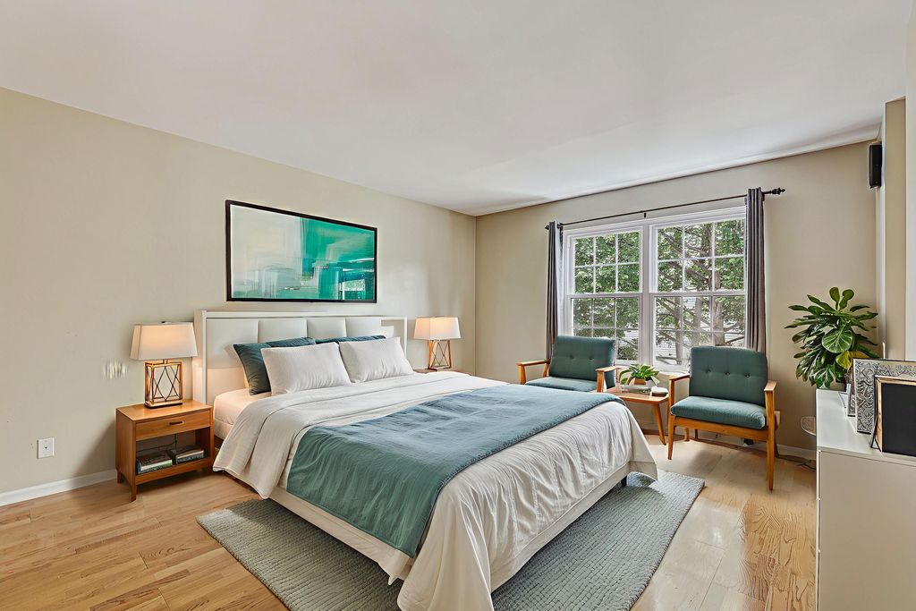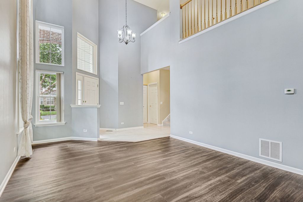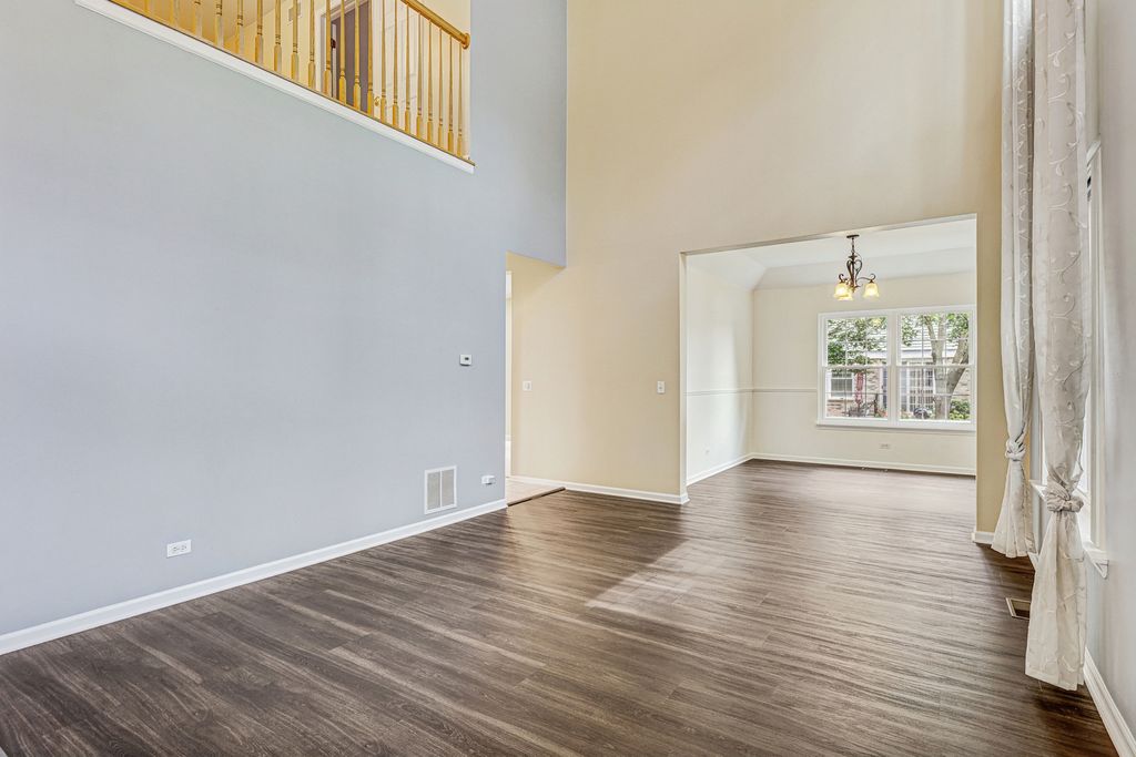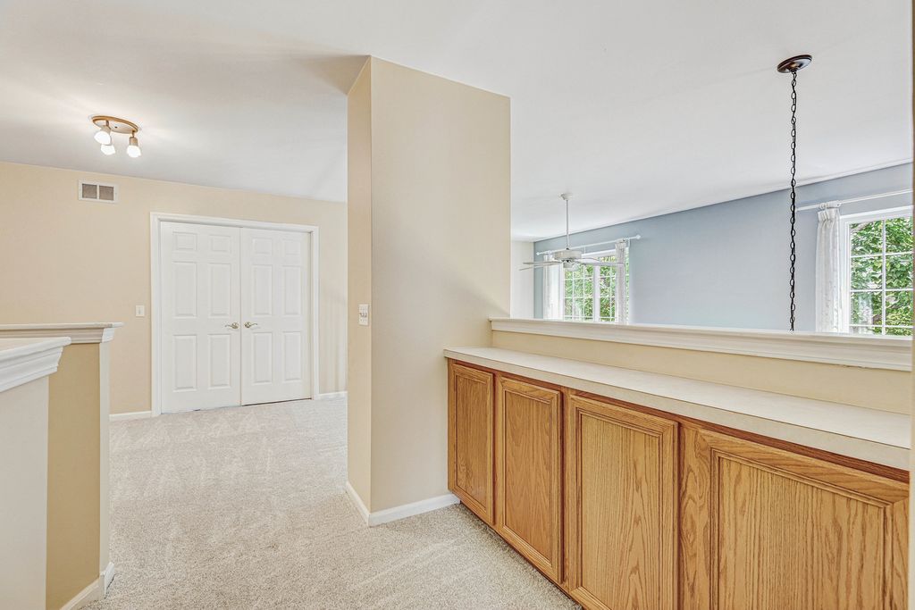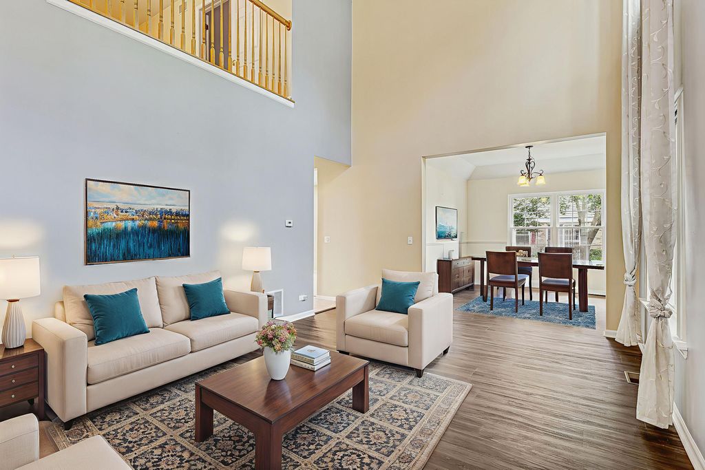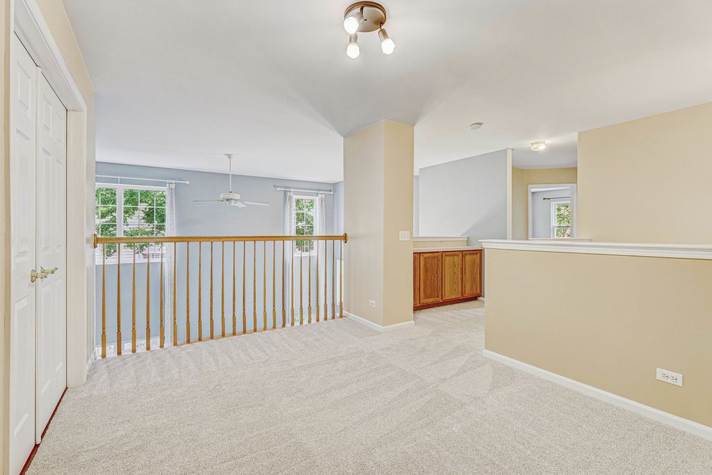 This rarely available end-unit model is the largest floor plan in the community and sits in a premium cul-de-sac location with serene pond views. Inside, you'll find a spacious and light-filled layout featuring a dramatic two-story living room and foyer. All three bedrooms have hardwood flooring, and there's also a large loft that works perfectly as a home office, play area, or second living space. The kitchen is well-appointed with Corian countertops, a stone backsplash, and stainless steel appliances. The primary suite includes a walk-in closet and an updated en suite bath with an oversized soaking tub and a separate shower. The full unfinished basement offers rough-in plumbing for a future bathroom and ample storage. Outside, enjoy an extended private patio with a gas line for grilling-ideal for outdoor entertaining. This home has been meticulously maintained and is move-in ready. Don't miss your chance to own the best model in the neighborhood.