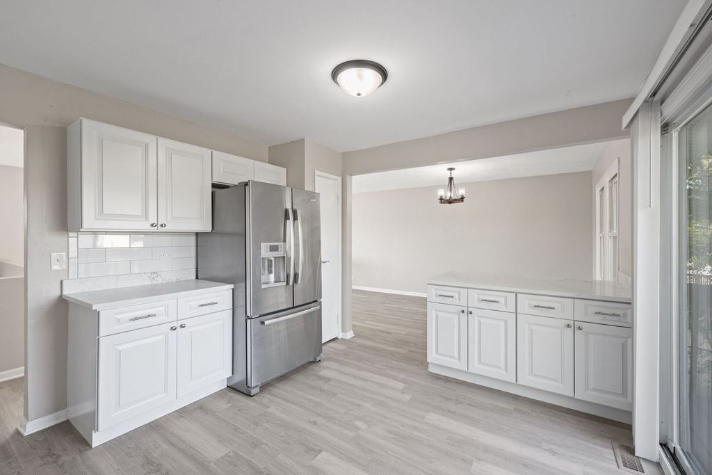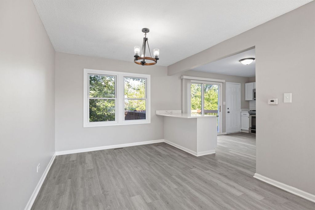 Welcome to this beautifully updated 4-bedroom, 1.5-bath raised ranch that feels like new. Step into the inviting foyer featuring a coat closet and an elegant chandelier. The spacious living and dining room combination is filled with natural light from a large picture window, creating a perfect setting for both everyday living and entertaining. The updated kitchen is equipped with brand-new cabinets, granite countertops, stainless steel appliances, and a breakfast bar with built-in storage. A sliding glass door and an additional door provide access to the deck, which overlooks the patio and backyard that is ideal for outdoor enjoyment. The primary bedroom offers double closets and convenient access to the updated full bathroom. Two additional bedrooms and a hallway closet complete the main level. The lower level features a family room with a gas fireplace, fourth bedroom, and a half bathroom with laundry hookups. This level also includes a storage closet, mechanicals, and access to the attached two-car garage. Recent improvements include fresh paint, new flooring and carpet throughout, updated light fixtures, and a brand-new roof. This home is conveniently located near schools, shopping, parks, and major highways. Property is being sold as-is.