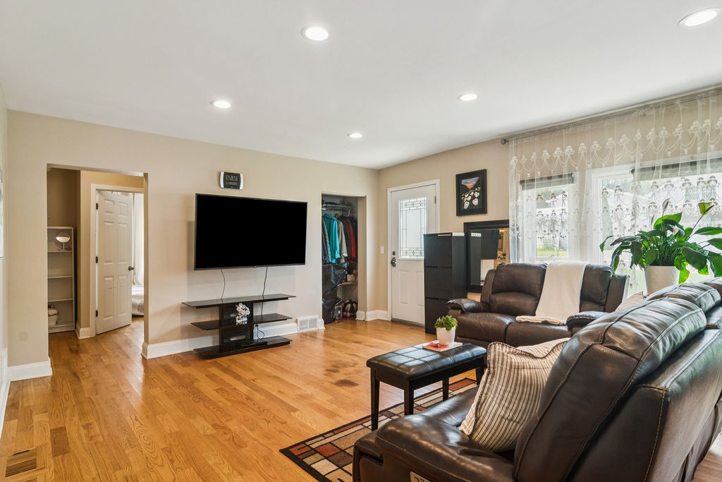 Welcome to this inviting 3-bedroom, 2-bath ranch home offering comfort, convenience, and a backyard retreat unlike any other. The main level features hardwood flooring, a sun-filled living space, and an updated kitchen with granite countertops, stainless steel appliances, and plenty of cabinet space. The open floor plan with seamless living and dining spaces make for easy entertaining. The primary bedroom is highlighted by a large closet, with two comfortable guest bedrooms nearby, all conveniently served by a full bath. The main-level laundry adds ease to everyday living. The partially finished basement expands your living options, complete with a full bath and exterior access. The siding has been replaced and roof new in 2019. Step outside and enjoy the best of outdoor living: a covered porch, spacious deck, and a gardener's dream yard. With peach and cherry trees, berry bushes, grape vines, and a thriving vegetable garden, you'll have your own homegrown harvest right at your fingertips. The deep lot also includes a storage shed and expanded driveway for added functionality. Enjoy Forest Lake with beaches, playgrounds, community center and events. Nearby Deer Park shopping, grocery and in the highly rated D95 School district. This is the perfect blend of modern updates and natural beauty-don't miss the chance to call it home!