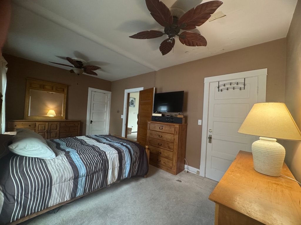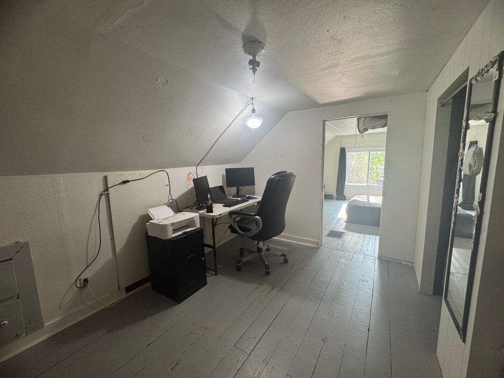 Welcome home to this adorable 1.5-story brick and sided gem-an ideal choice for a first-time buyer! Sellers are Offering a $3k Credit! The main level features a spacious primary bedroom and a full bathroom with a shower/tub combo for added convenience. At the front of the home, French doors open into a flexible space perfect for a home office or den. Enjoy a generously sized living room with wall-to-wall carpet and a large eat-in kitchen with granite countertops, plenty of cabinetry, a glass tile backsplash, pantry cabinet, and ceramic tile flooring. All kitchen appliances are included! Upstairs offers hardwood flooring, a second bedroom, and a loft area that could easily function as a third bedroom or office The basement provides laundry space (washer and dryer included) and additional storage, with access from both the primary bedroom and an exterior door. Step out back to a large deck overlooking a private, fenced-in yard-great for entertaining or relaxing. You'll also appreciate the oversized 2.5-car garage, complete with heating, cooling, & attic storage.