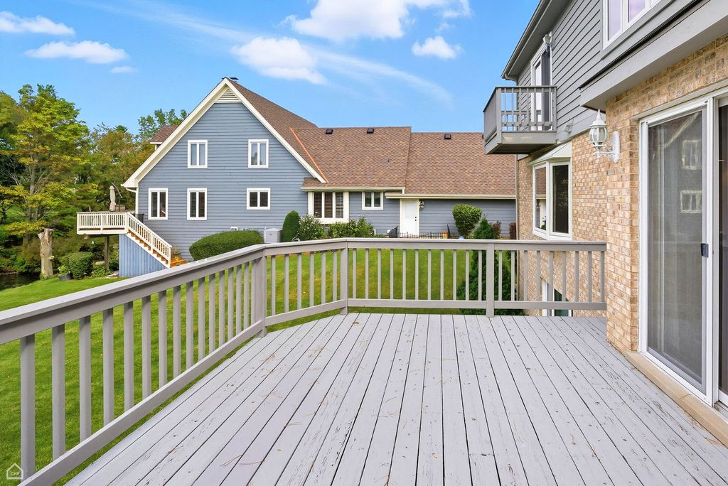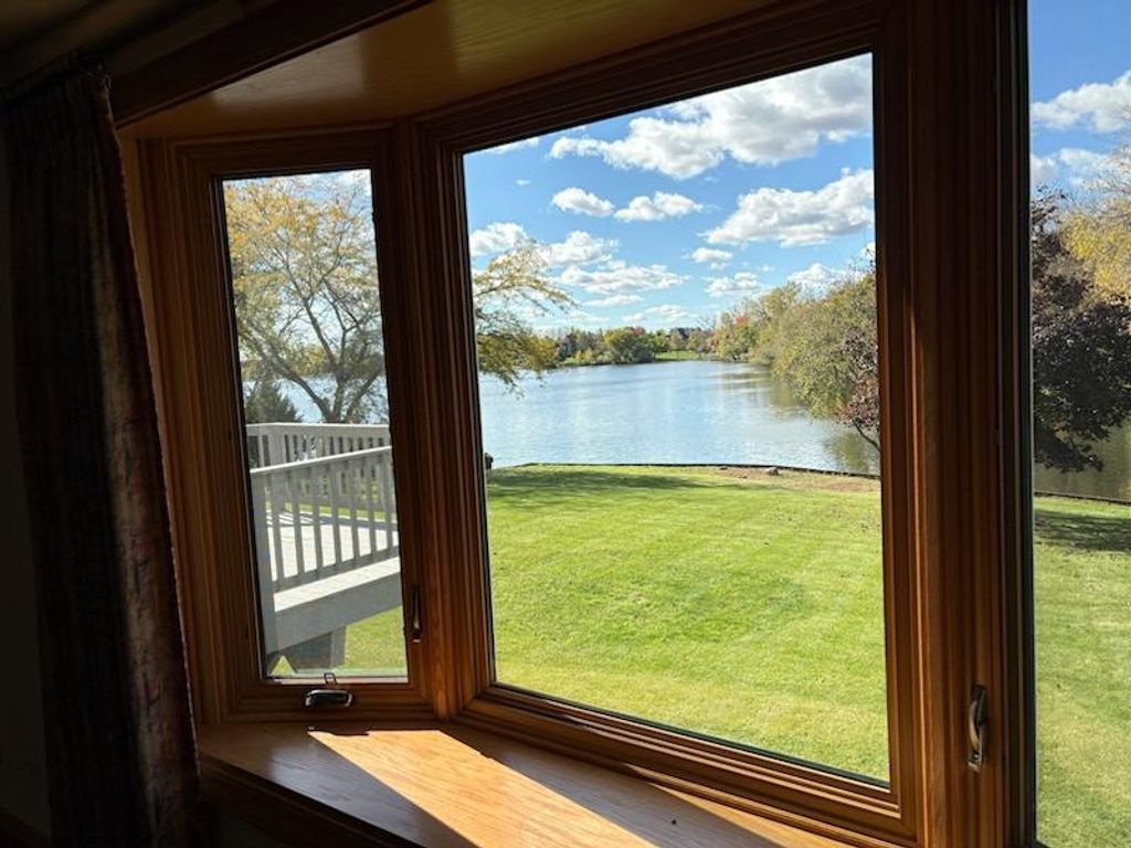 DREAMIMG of waking up EVERY morning to a view of a calm, relaxing lake? Dreaming of dinner on your deck enjoying the lake view, or relaxing on your pontoon boat after work? Think you can't afford it until "later in your life??" You can have it now! Step into a home that truly has it all--stunning lake views, countless updates, and space for everyone. From the moment you enter the dramatic two-story foyer, you'll be welcomed by gleaming, newly refinished hardwood floors, a striking chandelier, and a sweeping staircase. Fresh paint and brand-new carpet upstairs make this home feel warm, inviting, and move-in ready. The heart of the home is the spacious kitchen and family room, both filled with natural light and breathtaking lake views. Host holiday dinners in the formal dining room, enjoy cozy evenings by the gas fireplace, or step out onto the deck for al fresco dining and gorgeous sunsets. With five bedrooms, four full baths, and multiple living spaces, this home is designed for comfort and flexibility. The first-floor bedroom with a full bath just outside is perfect for family, guests or a home office. Upstairs, the primary suite offers a private retreat with a spa-like bathroom, walk-in closet, and its own balcony overlooking the water. The finished walkout basement has a huge, open family room, featuring a second fireplace, full bath, and sliders that lead to a private patio. There's even an office area with outside light! There's a second laundry room and plenty of storage! Recent updates mean peace of mind for years to come: Brand-new roof, fresh paint, new front door (2025), new AC (2024), newer furnace (2018), water heater (2022), dishwasher (2021), skylights (2016), some windows/sliders (2017) and more! The garage is extra long and the door is 8 feet high. Located in the sought-after Loch Glen community, you'll enjoy maintenance-free living with lawn care and snow removal included for a low association fee. Spend your time fishing (some of the best in the county!), boating from the pier you may install (with HOA approval), or simply relaxing on your deck. This beautifully cared-for home is ready for you, its next chapter. Come see it today and fall in love! It's the lowest priced house with a beautiful lake view in town! Get it before someone else does!