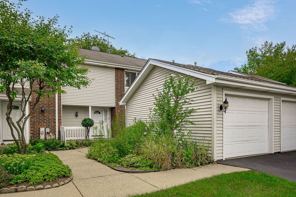 Welcome to this beautifully updated 3-bedroom, 2.5-bathroom townhouse offering over 2,100 sq. ft. of living space plus a full basement. Designed with style and function in mind, this home blends custom finishes, modern upgrades, and everyday comfort. Step inside to find a soaring vaulted ceiling and large windows that fill the spacious living room with natural light. A cozy fireplace anchors the space, while the adjacent loft overlooks the living room and can easily serve as a home office, playroom, or even a potential 4th bedroom. The kitchen is a true showpiece with shaker-style soft-close cabinets, MSI Eclipse granite countertops, stainless steel appliances, hardwood flooring, and a convenient eat-in area. Thoughtful details include coffered ceilings with built-in flair, extensive trim work throughout, satin-finished professional paint, bullnose edges, and settled drywall designed to resist cracking. The primary suite features a walk-in closet and updated ensuite bath, complemented by two additional bedrooms and a remodeled powder room. Newer lighting, can lights, smart bulbs, updated switches, night-light receptacles, fresh paint, and modern door hardware elevate the home's ambiance. Mechanical updates include a new furnace computer board, resealed ductwork, and new bath fans for peace of mind. Unique highlights set this home apart: a built-in saltwater fish tank with maintenance-free sump system, triple osmosis water filtration (for fridge and aquarium), smart front door keypad, Nest thermostat, and recently replaced roof. The full basement offers endless storage or finishing potential. Enjoy outdoor living on the freshly stained deck (2024) with a peaceful pond view, perfect for relaxing or entertaining. The community provides walking trails, a clubhouse for gatherings, and convenient access to Metra, highways, downtown, and the Route 59 station. This meticulously maintained home truly has it all-custom craftsmanship, modern convenience, and a prime location. Don't miss your chance to see it!