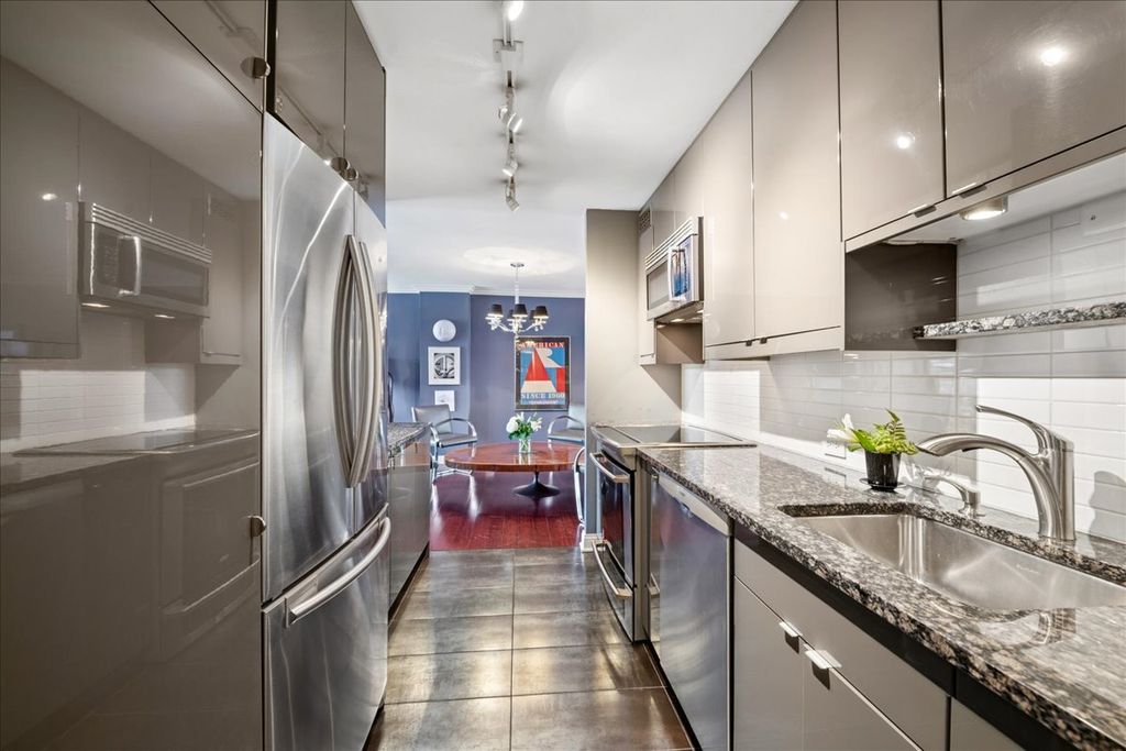 Situated in the North end of Chicago's prestigious Gold Coast, this beautiful, rarely available, updated, 2 bed, 2 bath condo, offers sophisticated urban living paired with resort style amenities. Located in a 5-story building with only 96 units. The unit was fully renovated and has bamboo floors throughout with the exception of the kitchen and baths which are tile. The floor plan provides a spacious layout that is ideal for entertaining or relaxing. The living area and both bedrooms enjoy abundant western natural light. The private balcony off the living room overlooks the private gardens and the Olympic sized swimming pool. Perfect for enjoying your morning coffee or evening cocktails with friends. Bright open-concept living and dining area with a mirrored accent wall that reflects the natural light and expands the space. There is a stylish mirrored bar as you enter the living room. The Chef's kitchen opens to the dining area and features a Bosch induction oven, stainless appliances including the dishwasher, microwave, refrigerator, and under-mount sink. Sleek custom cabinetry with granite counters provides lots of extra storage. Spacious, primary suite offers 2 large closets and a renovated ensuite bath with updated vanity, tiled walk-in shower and new toliet. Second bedroom has 2 closets, is generously sized. Ideal for guests, a home office, or flex space. Modern updated second full bathroom with tub (currently inoperable), new tile, new vanity, new toliet. Front hall entry has a large mirrored closet with extra storage. Complex also has tennis/pickle ball courts. bike storage, work-out room, Olympic sized swimming pool. Pet friendly. Weekend and Night doorstaff.